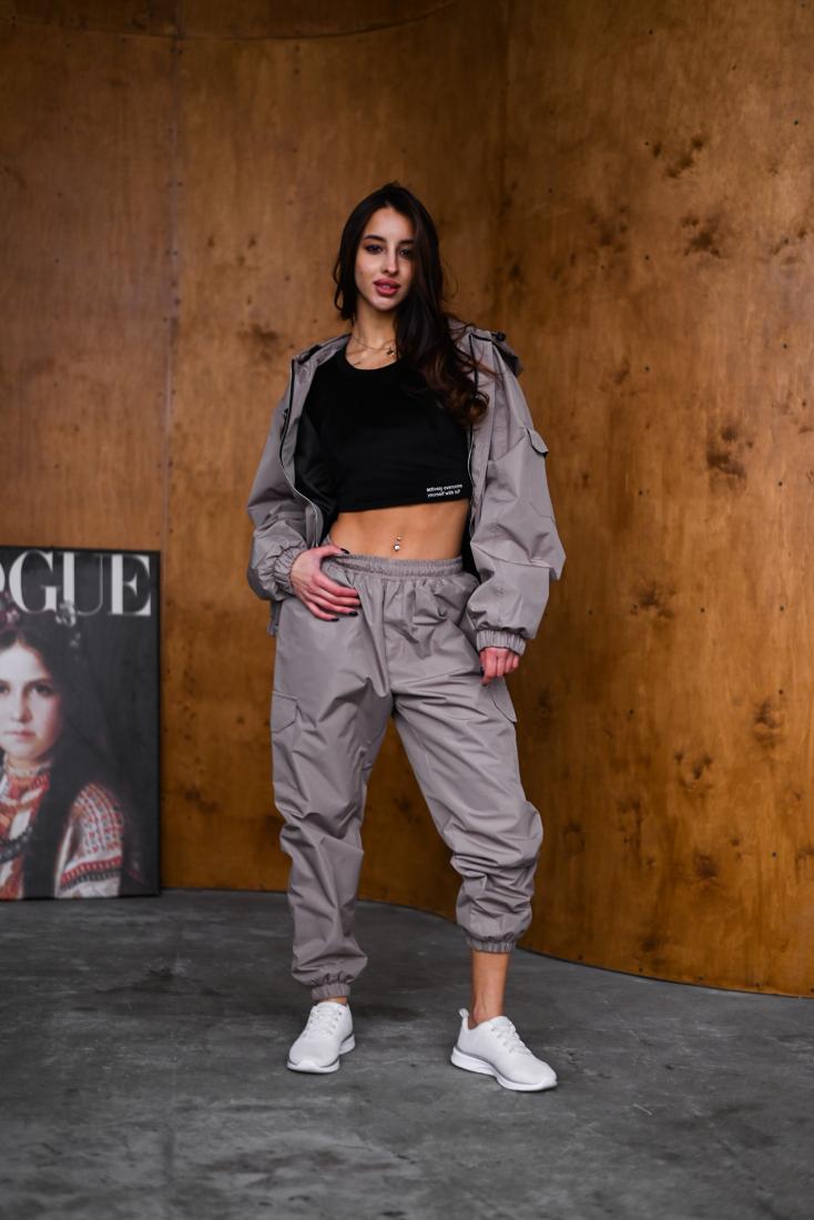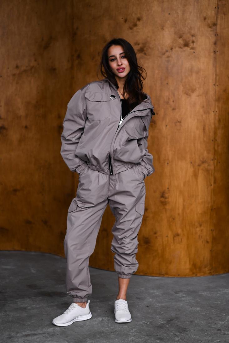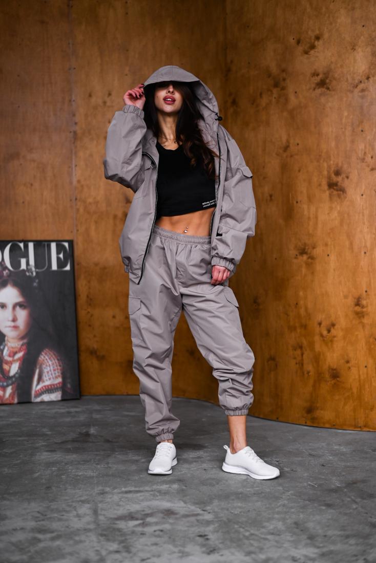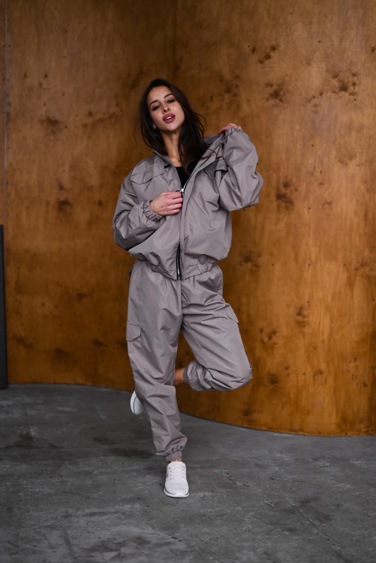 Женский Темно-Серый Спортивный Костюм Плащевка – Олимпийка + Штаны Карго