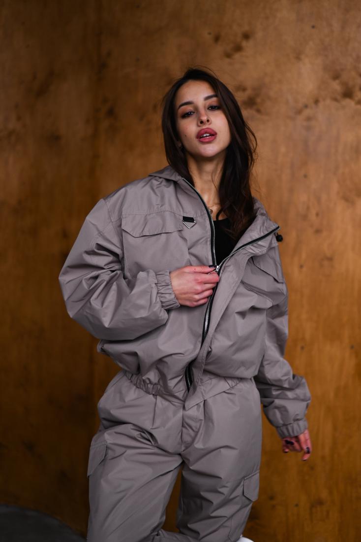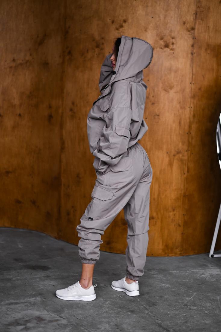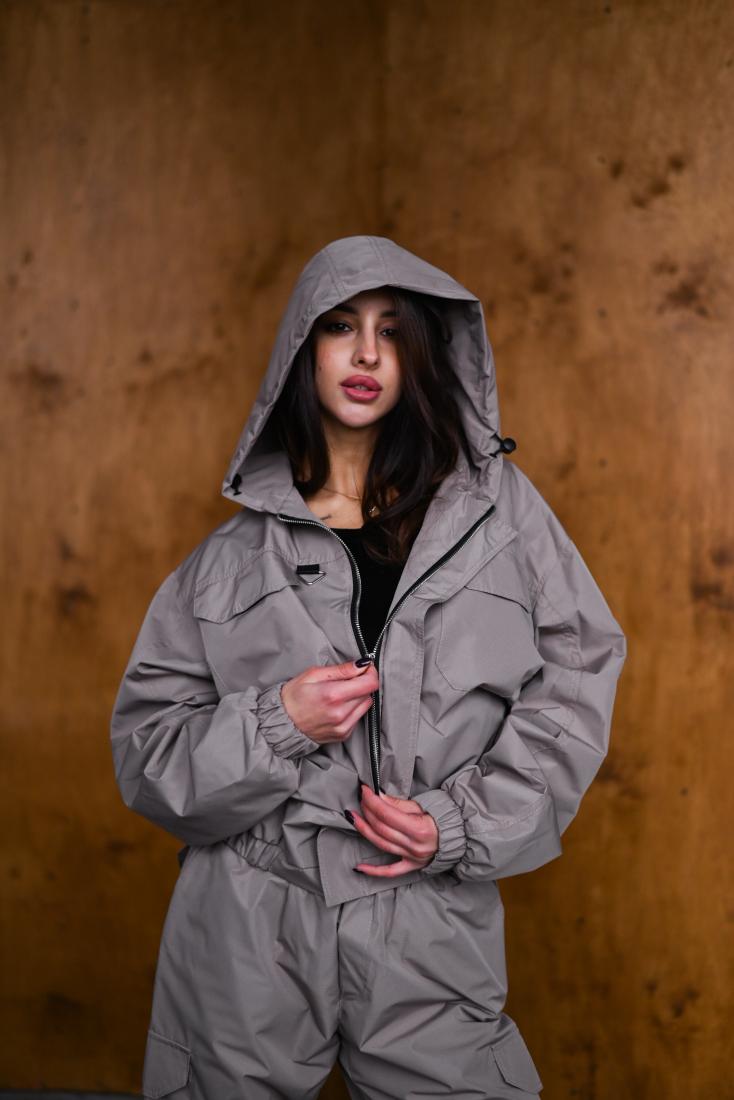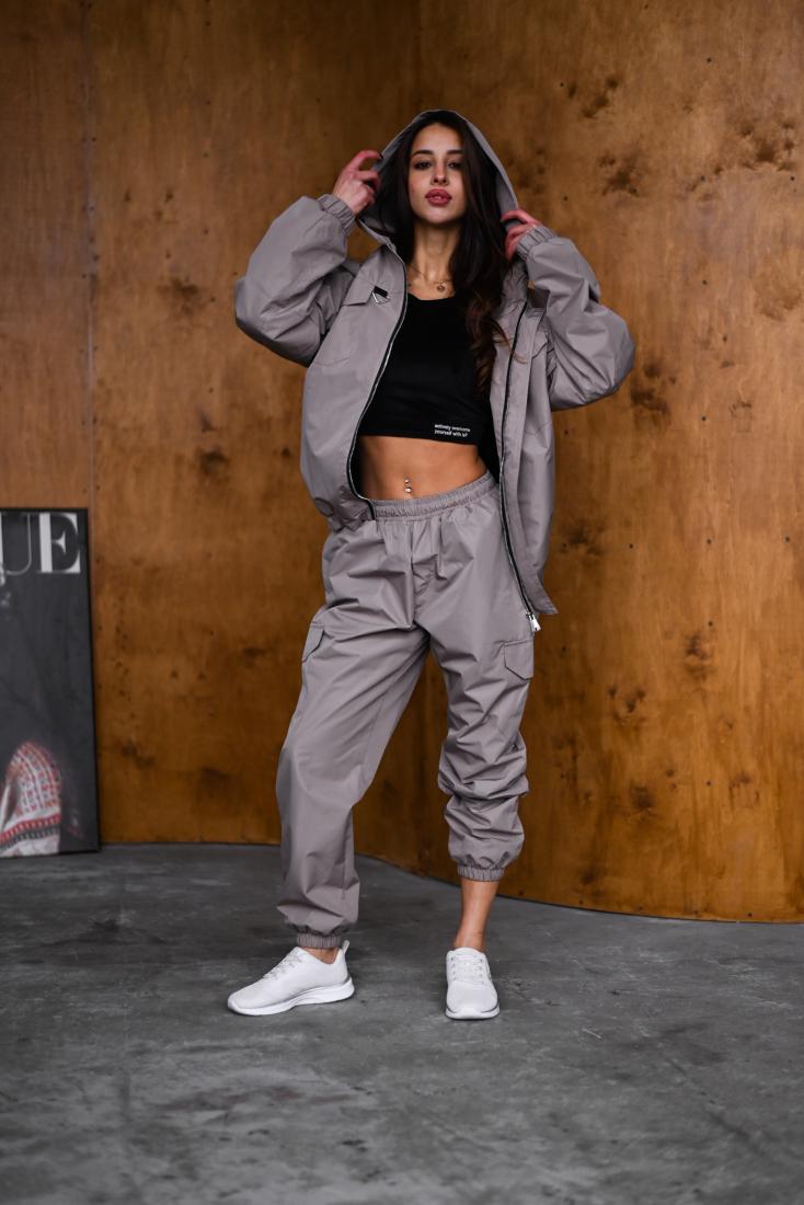 Женский Темно-Серый Спортивный Костюм Плащевка – Олимпийка + Штаны Карго