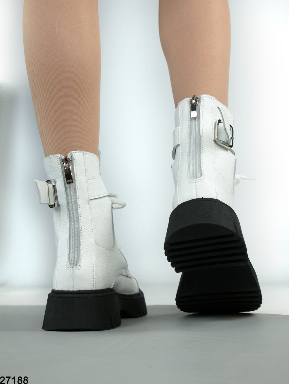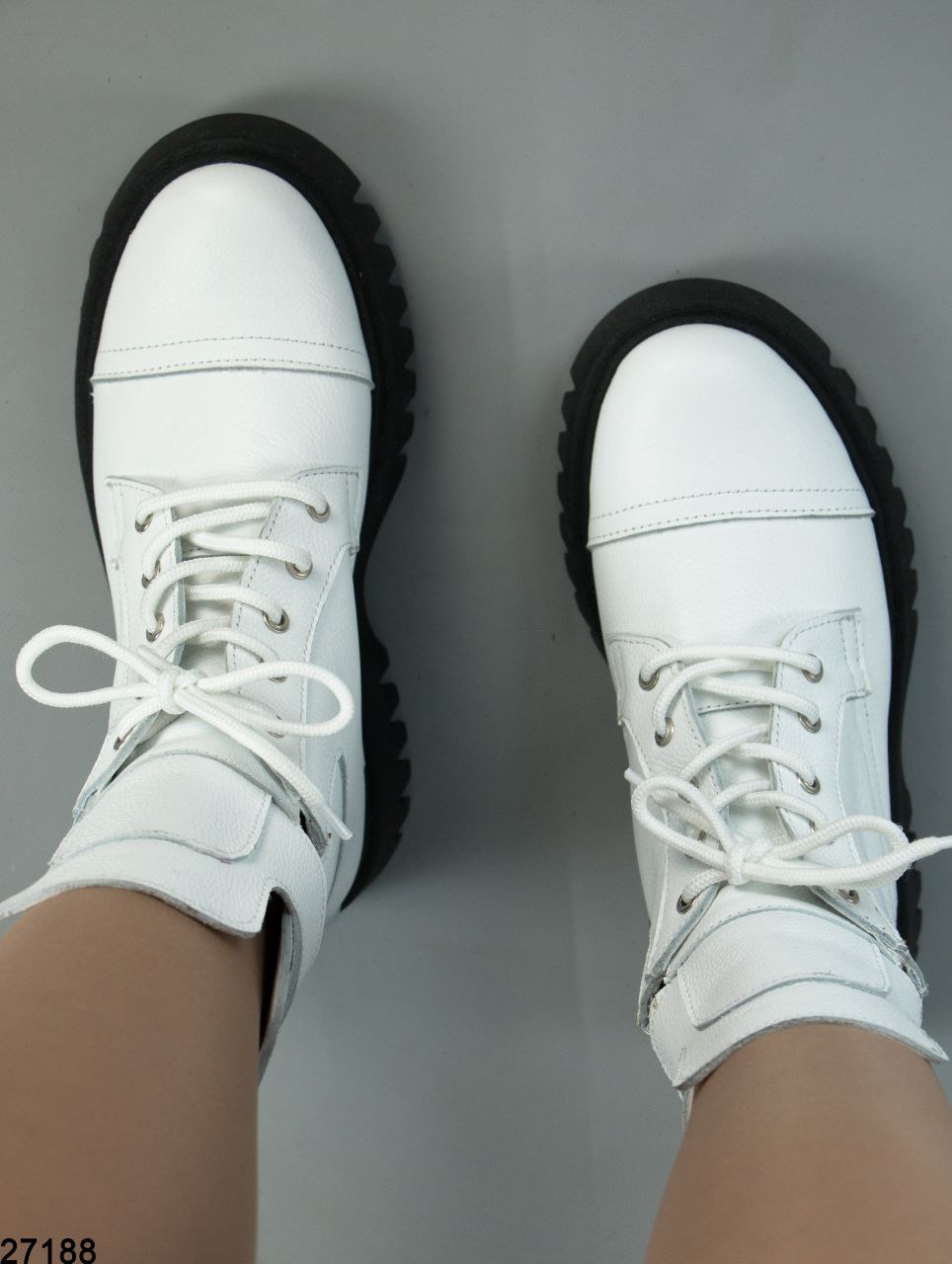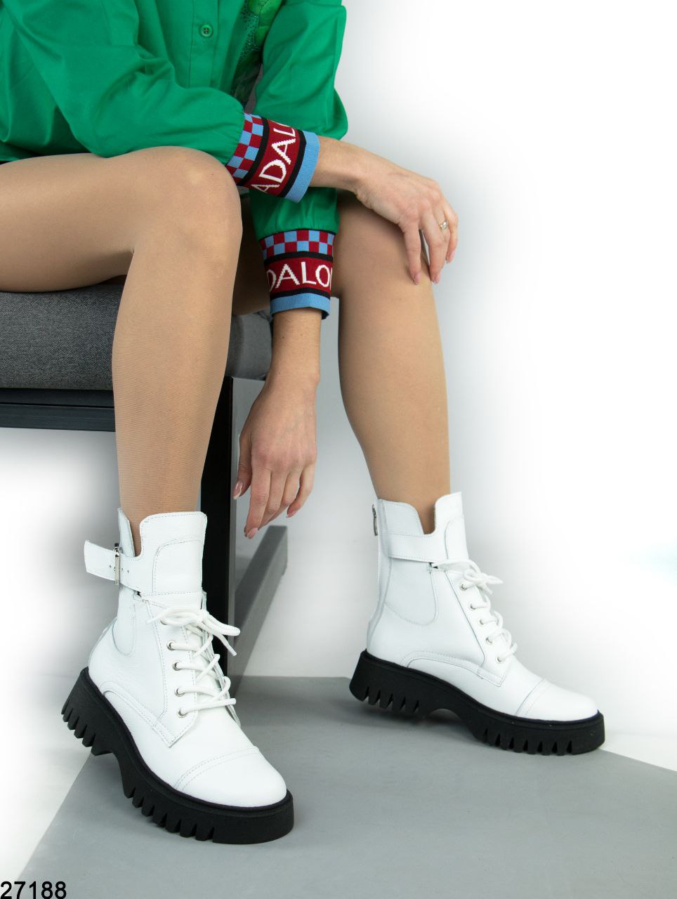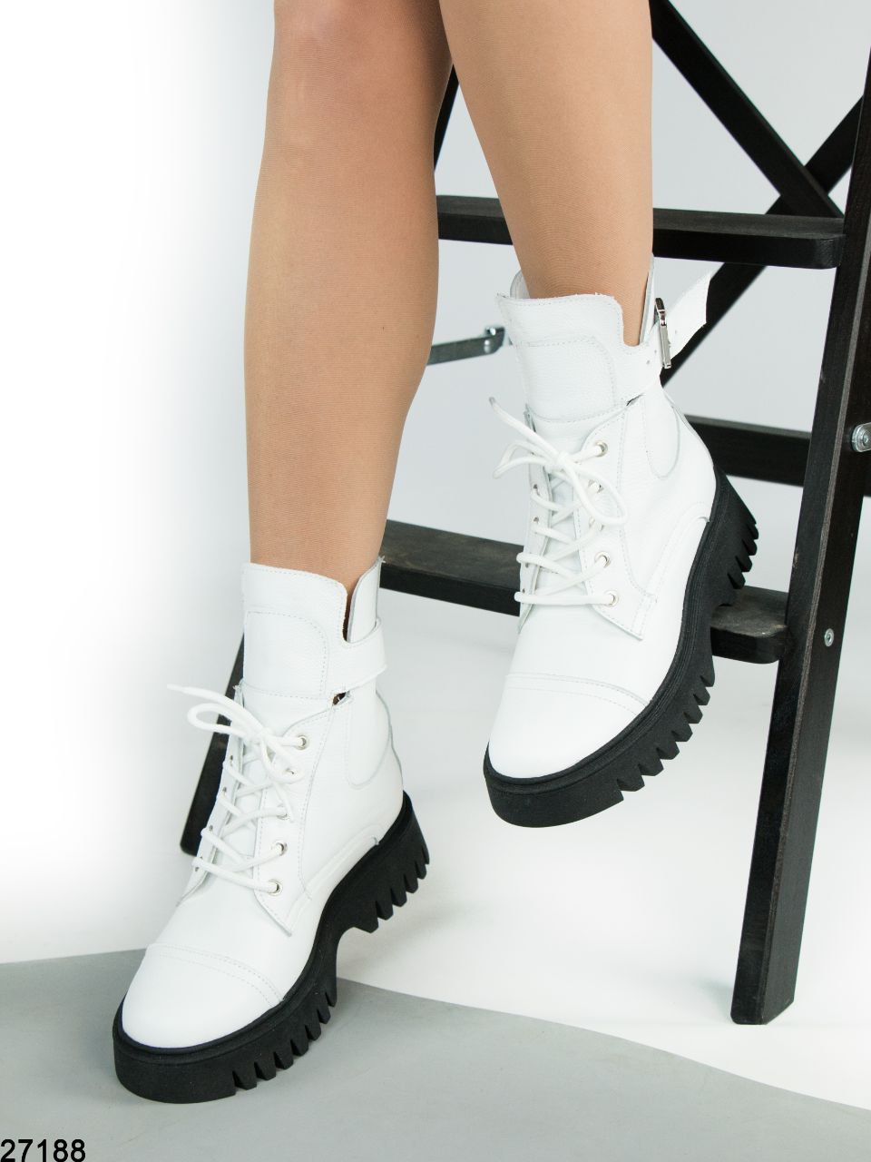 Женские Демисезонные Ботинки Белые – Высокие из Натуральной Кожи с Флисом