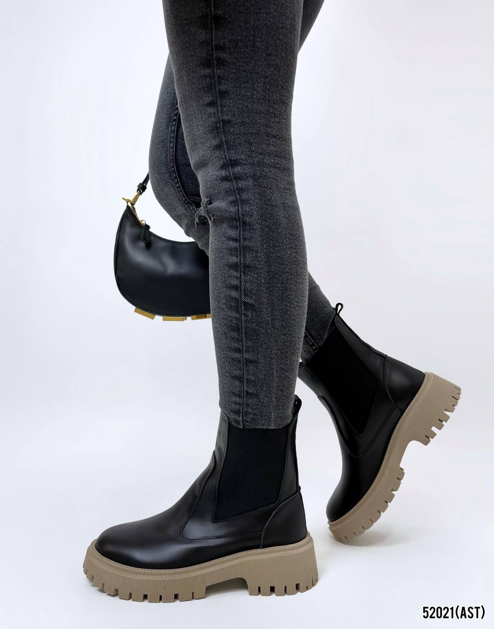 Женские Демисезонные Ботинки Черные – Высокие из Натуральной Кожи Внутри с Байкой