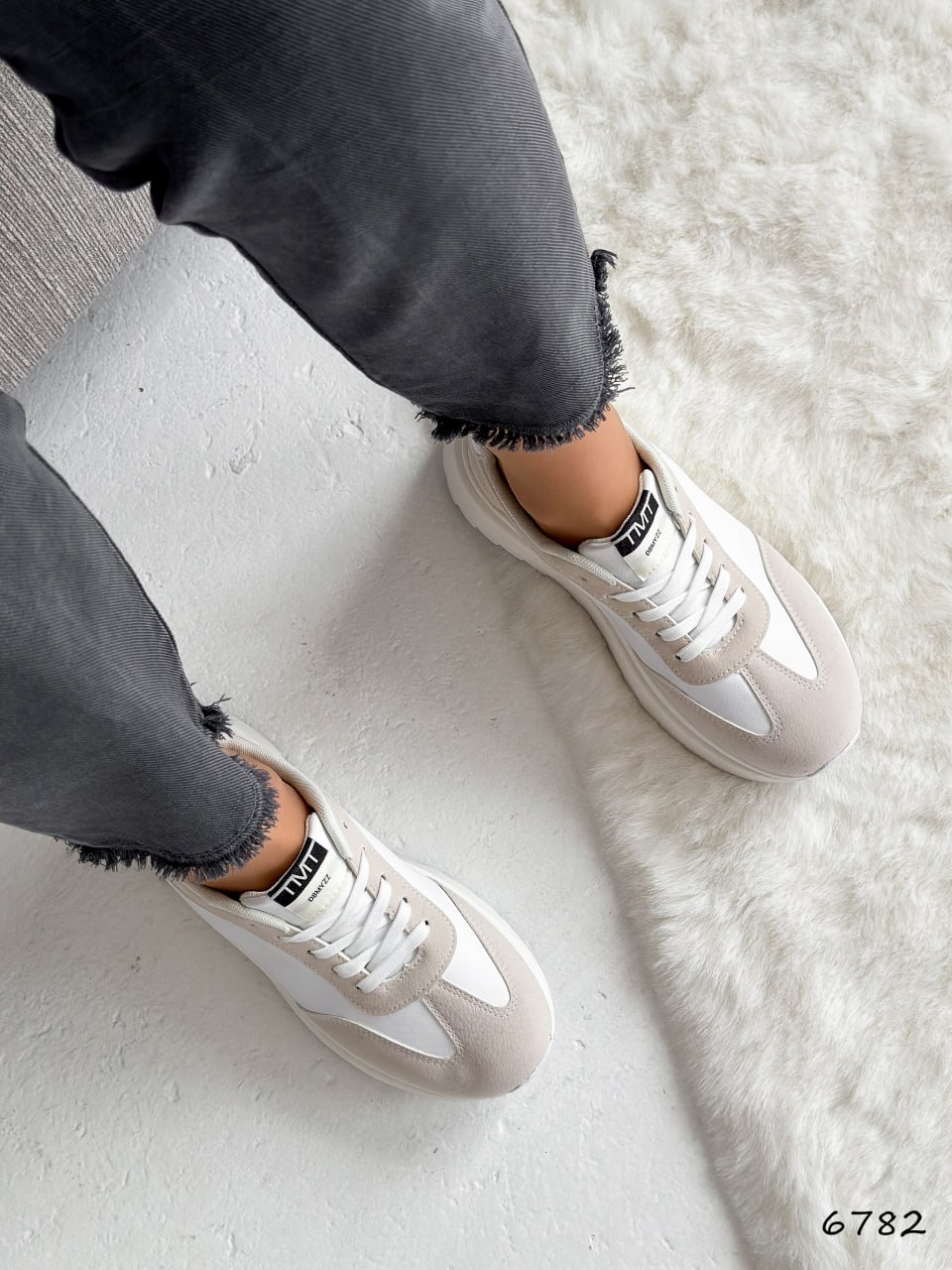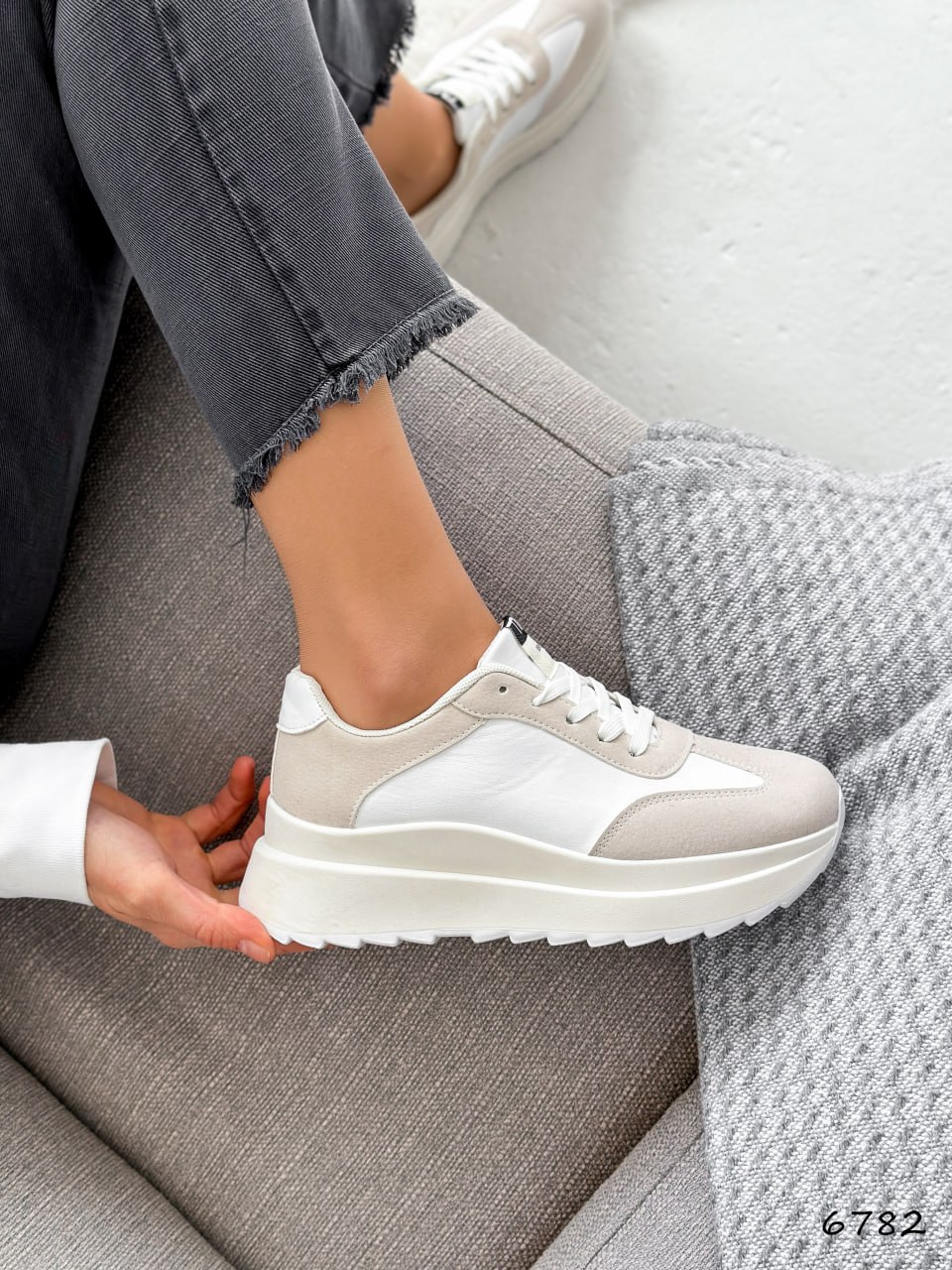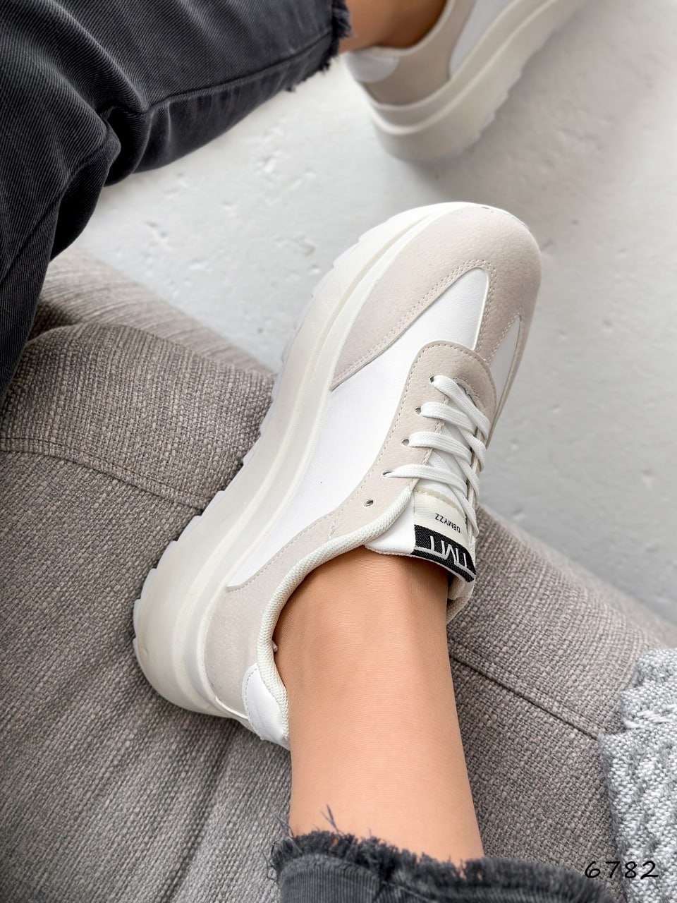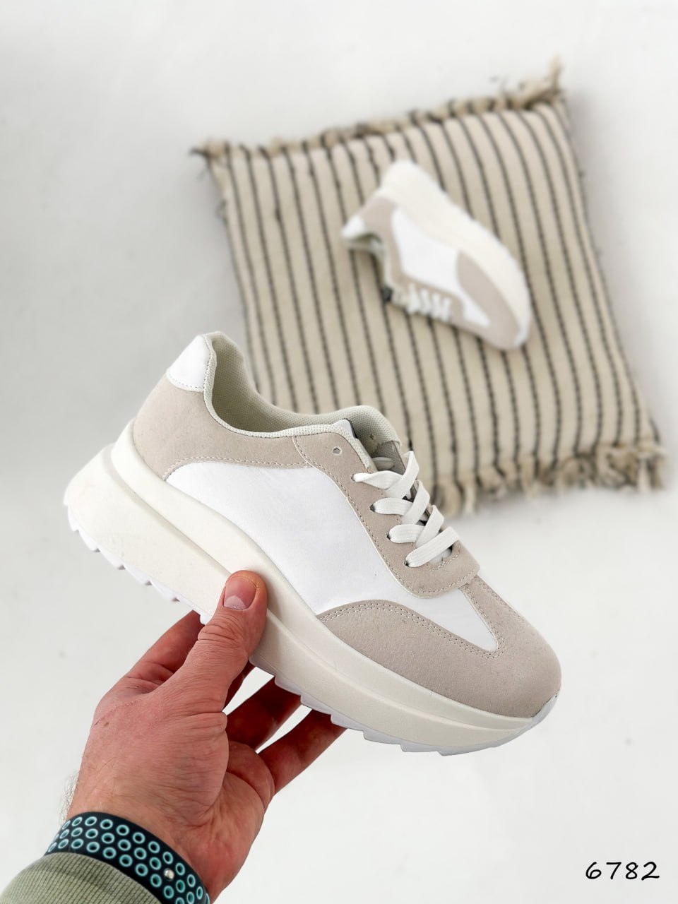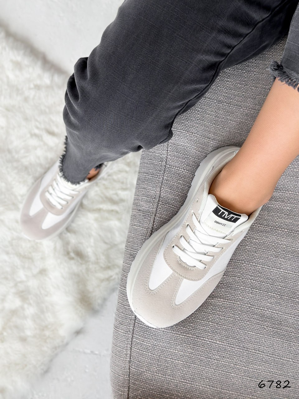 Женские Демисезонные Кроссовки Белые Бежевые из Экозамши Экокожи внутри Текстиль