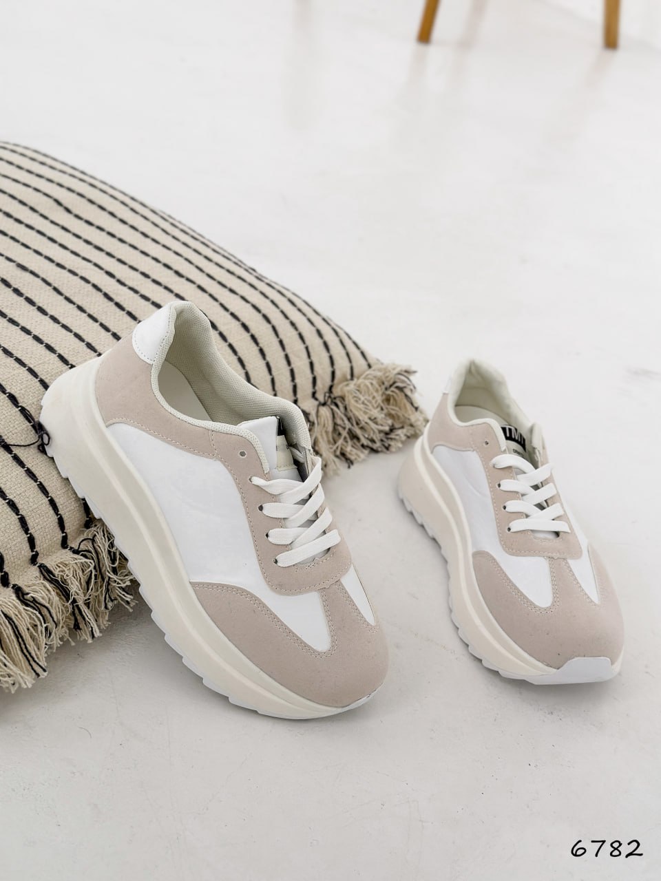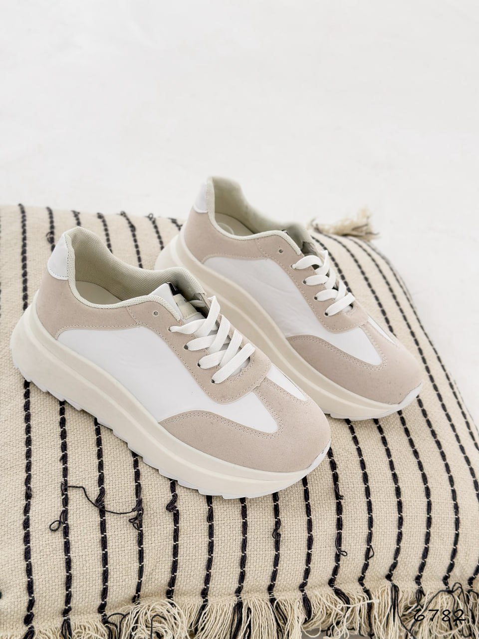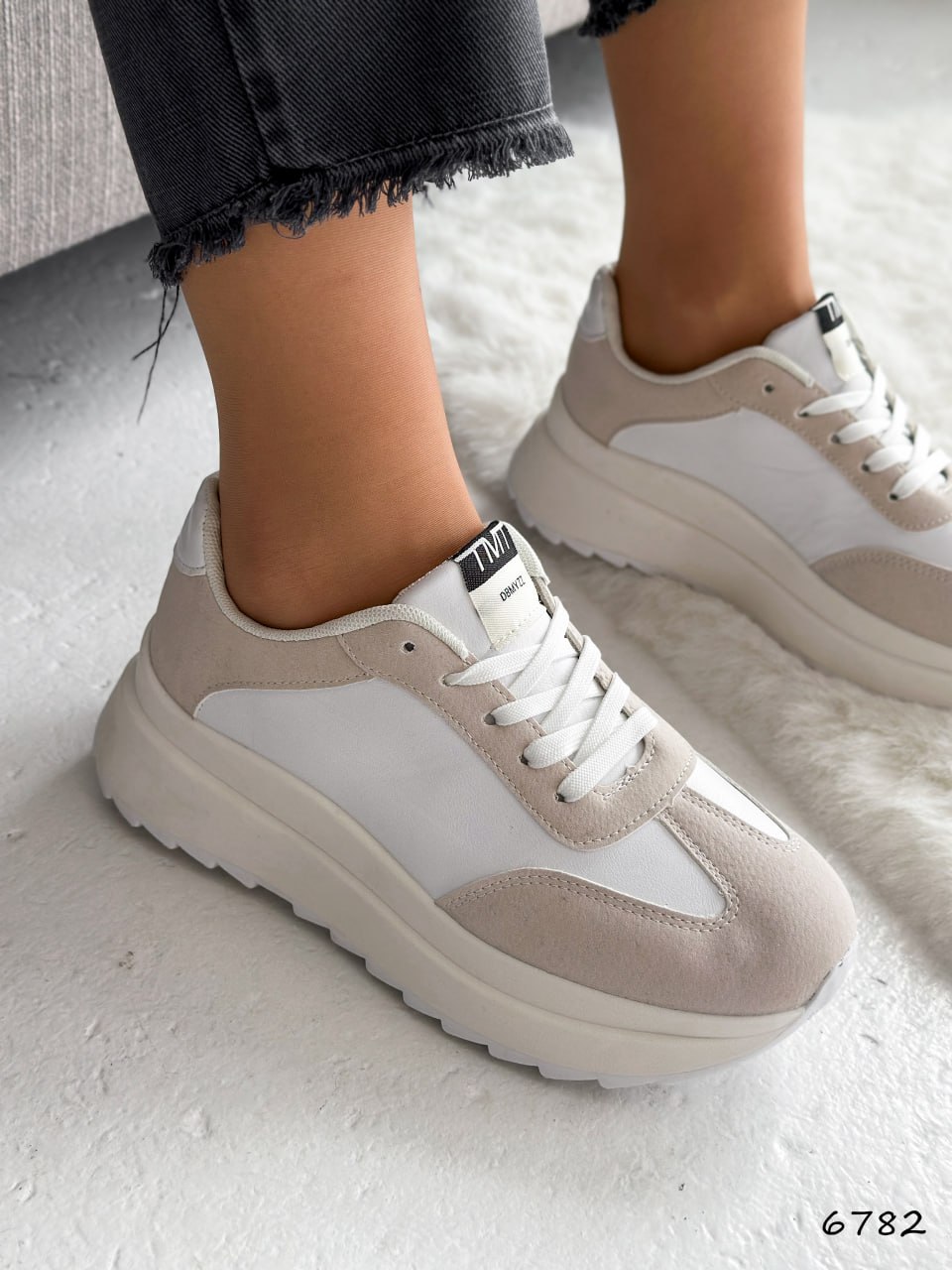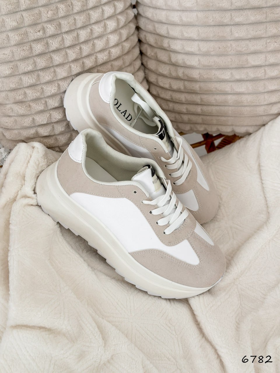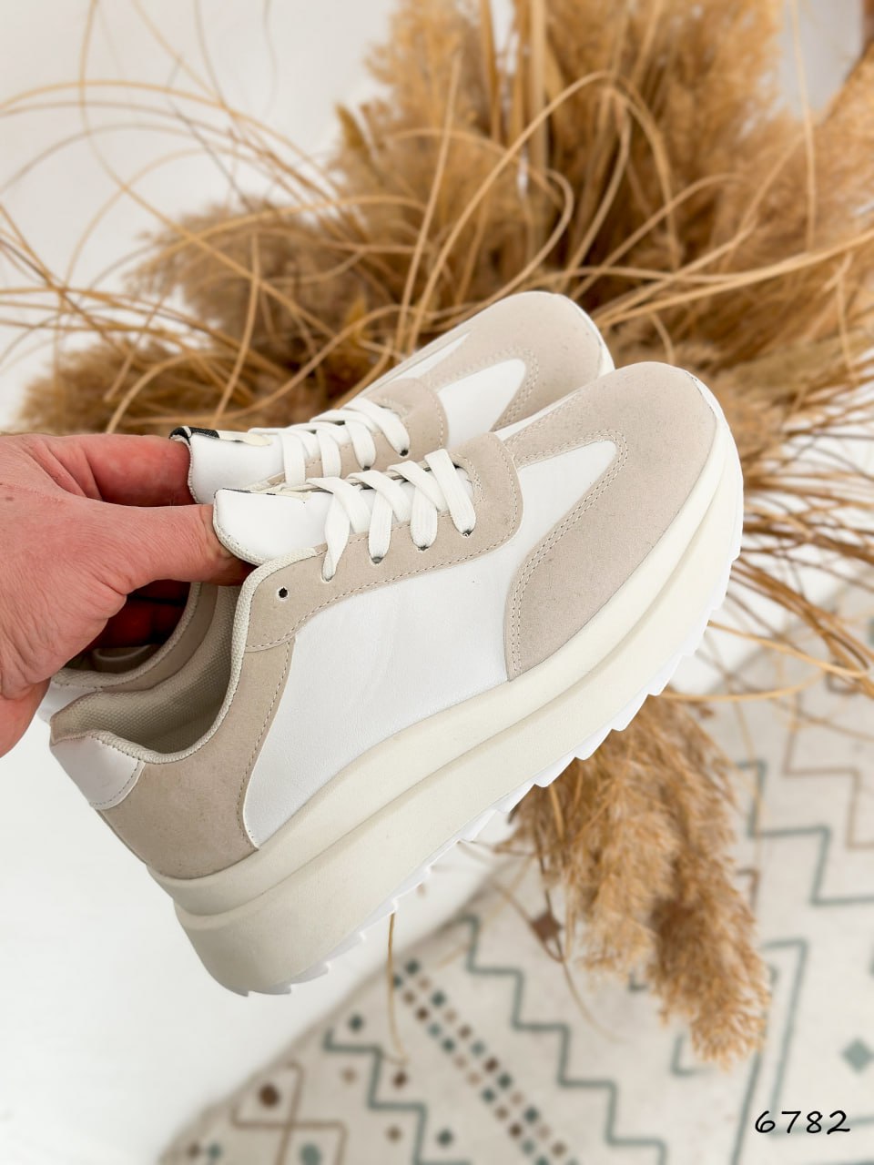 Женские Демисезонные Кроссовки Белые Бежевые из Экозамши Экокожи внутри Текстиль
