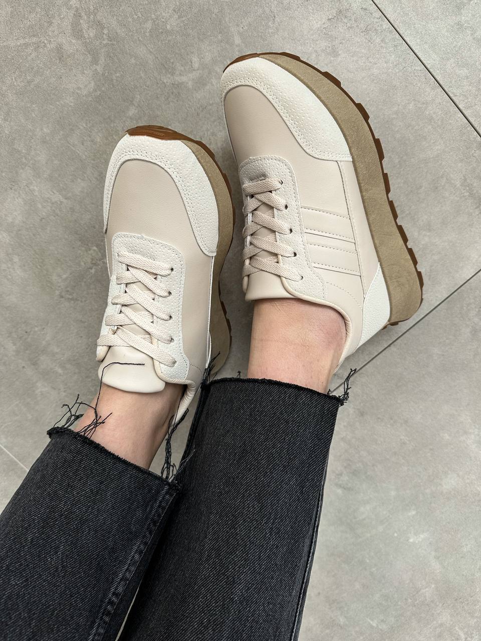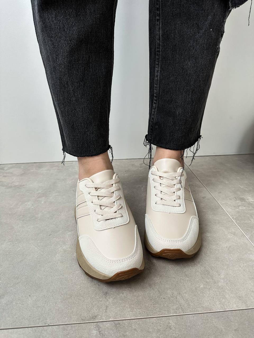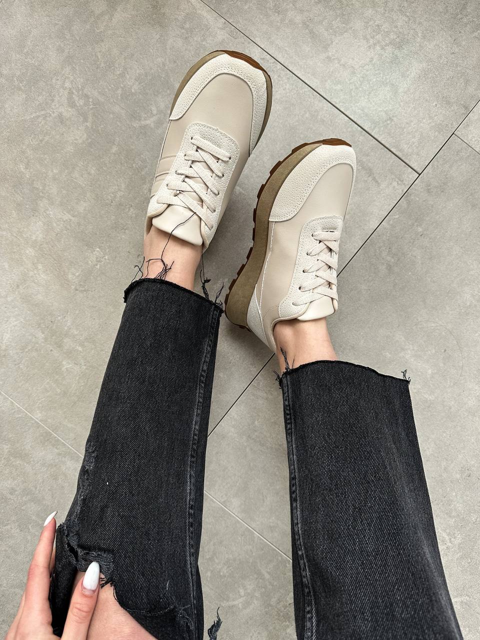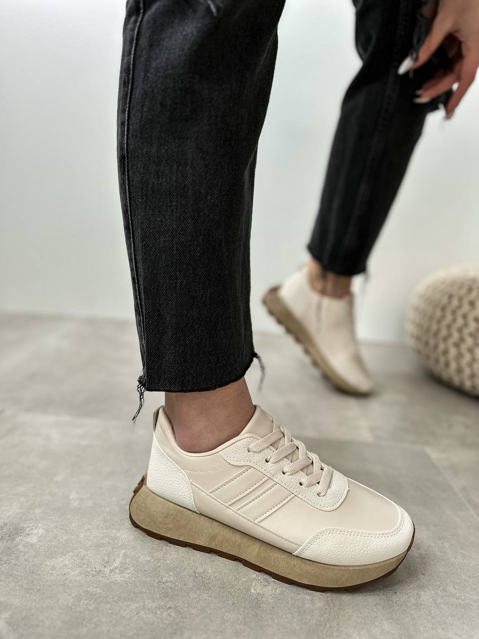 Женские Демисезонные Кроссовки Бежевые из Экокожа с Текстилем