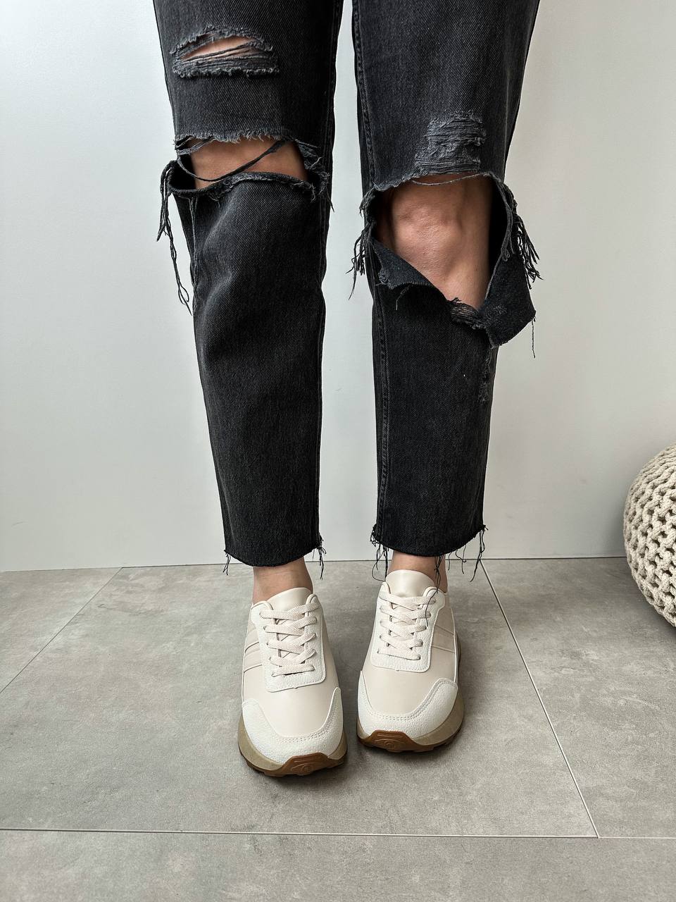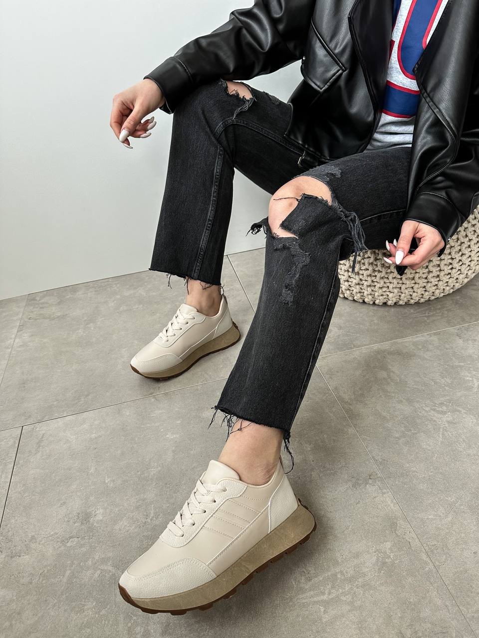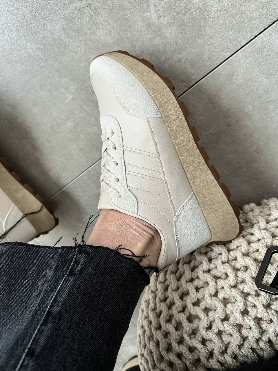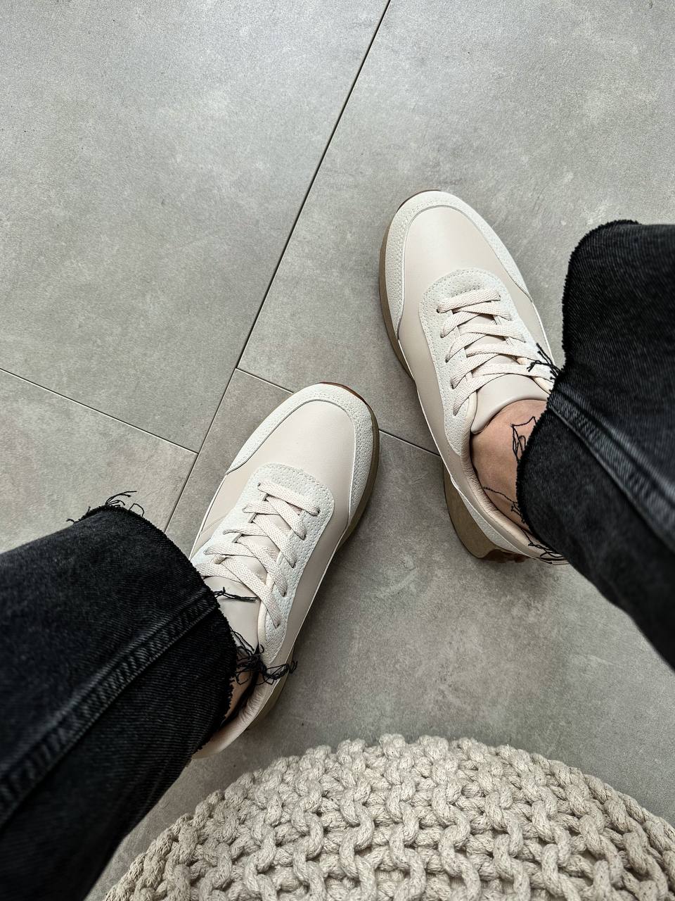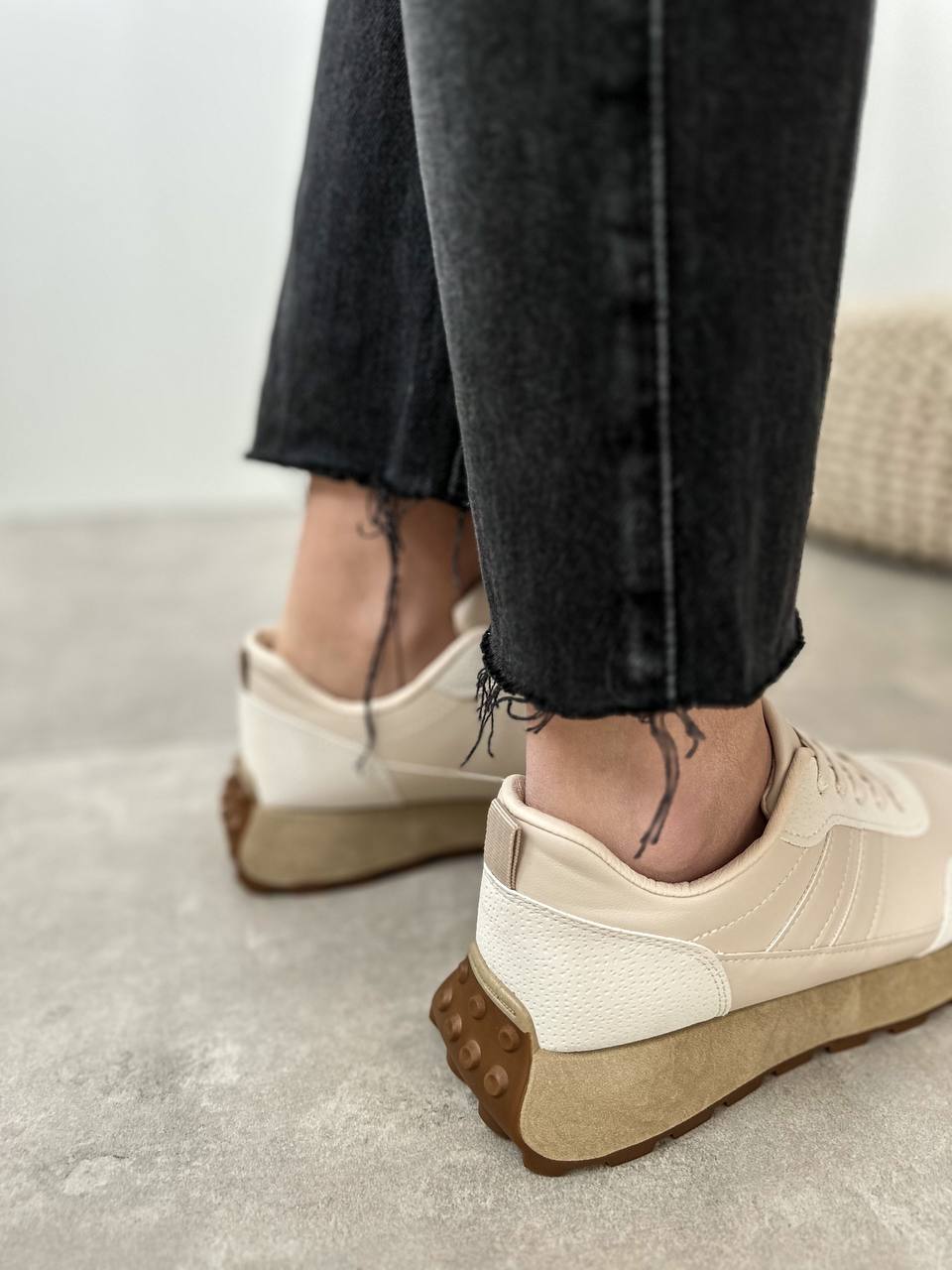 Женские Демисезонные Кроссовки Бежевые из Экокожа с Текстилем