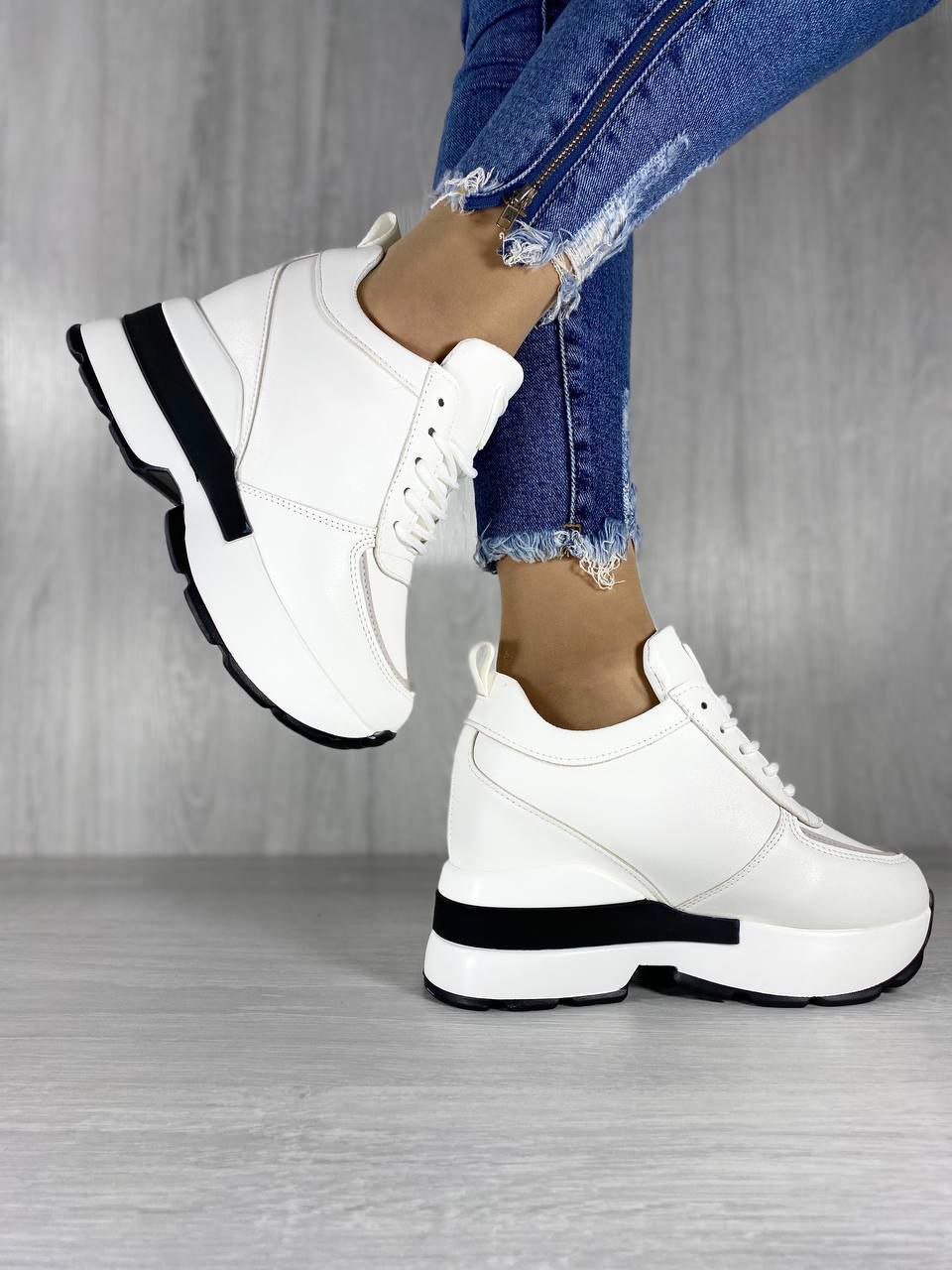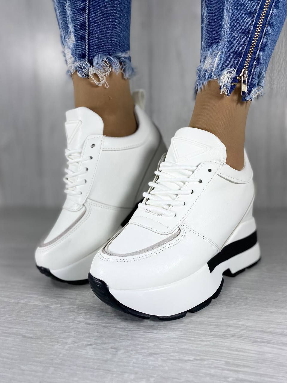 Женские Демисезонные Кроссовки Сникерсы Белые из Экокожа внутри Текстиль
