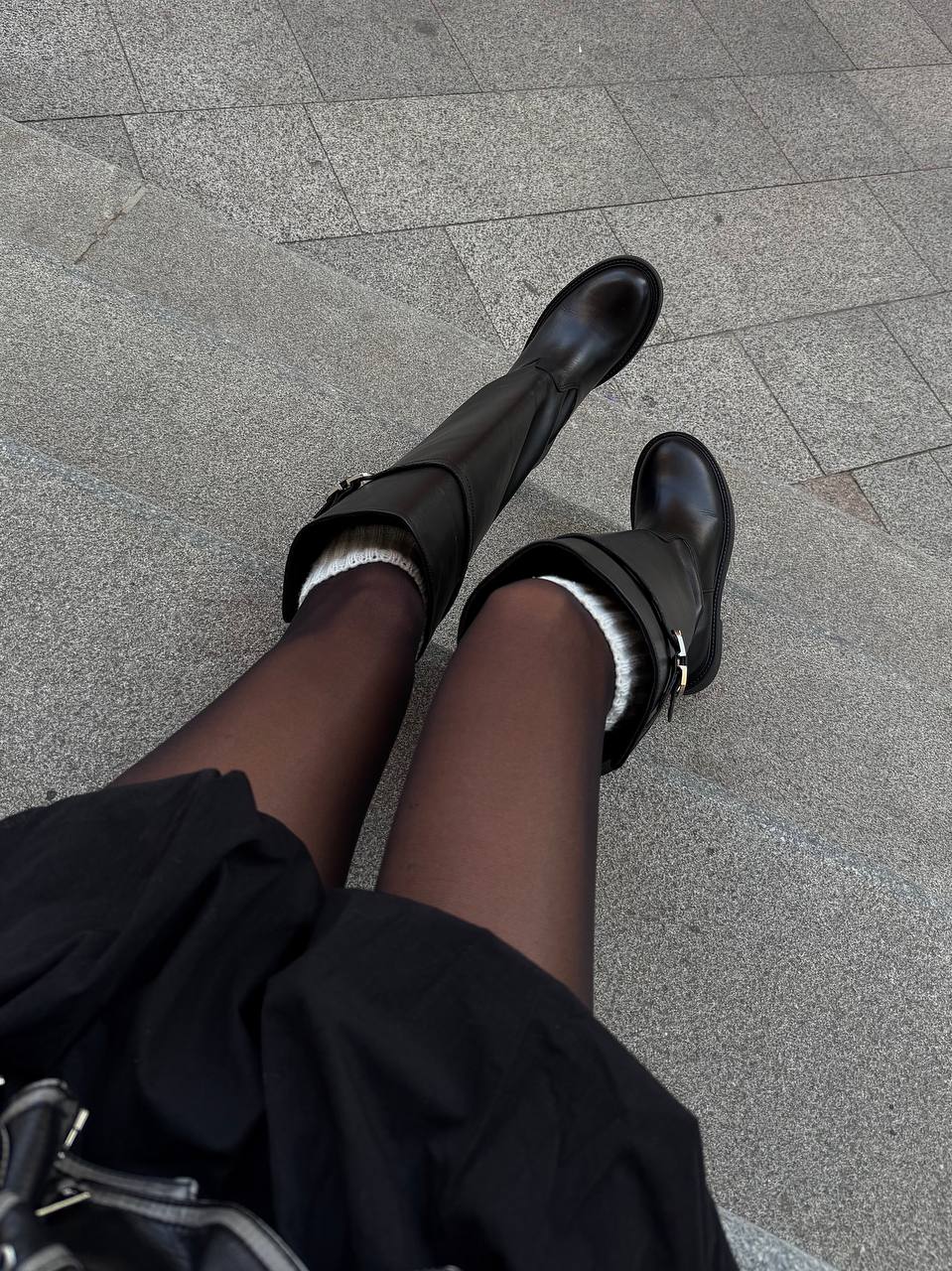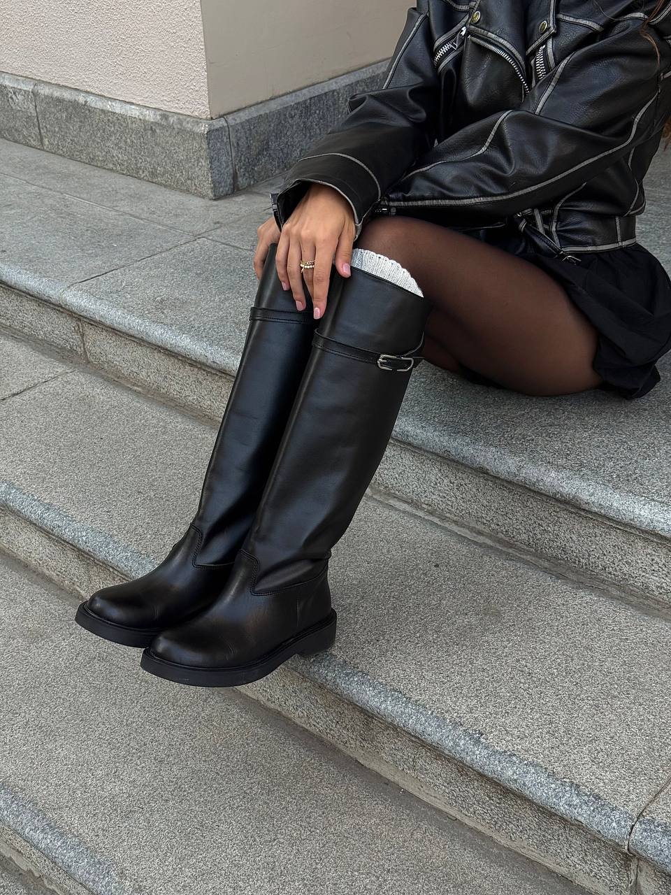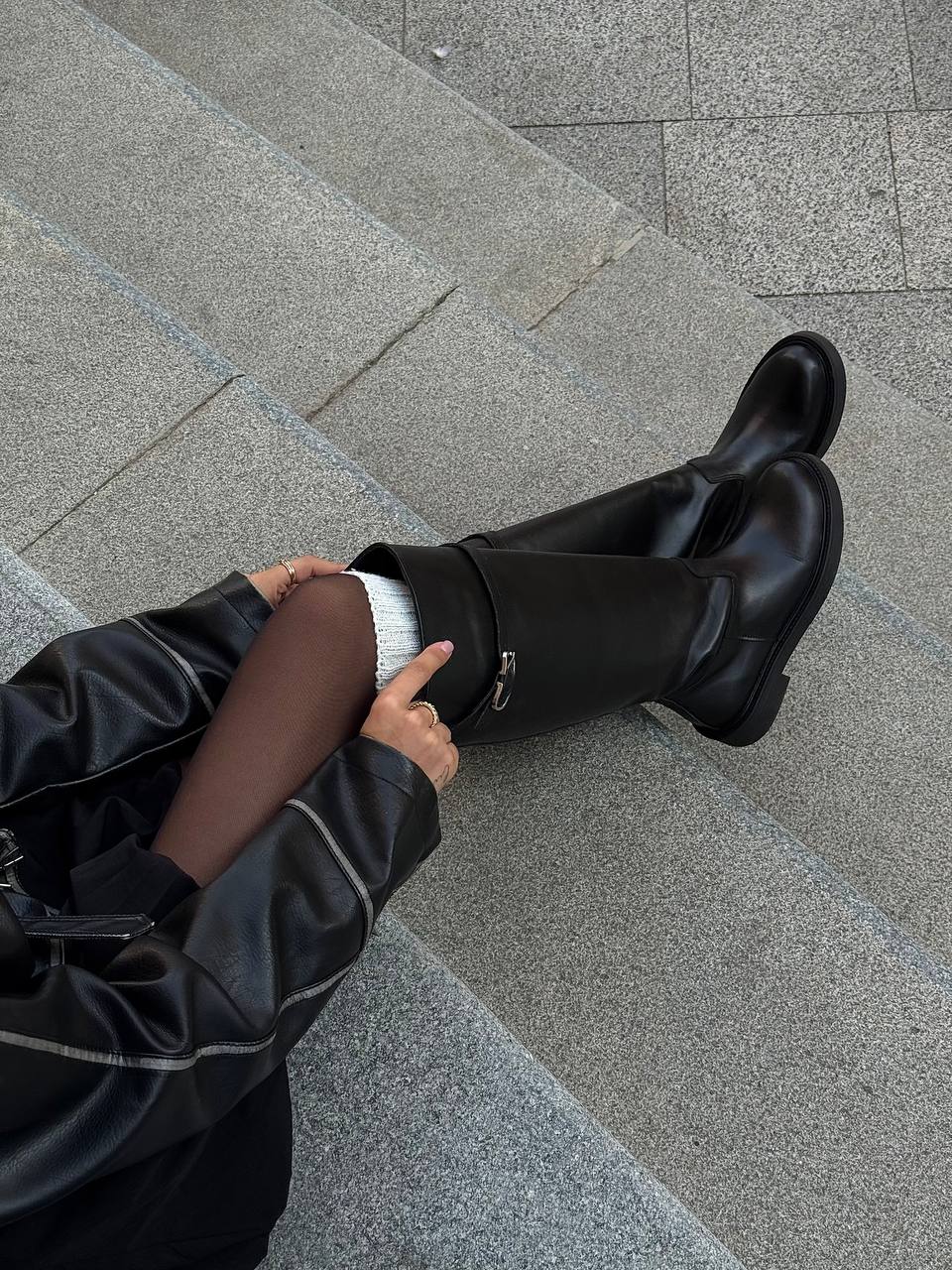Женские Демисезонные Высокие Жокейские Кожаные Черные Сапоги Трубы с Замочком