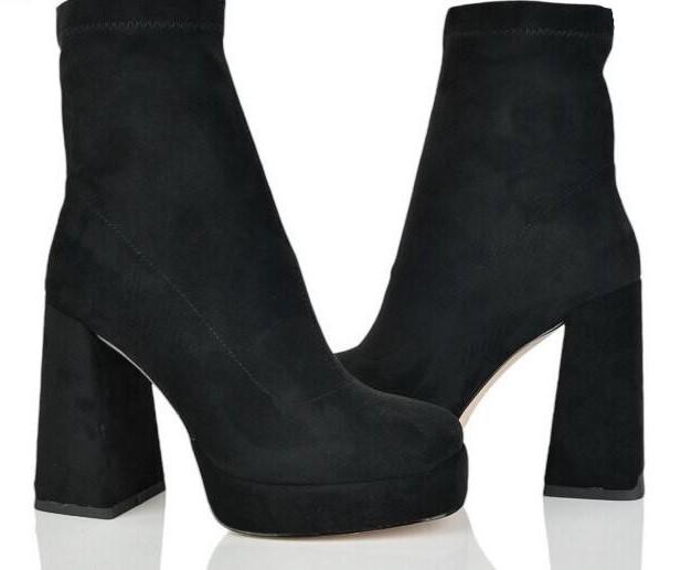 Женские Демисезонные Замшевые Черные Сапоги Ботильоны с Масивным Каблуком
