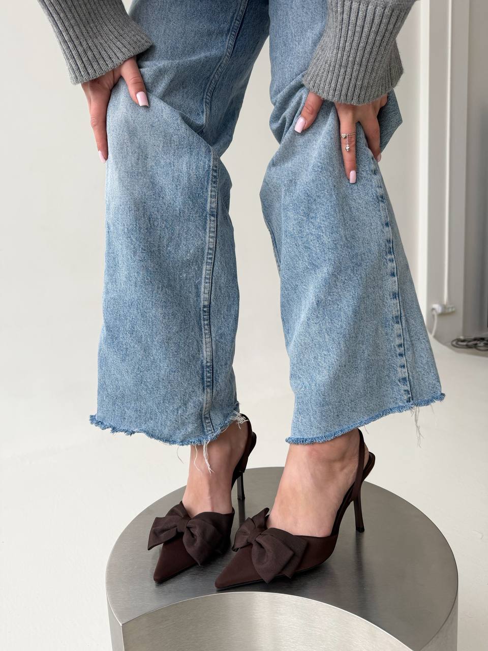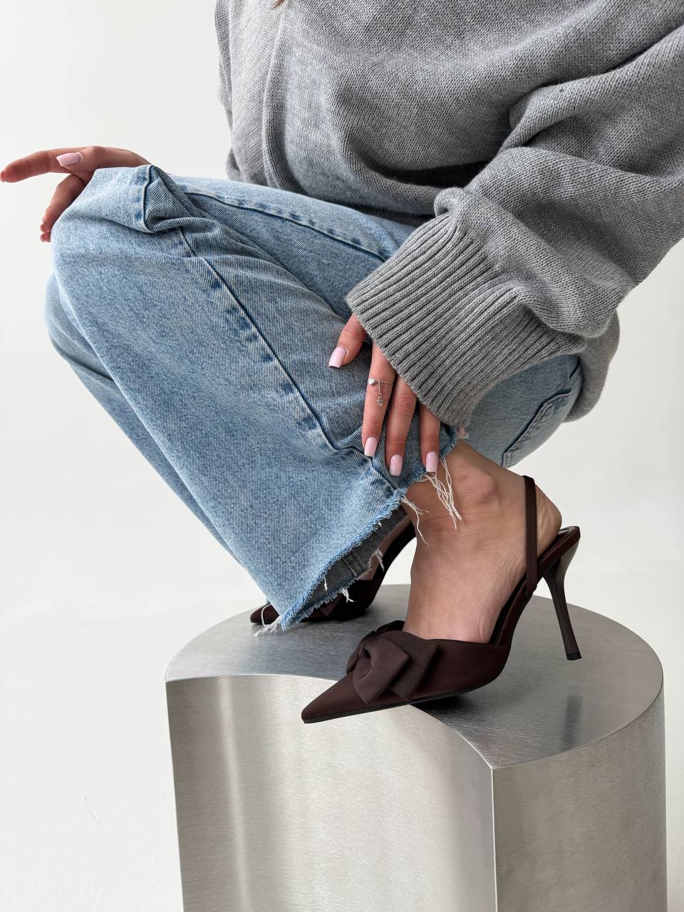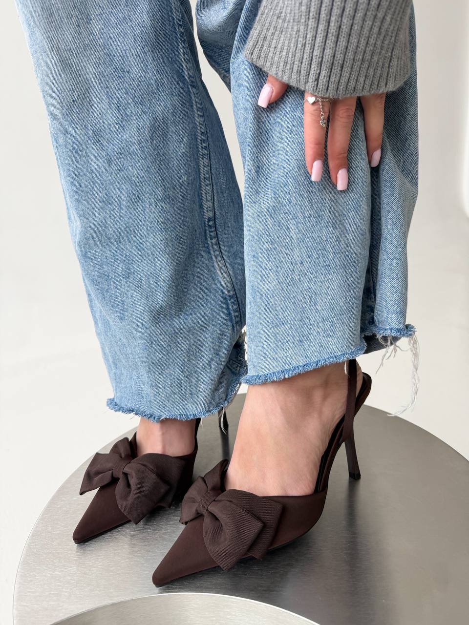 Женские Коричневые Туфли Слингбэки на Шпильке с Бантиком