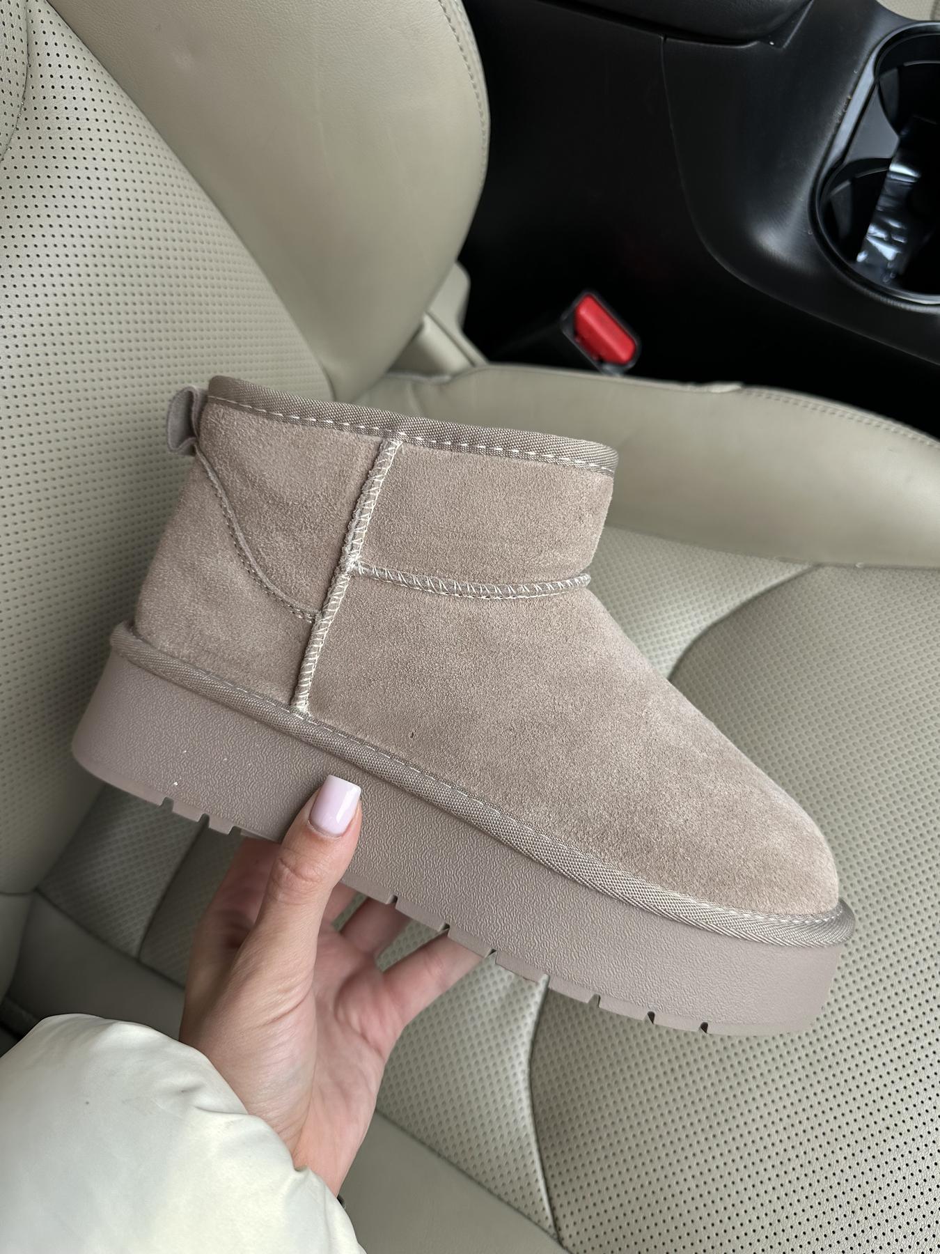 Женские Короткие Замшевые Бежевые Угги – Зимние Сапоги Голая Пятка