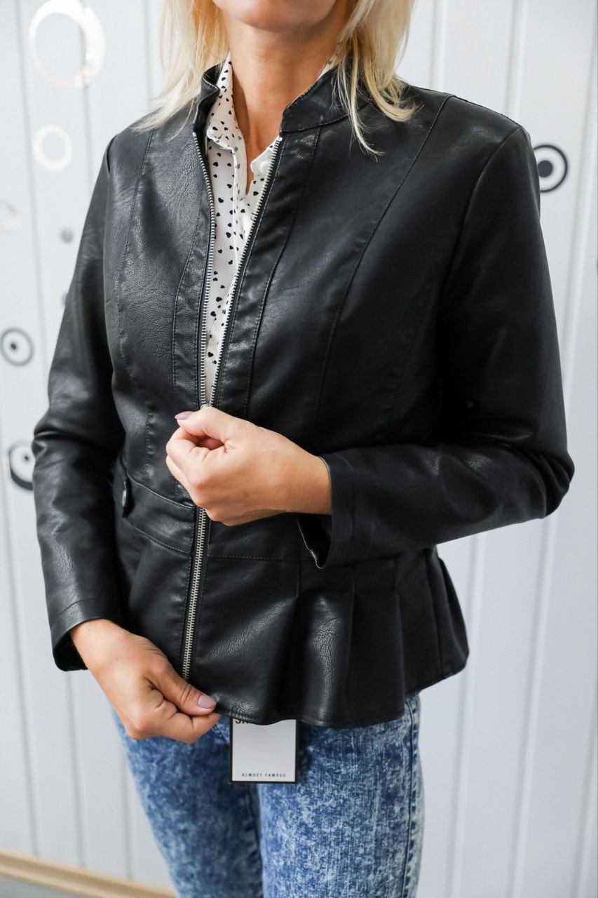 Женская Черная Кожаная Куртка на Молнии Приталенная