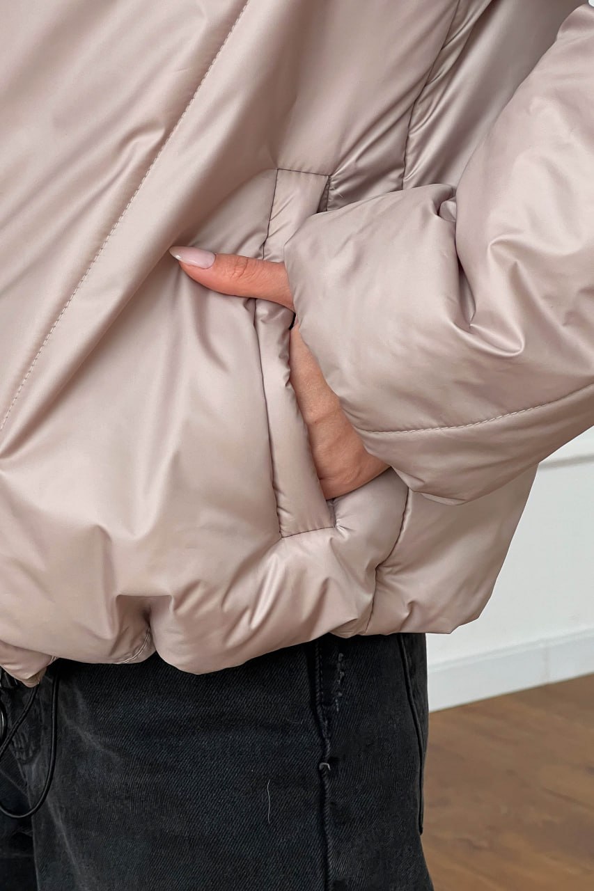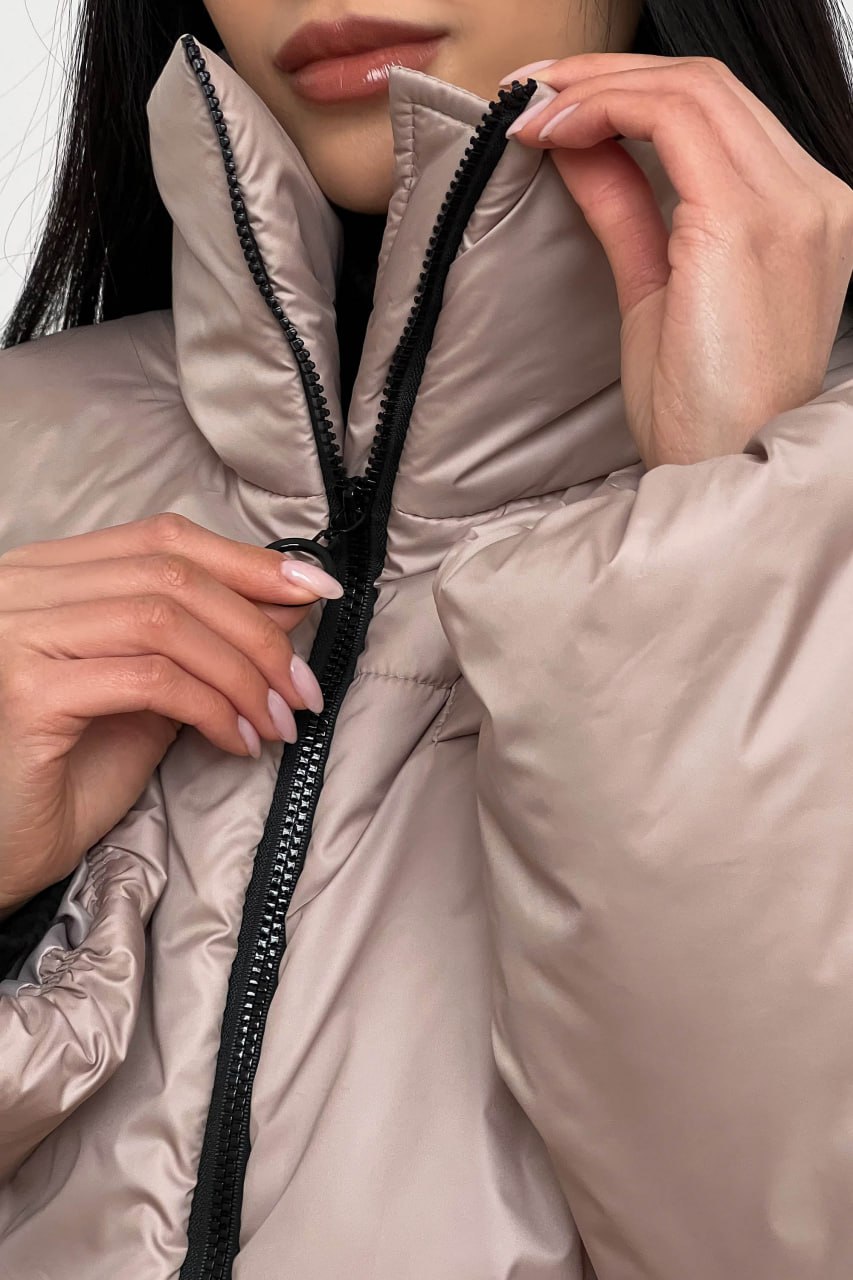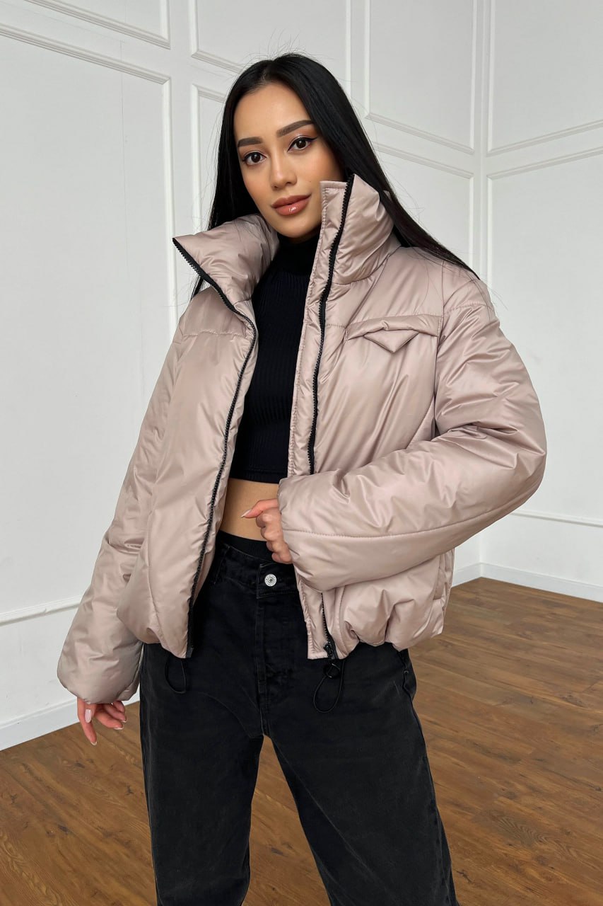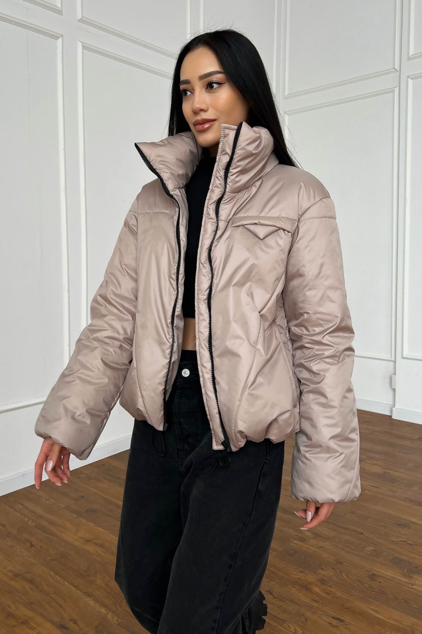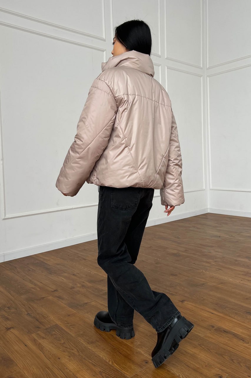 Женская Демисезонная Бежевая Куртка Сия – Прямого Кроя на Молнии с Высоким Воротником Стойкой