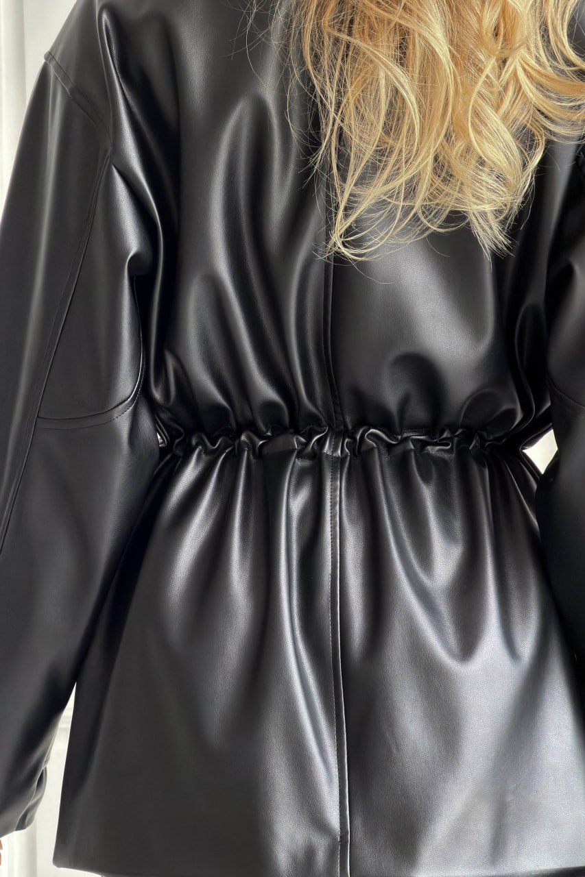 Женская Демисезонная Черная Кожаная Куртка Кора – Удлиненная с Затяжками на Талии