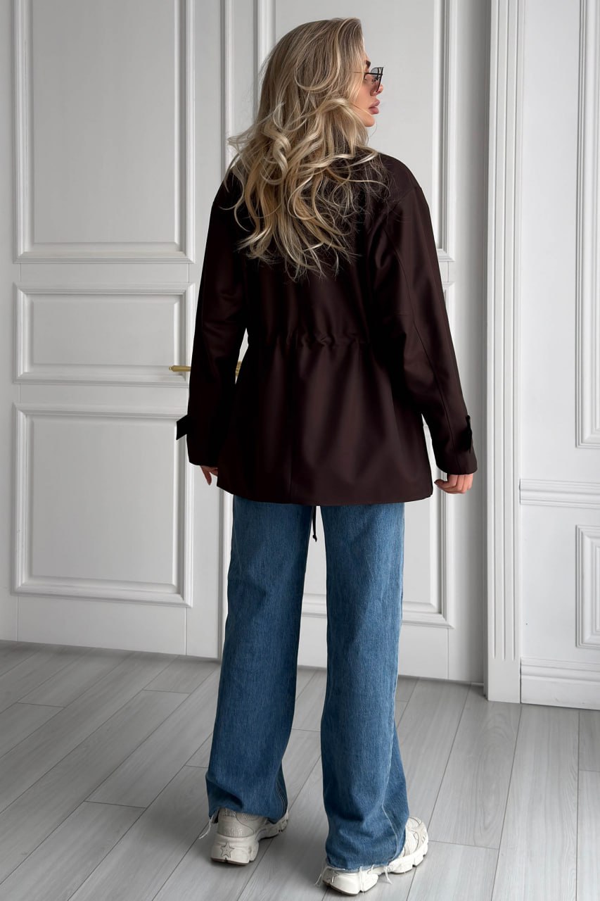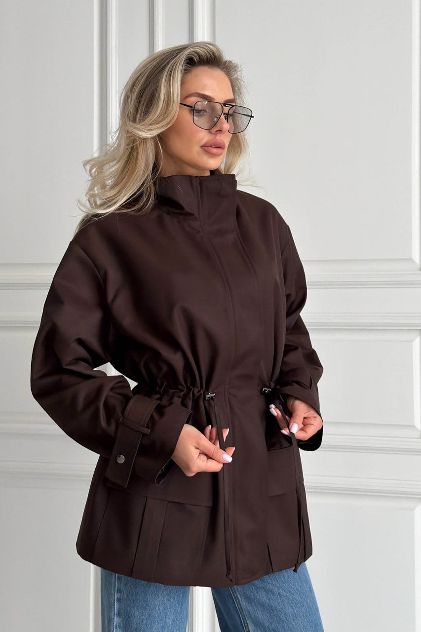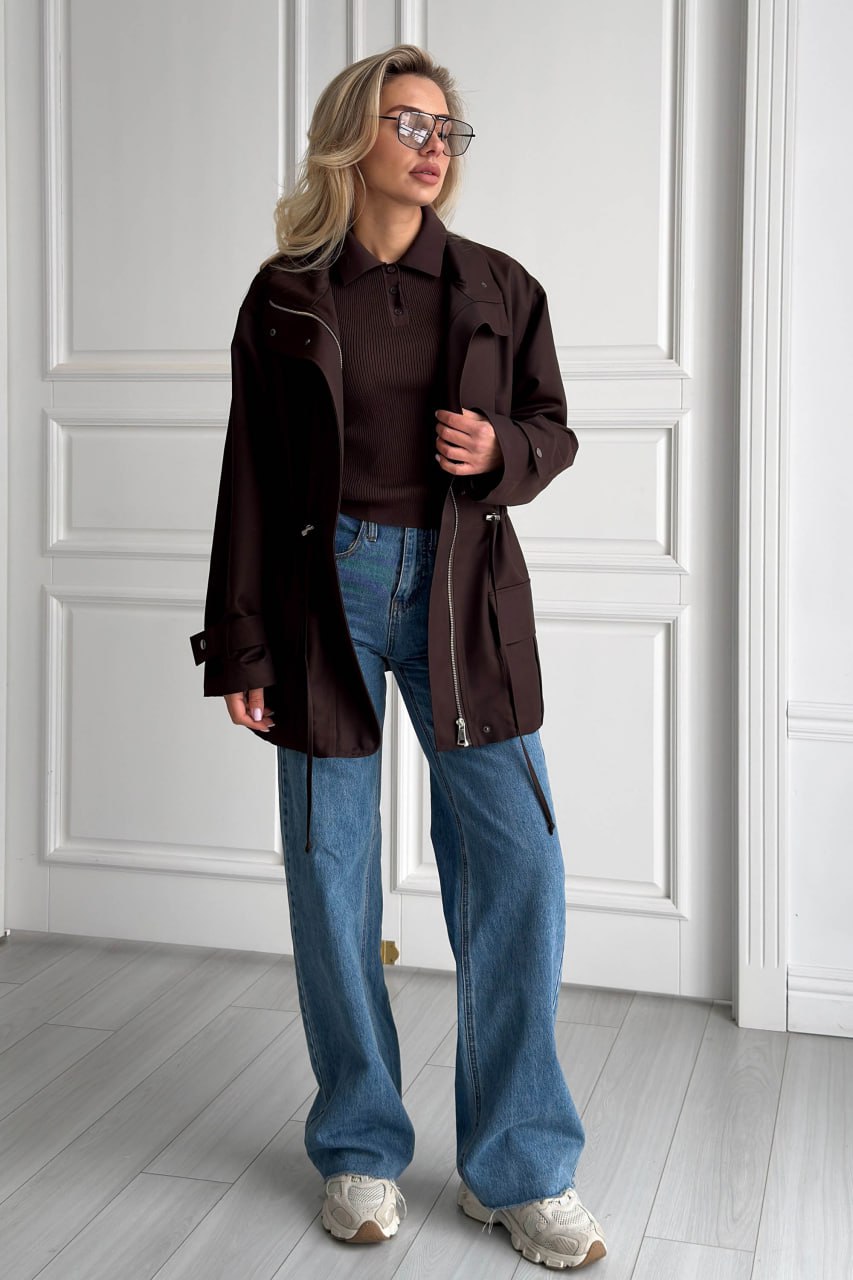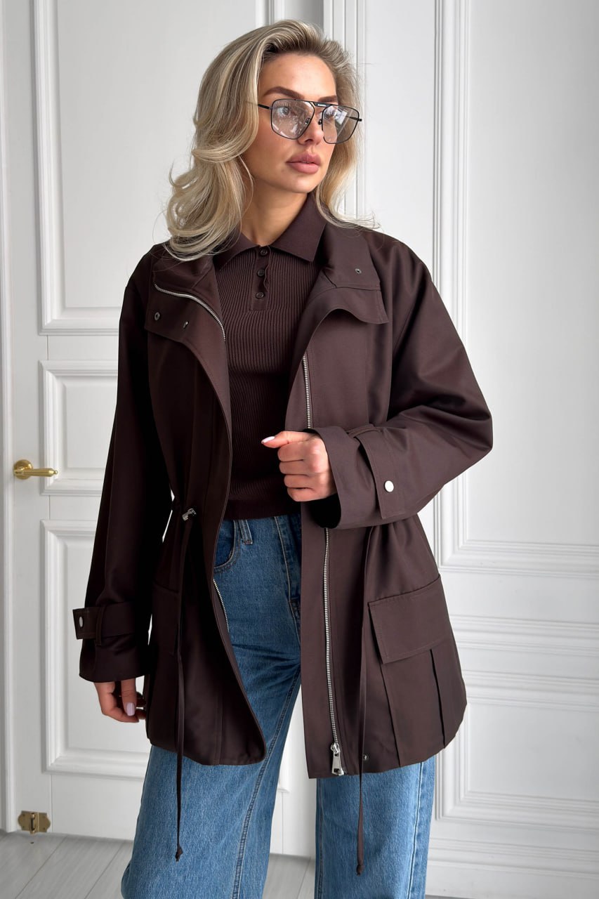 Женская Демисезонная Коричневая Куртка Джуна – Удлиненная с Кулисками на Талии