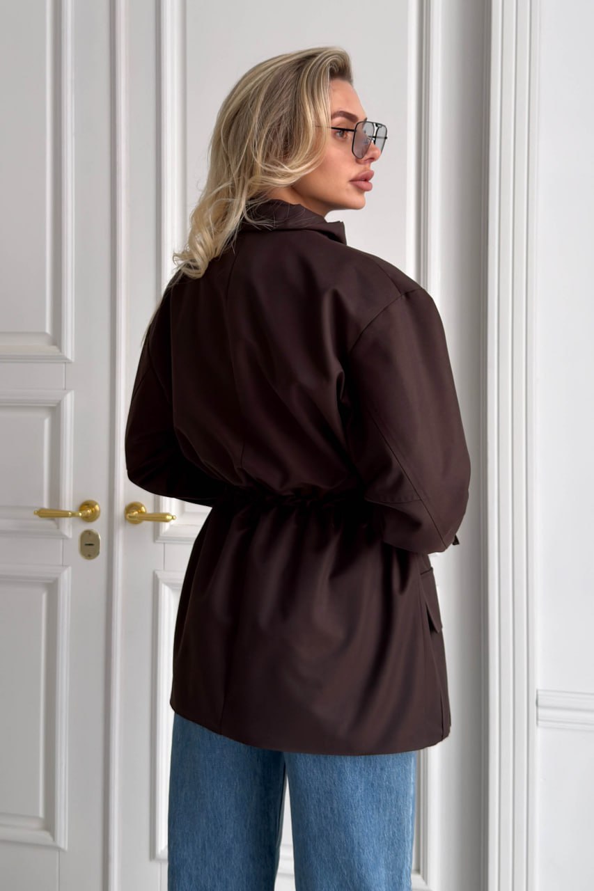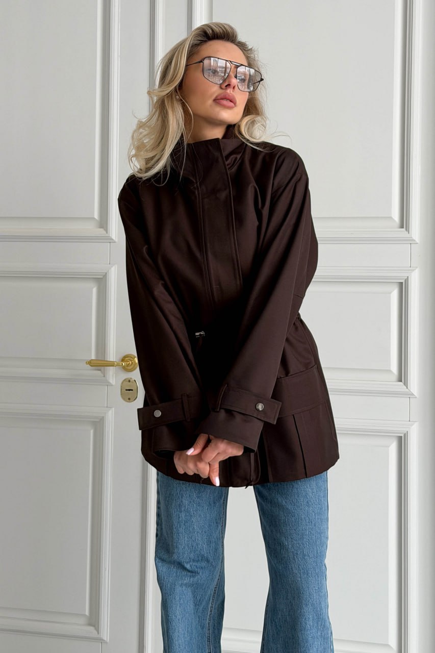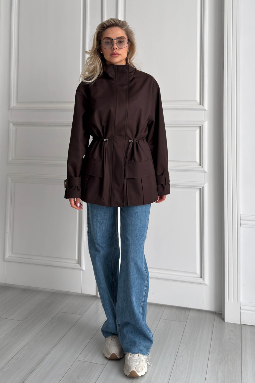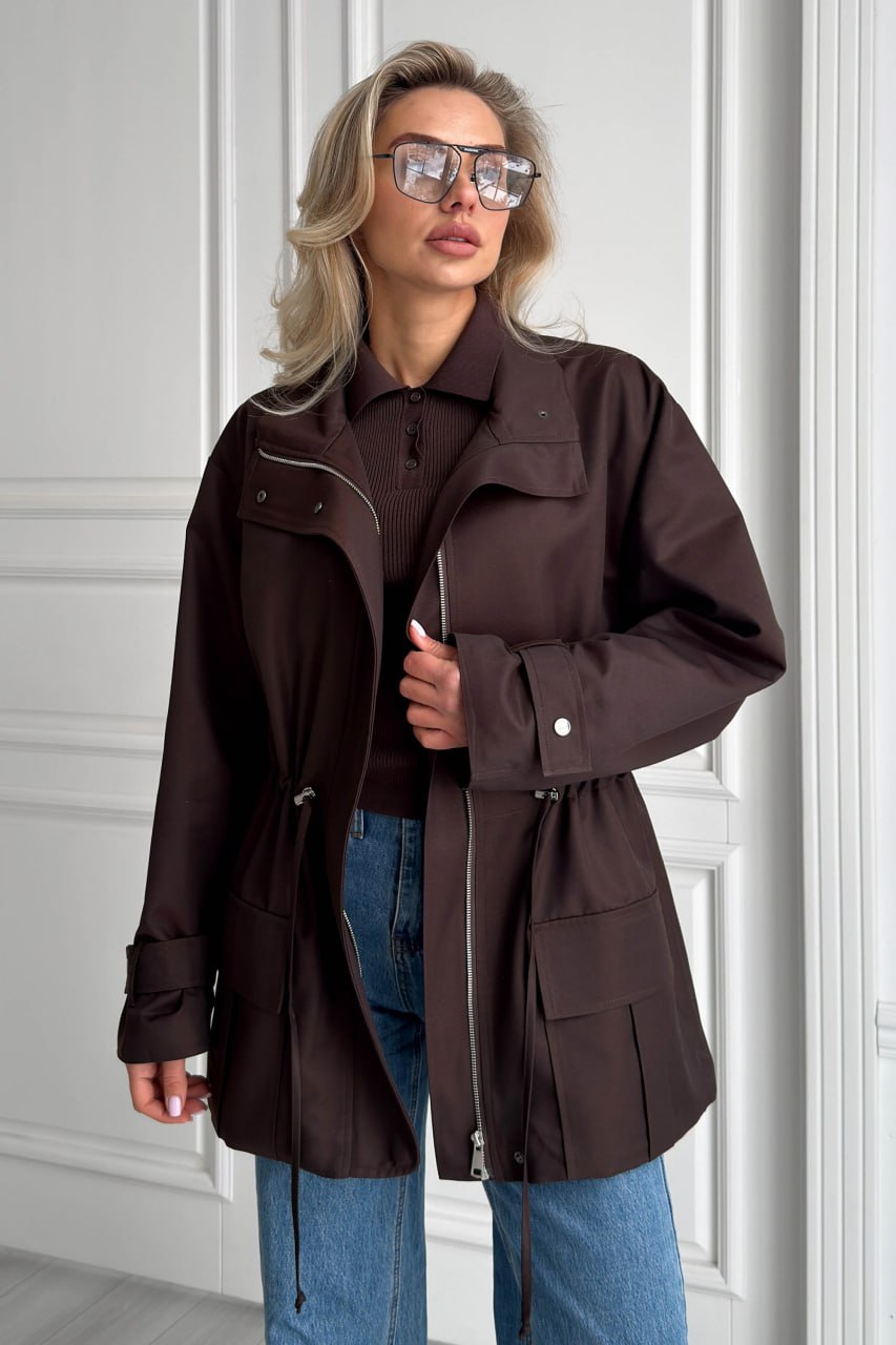 Женская Демисезонная Коричневая Куртка Джуна – Удлиненная с Кулисками на Талии