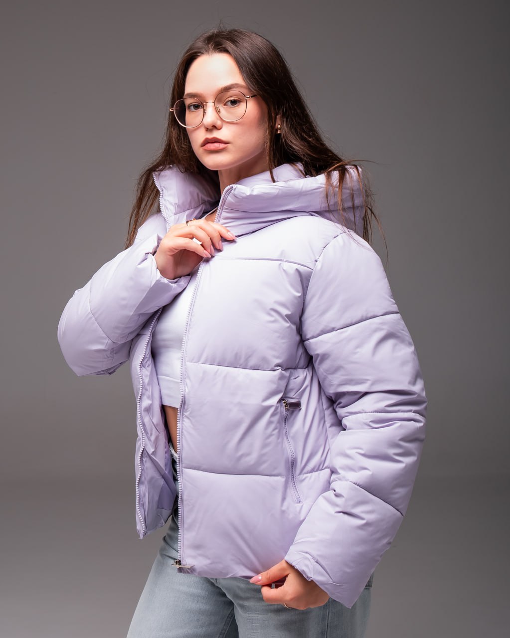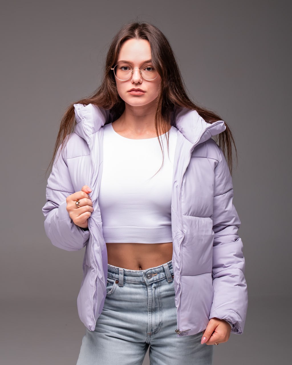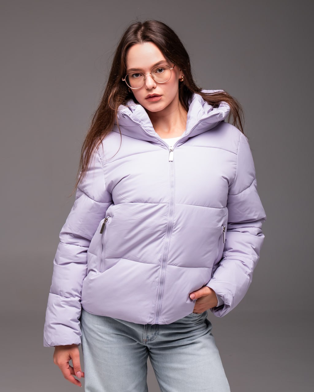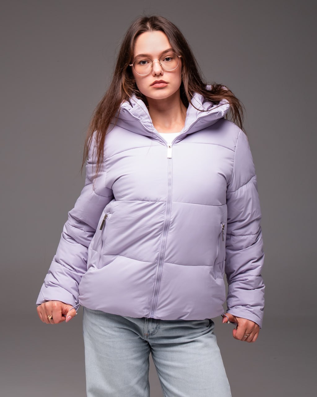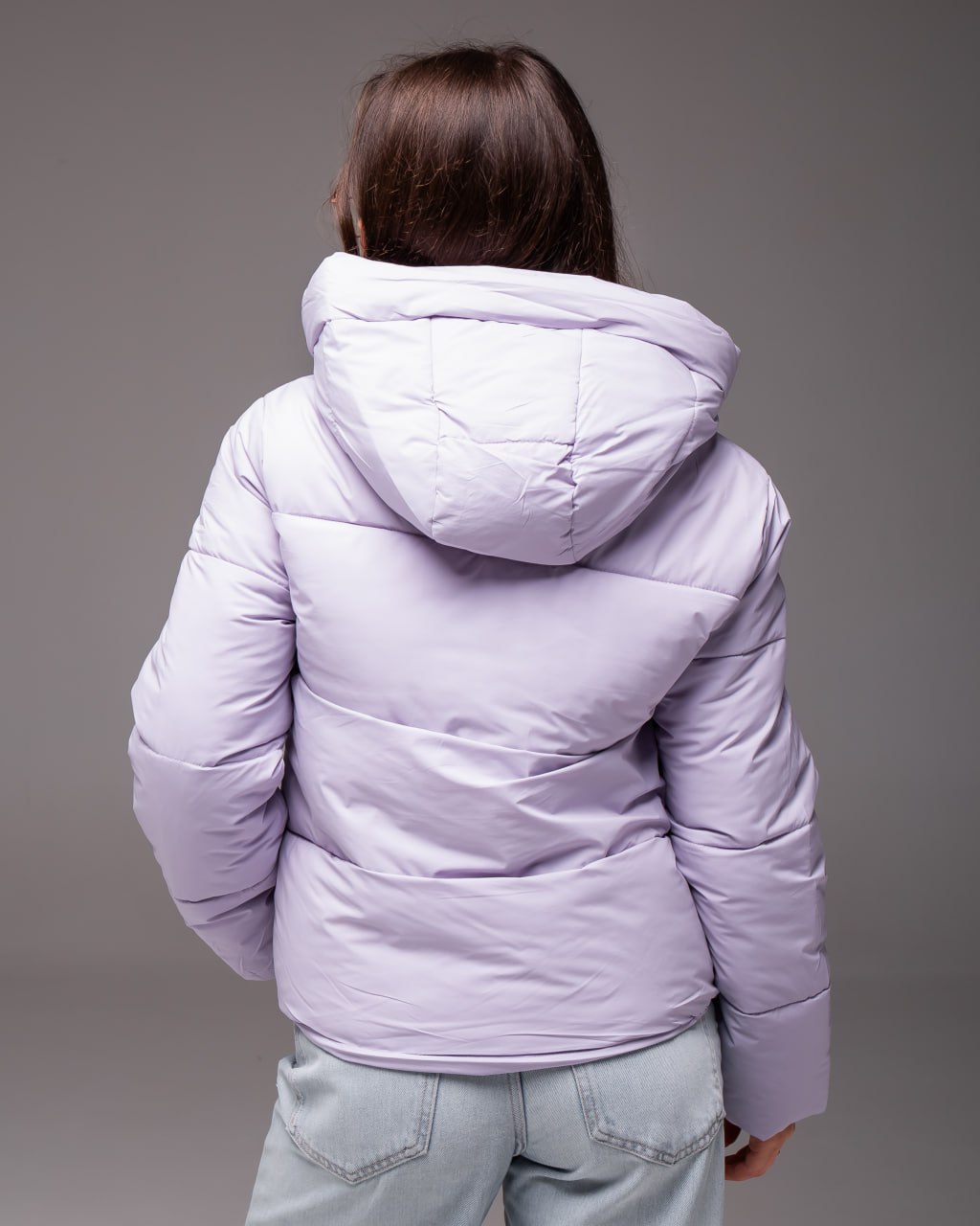 Женская Демисезонная Стеганая Лавандовая Куртка с Капюшоном