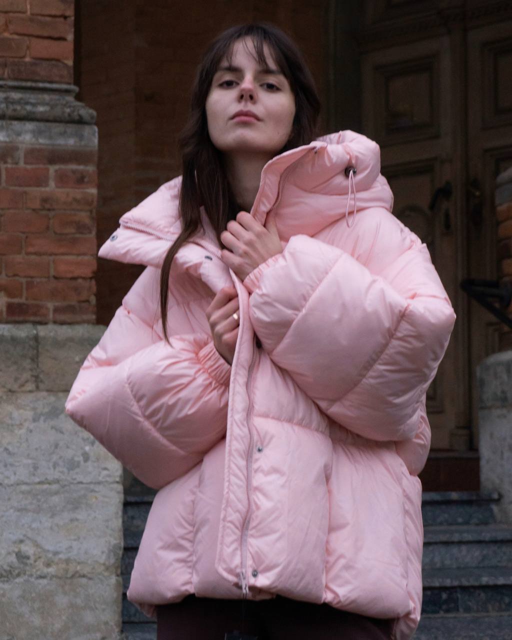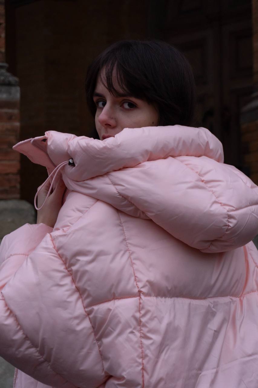 Женская Объемная Зимняя Розовая Куртка Пуховик Дутик
