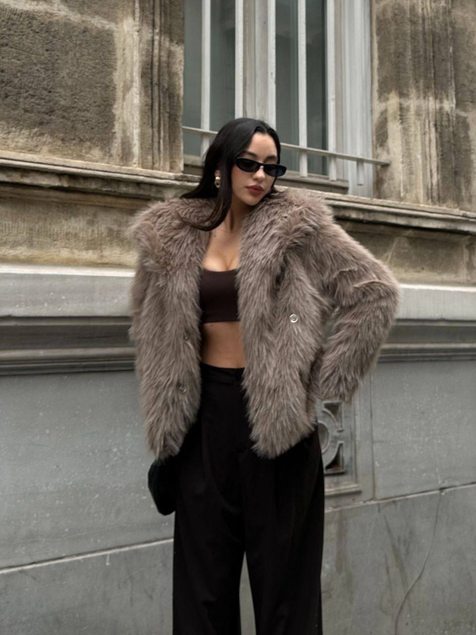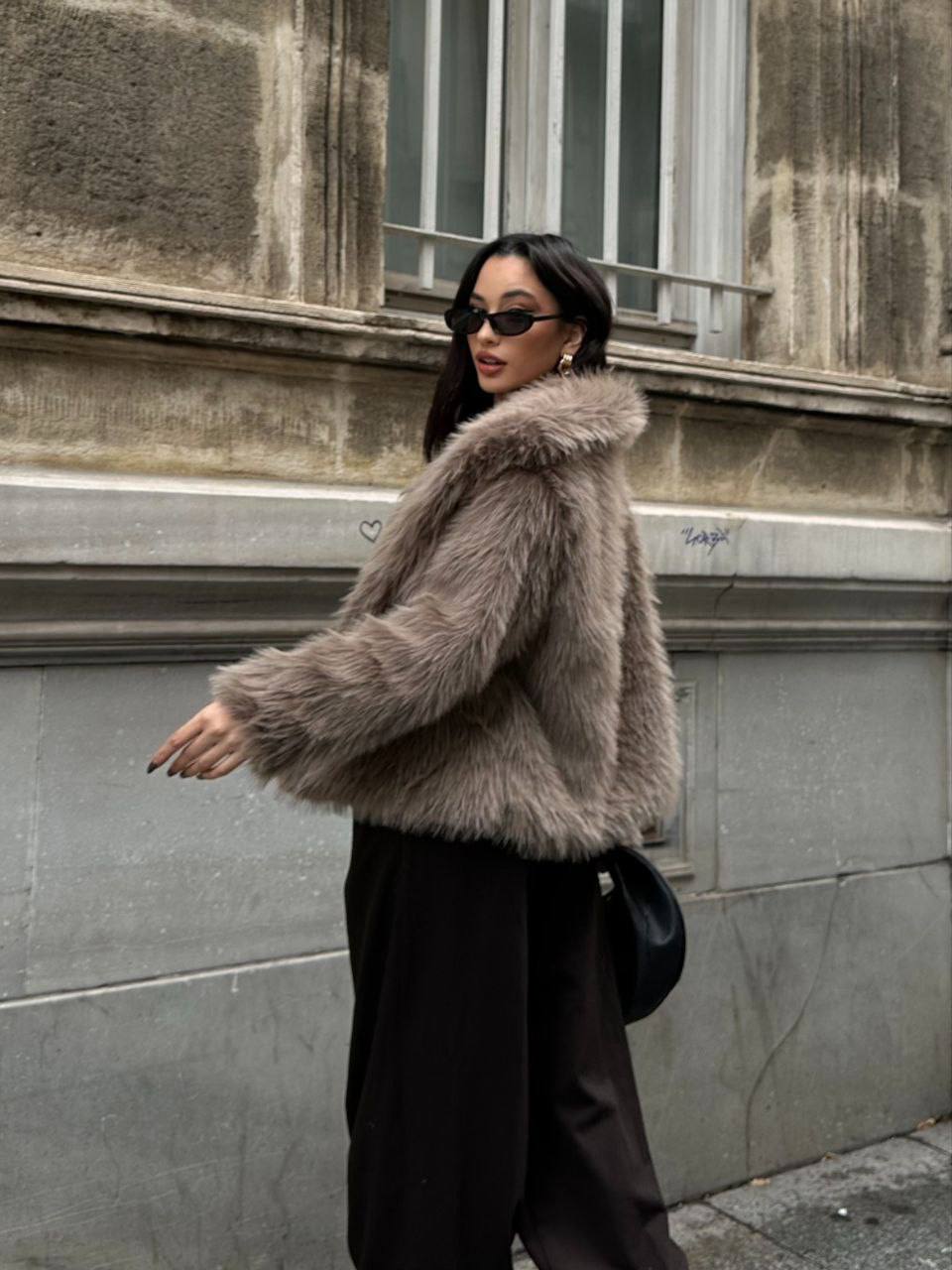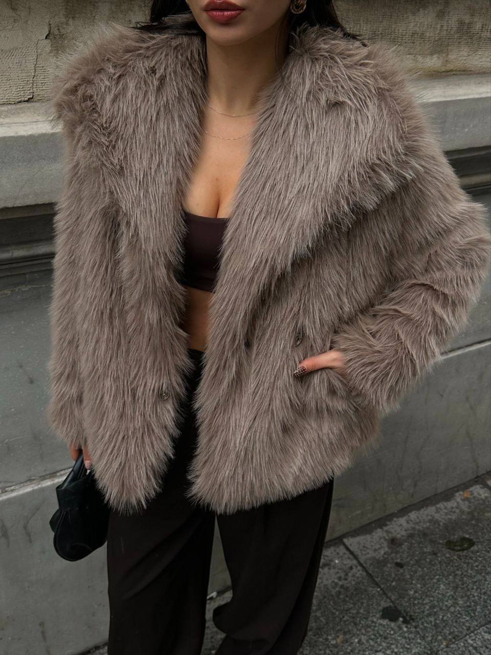 Женская Шуба Мокко на Кнопках с Объемным Воротником