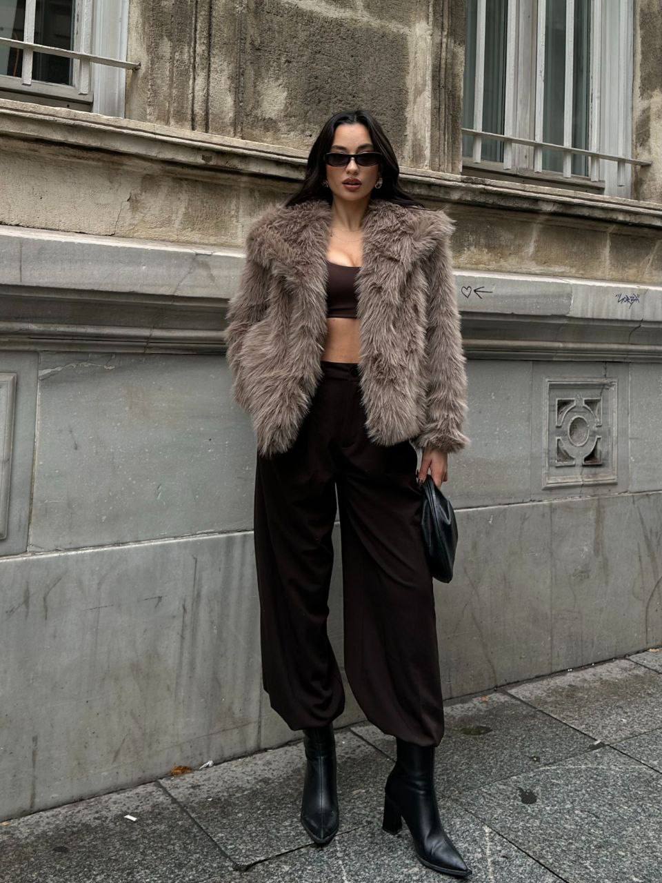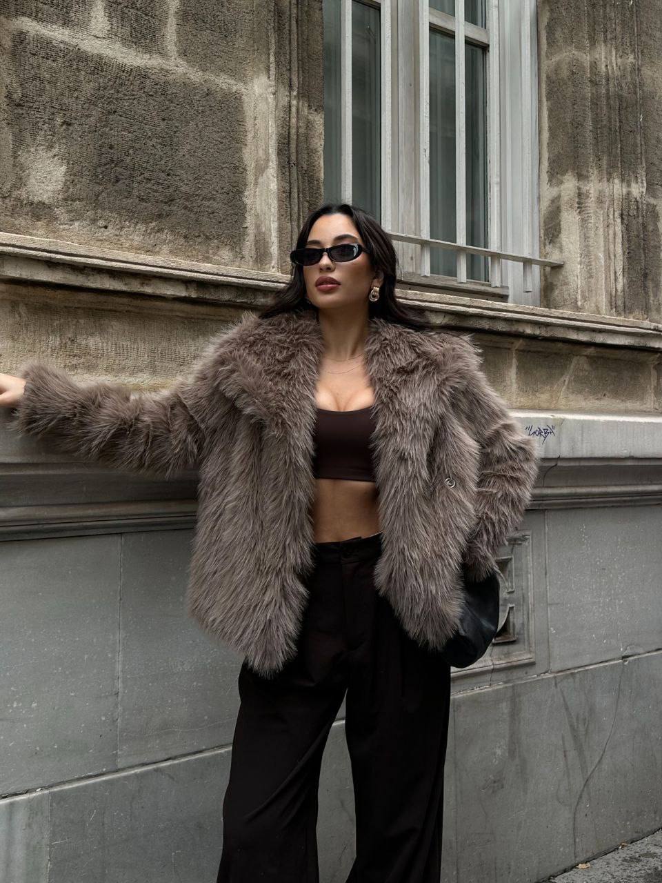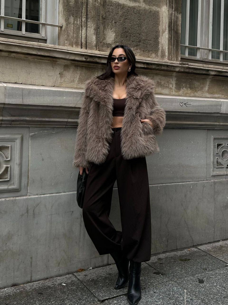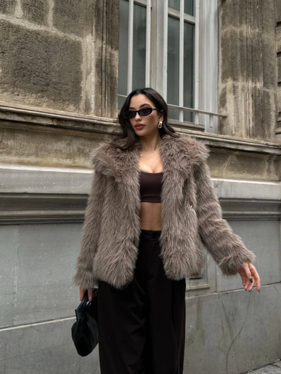 Женская Шуба Мокко на Кнопках с Объемным Воротником