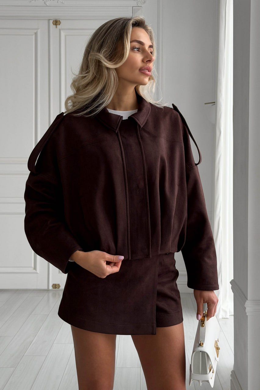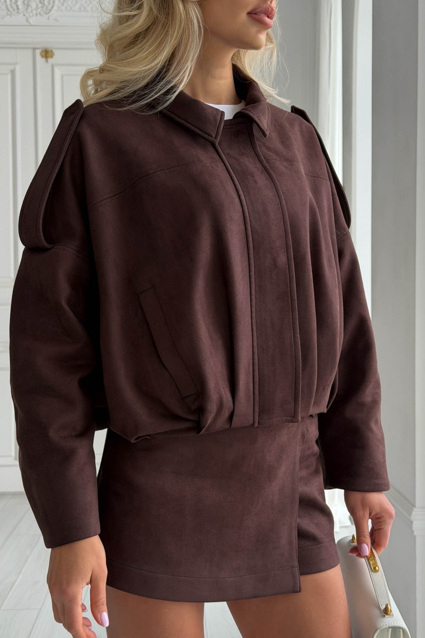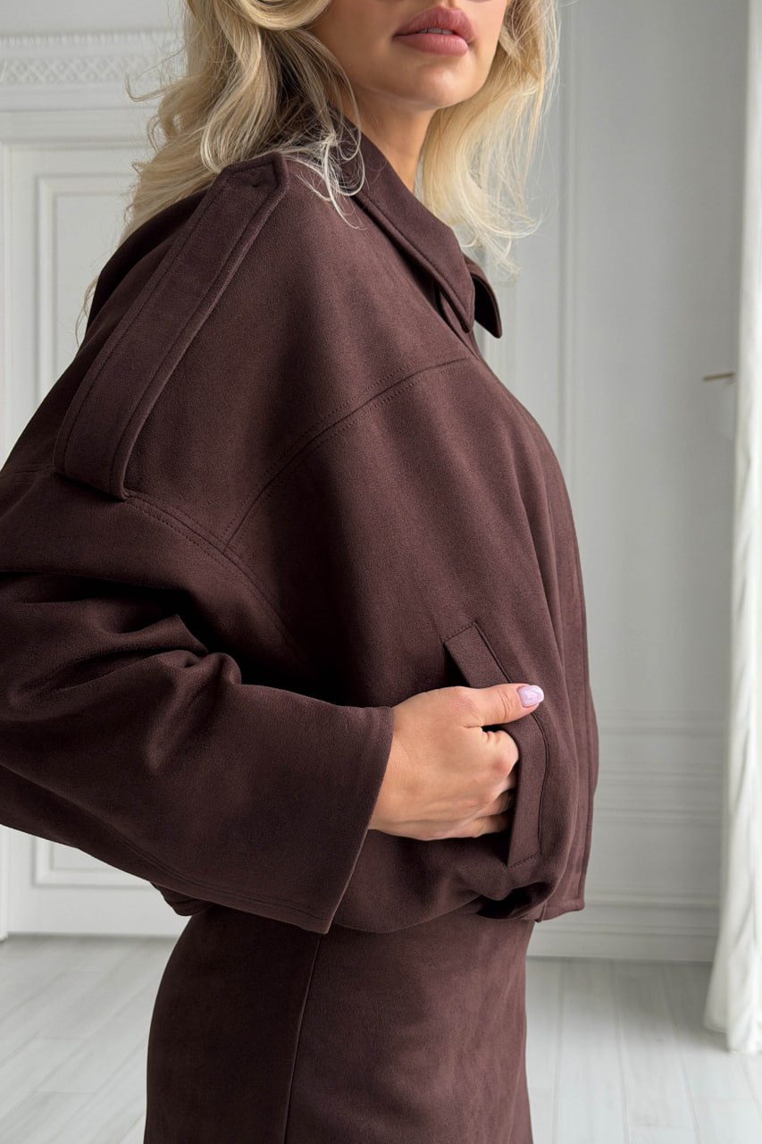 Женский Замшевый Коричневый Бомбер Свободного Кроя – Легкая Демисезонная Куртка