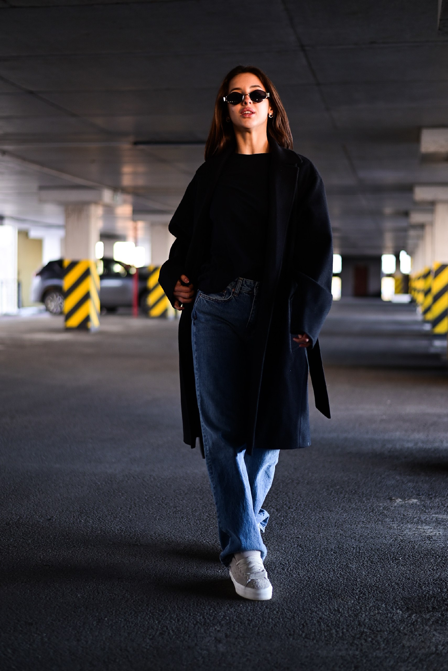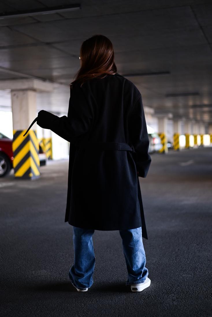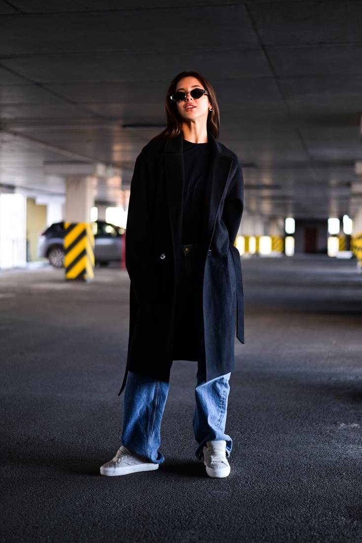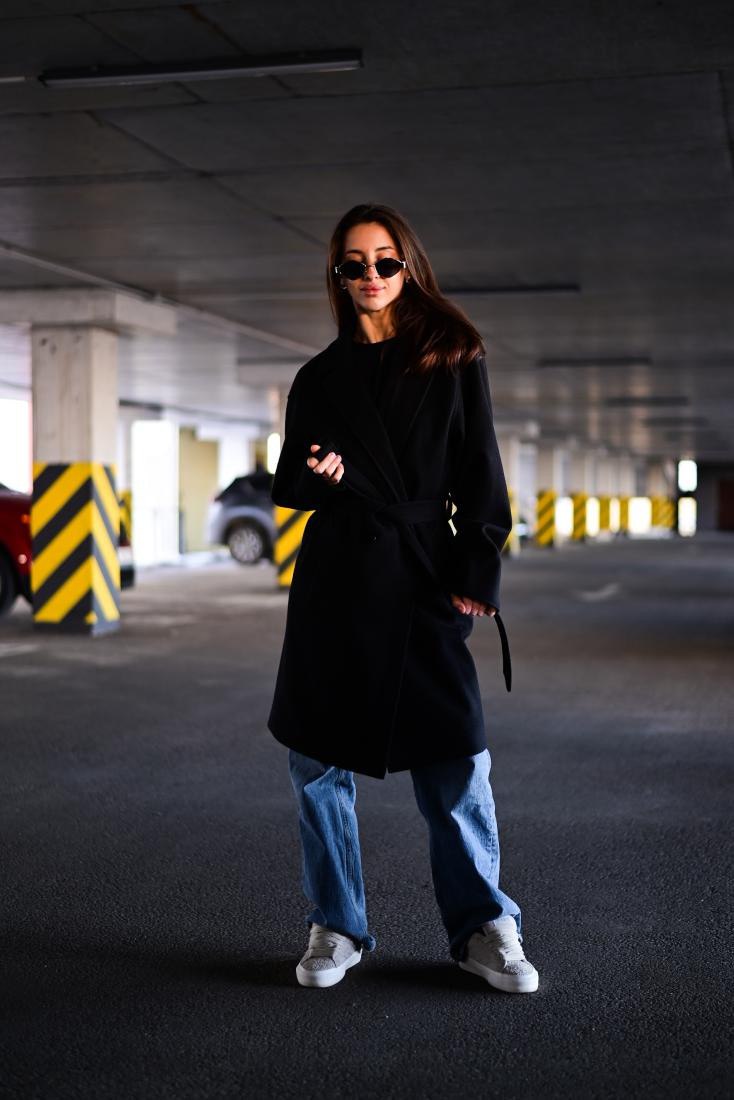Женское Классическое Кашемировое Черное Пальто с Поясом