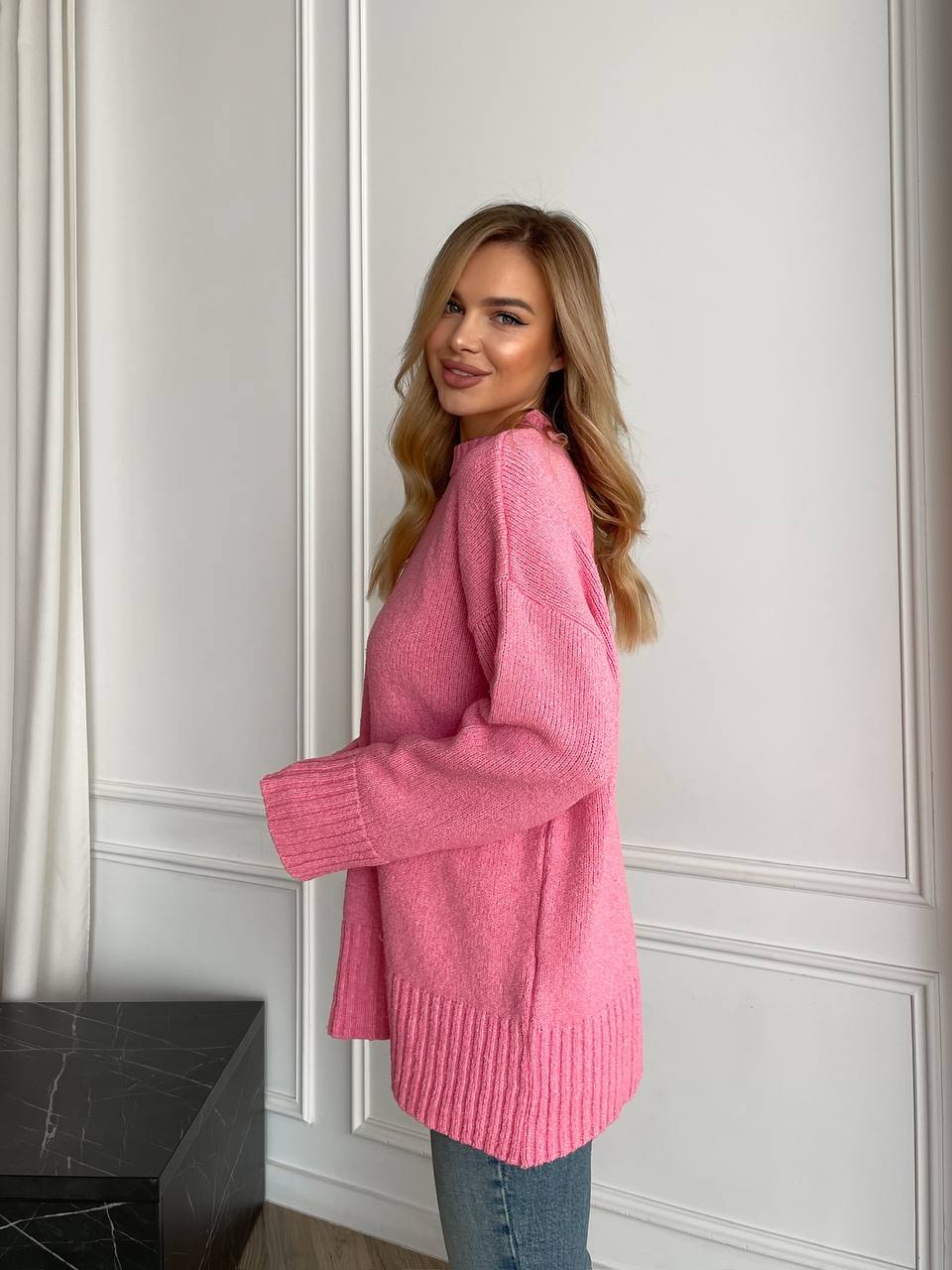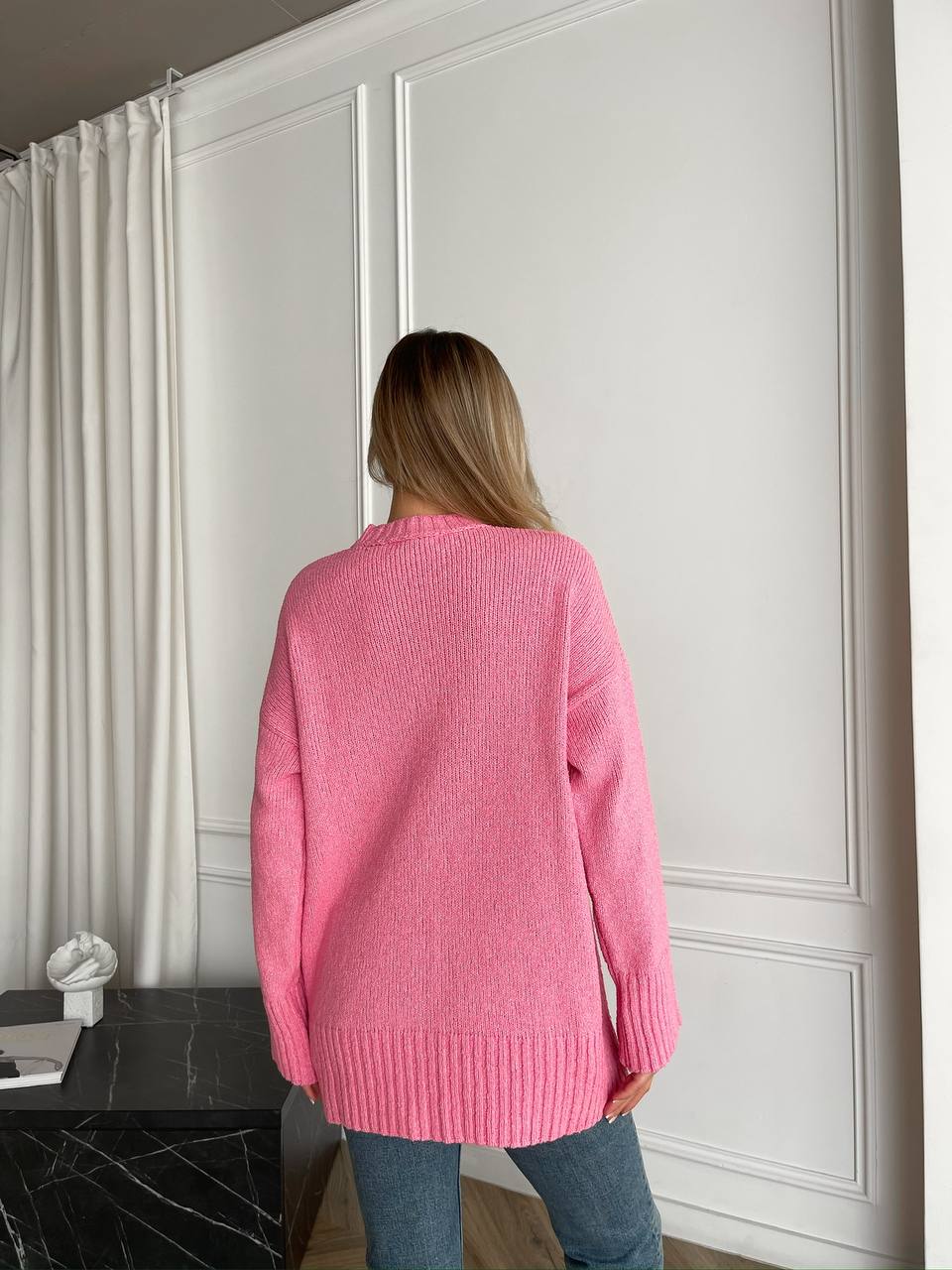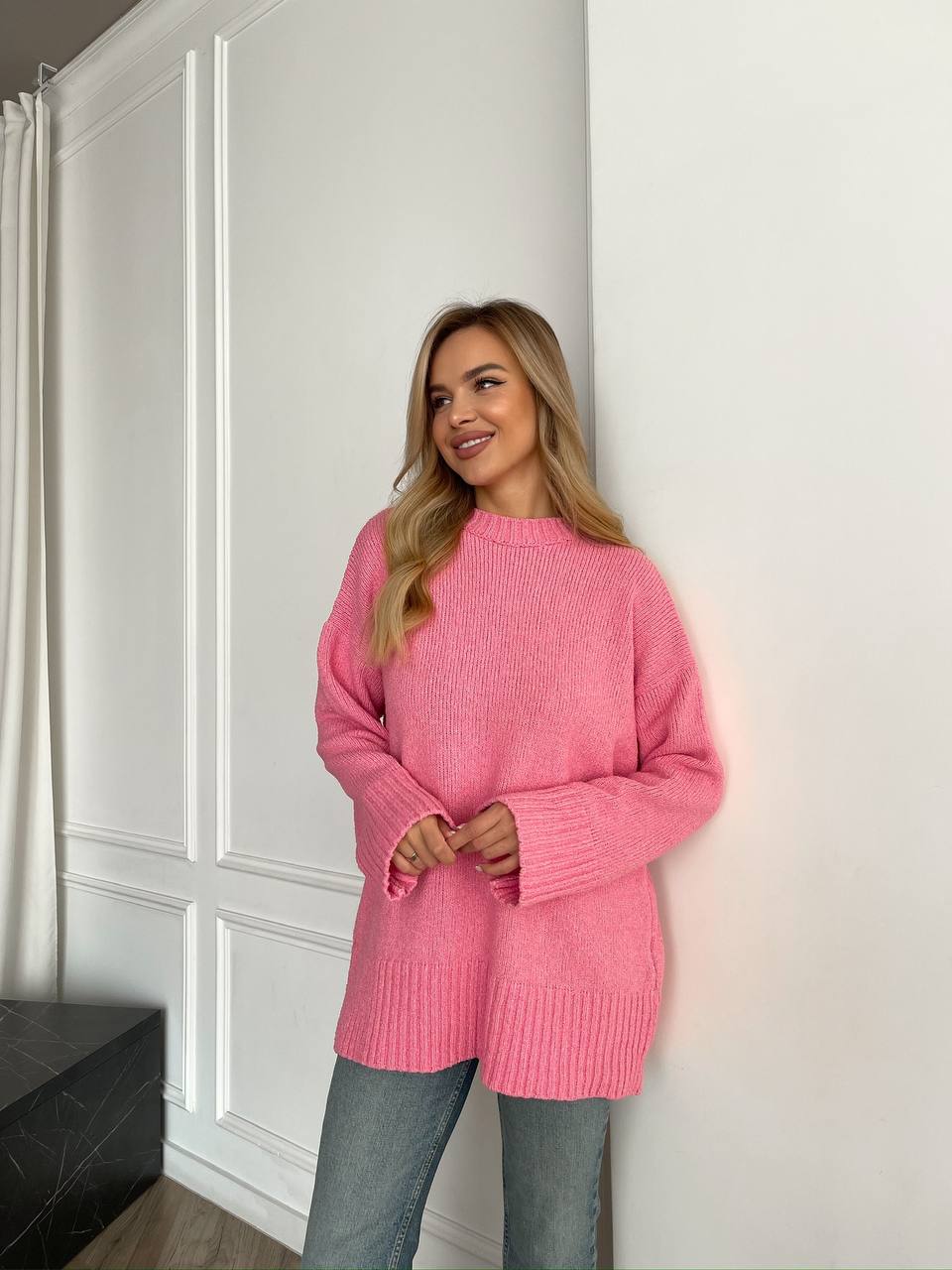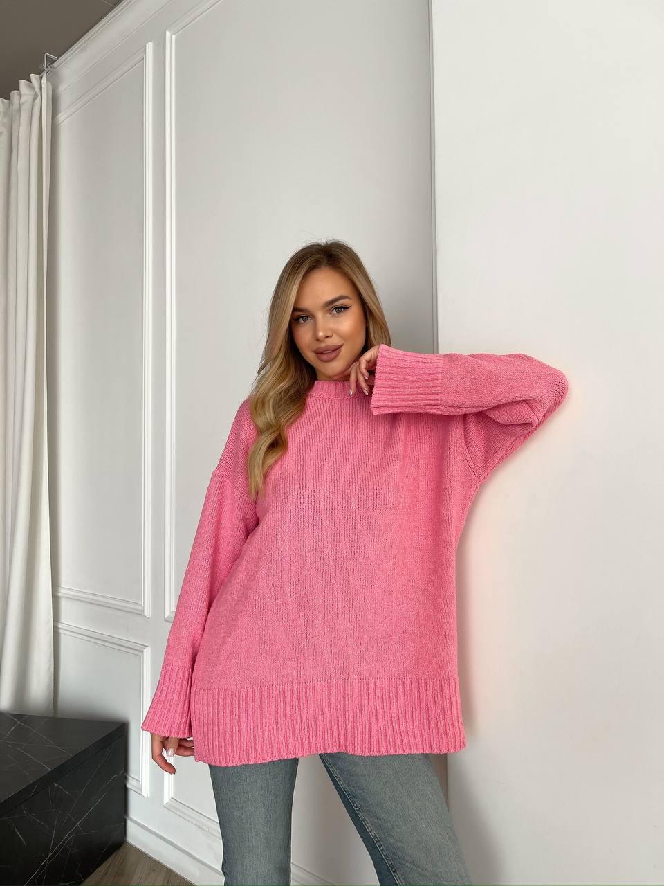 Женский Базовый Розовый Свитер – Удлиненный Оверсайз