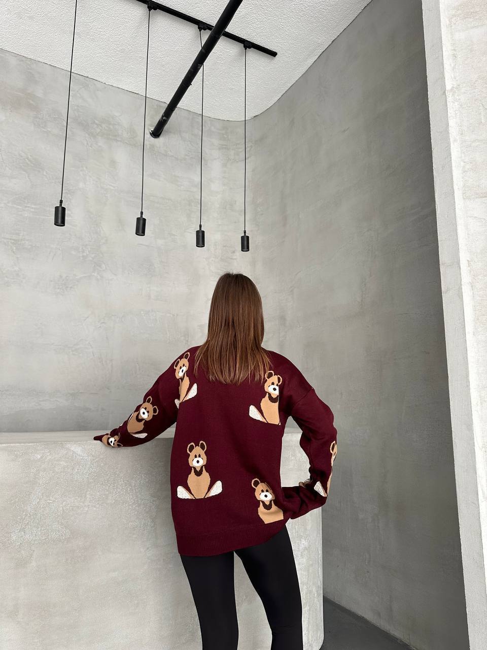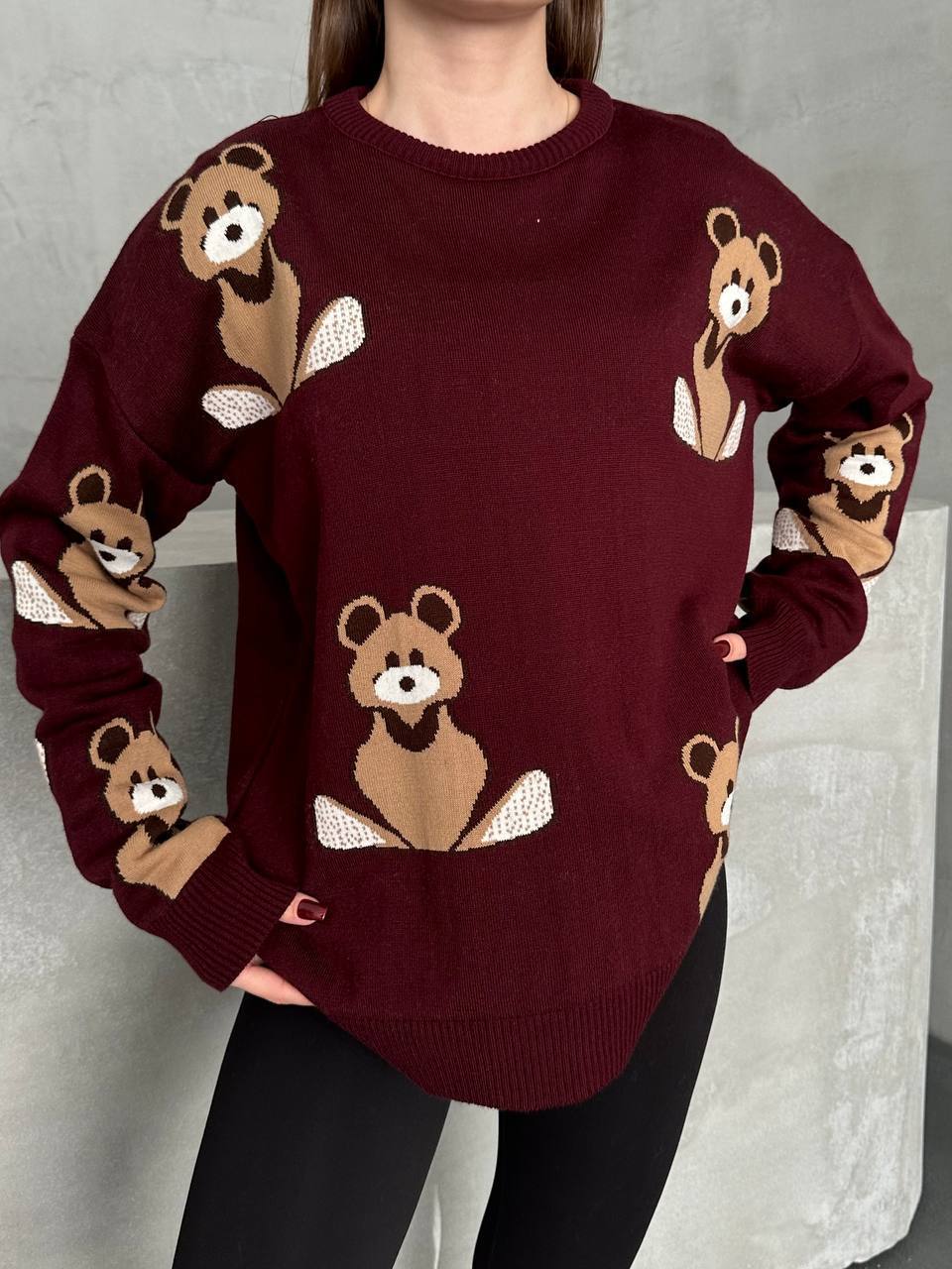 Главная Магазин Каталог Женское Свитера Женский Бордовый Свитер Оверсайз с Мишками