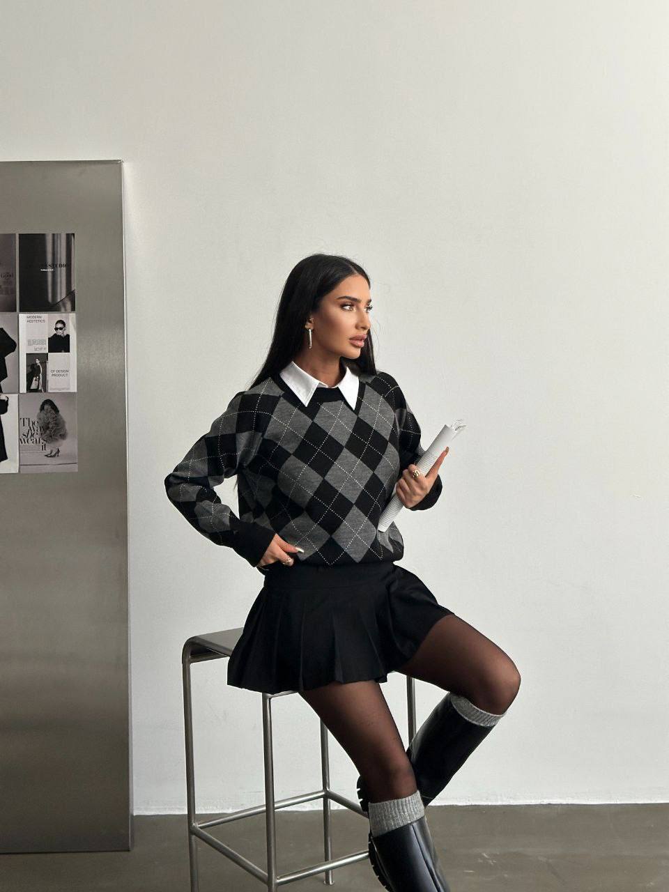 Женский Черный Свитер Оверсайз с Ромбами (Копировать) 1,499.00 ₴