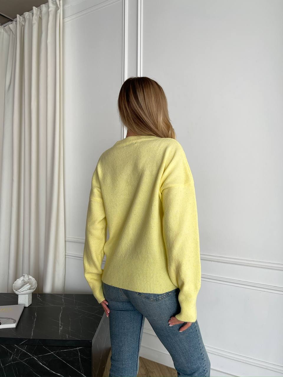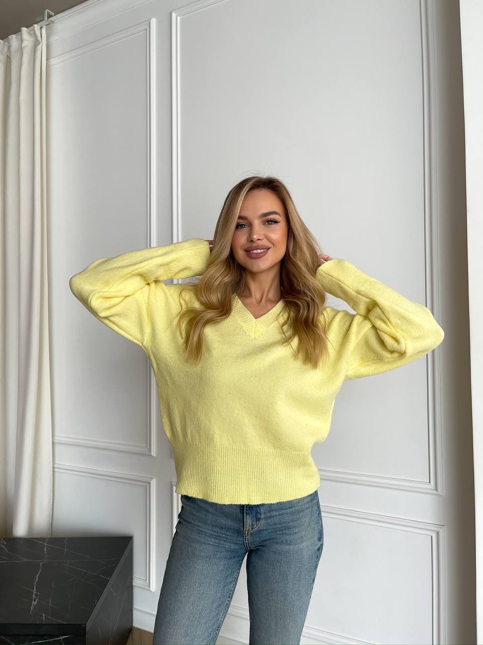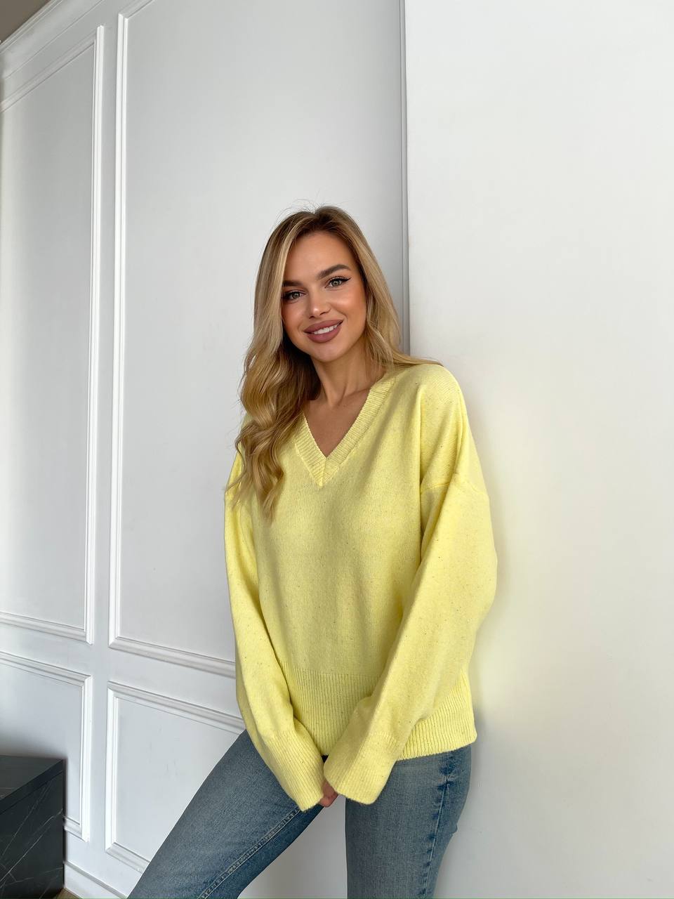 Женский Свободный Блестящий Желтый Свитер с V-вырезом