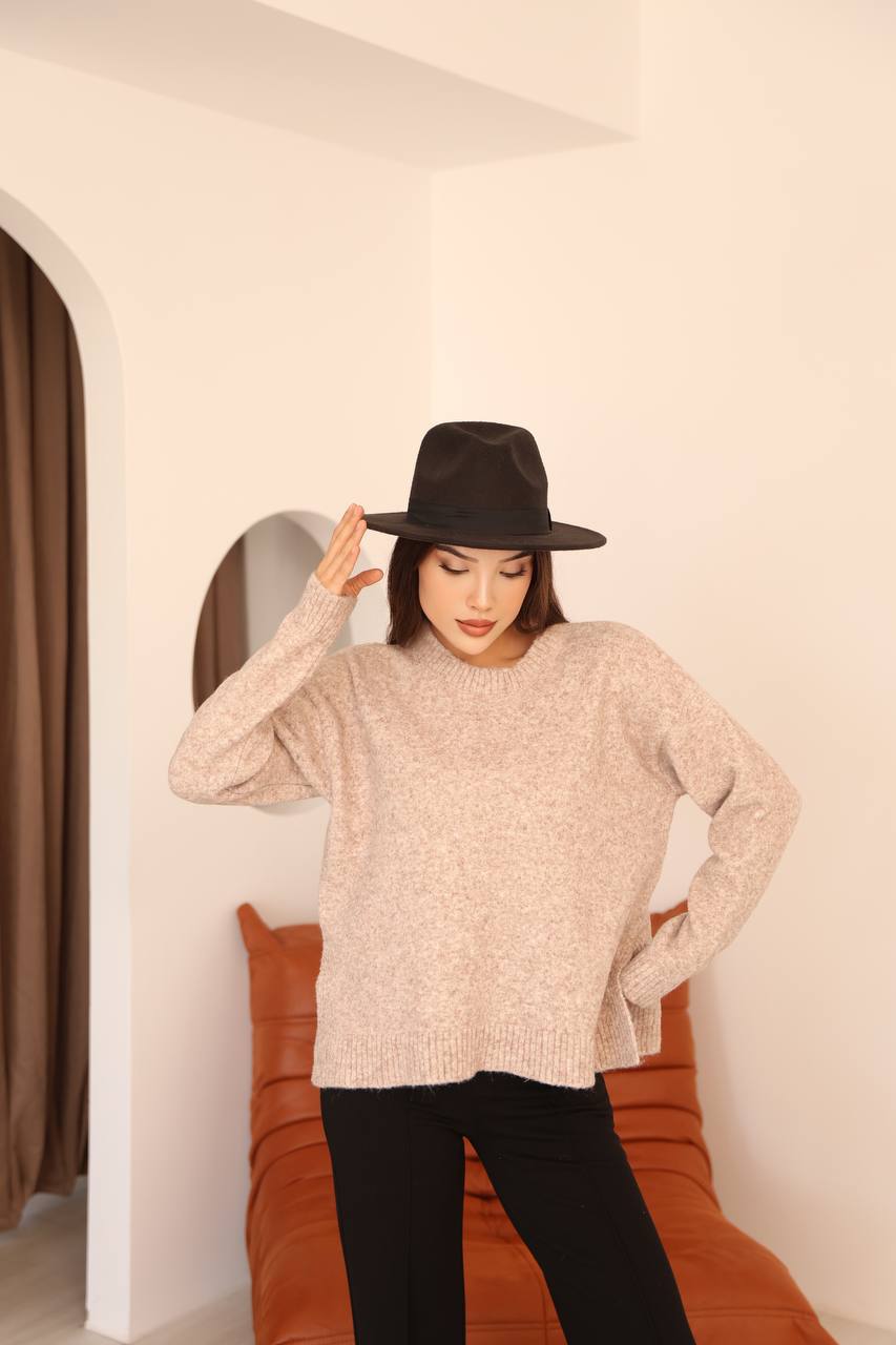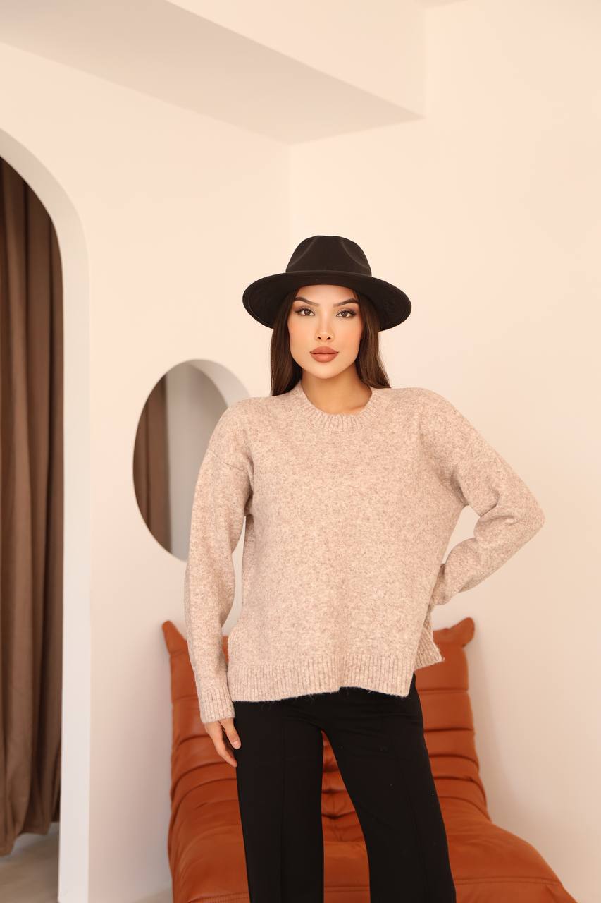 Женский Теплый Базовый Свитер Мокко Оверсайз с Разрезами по Бокам