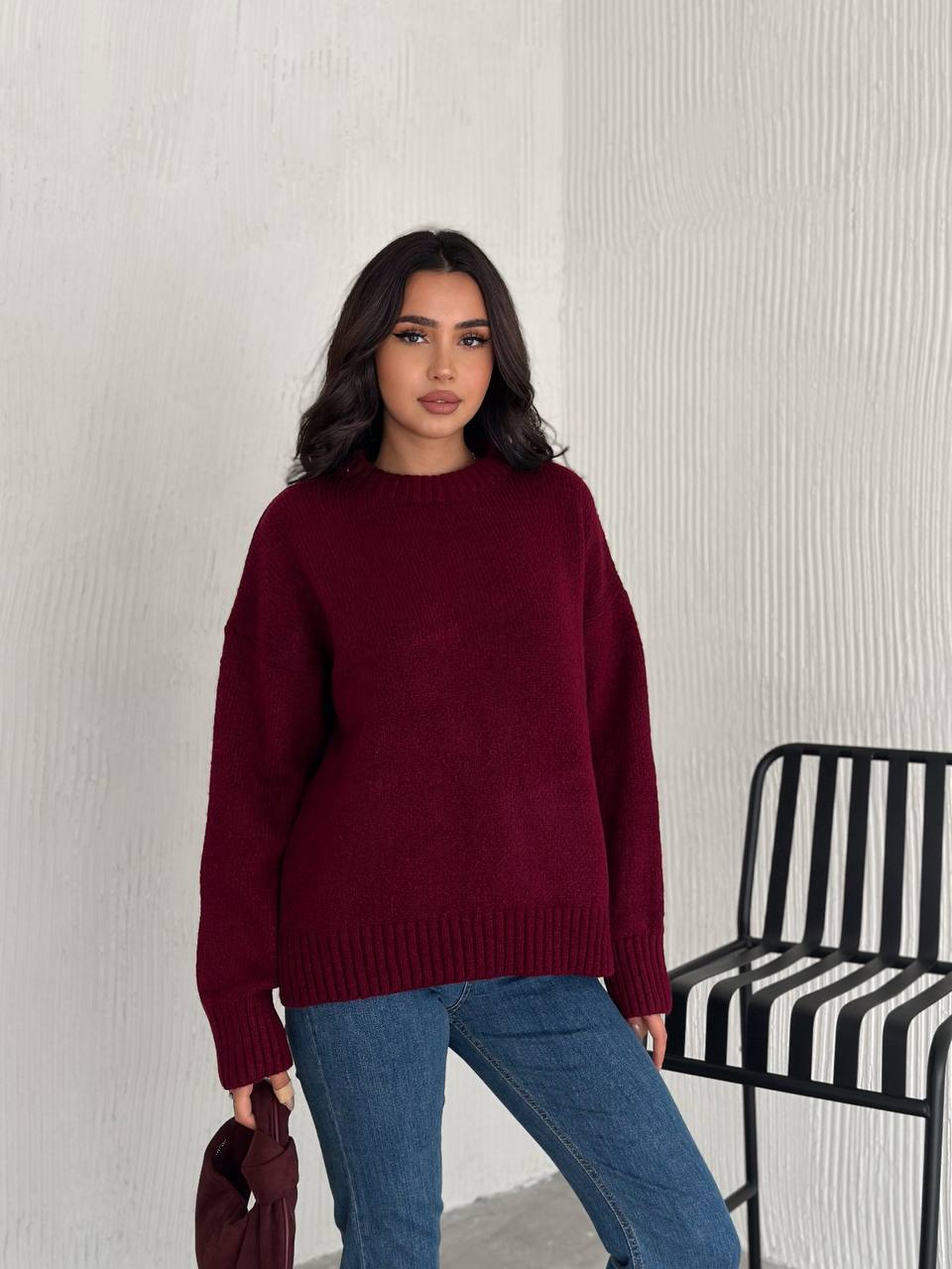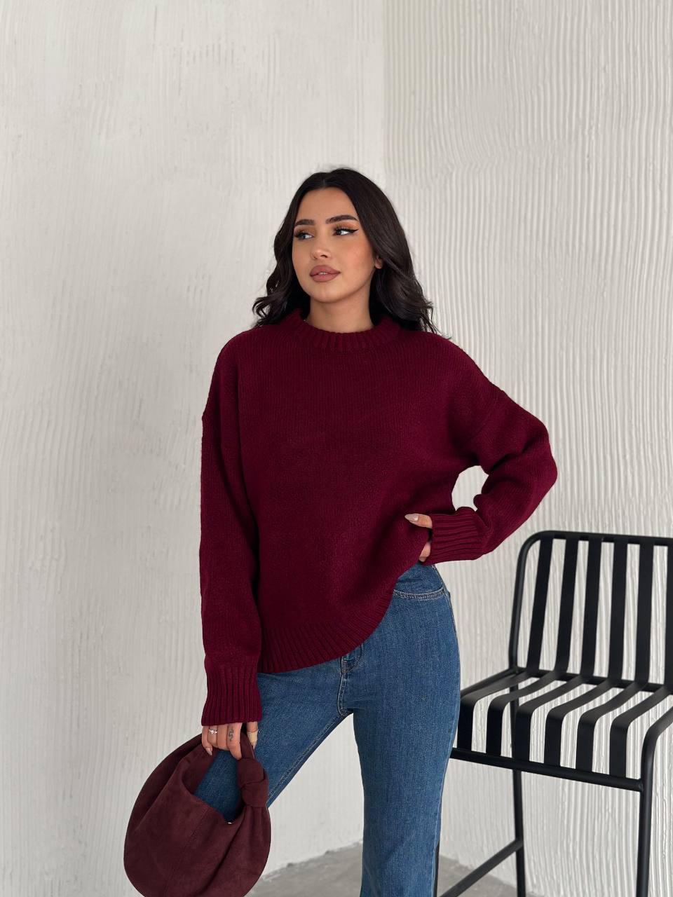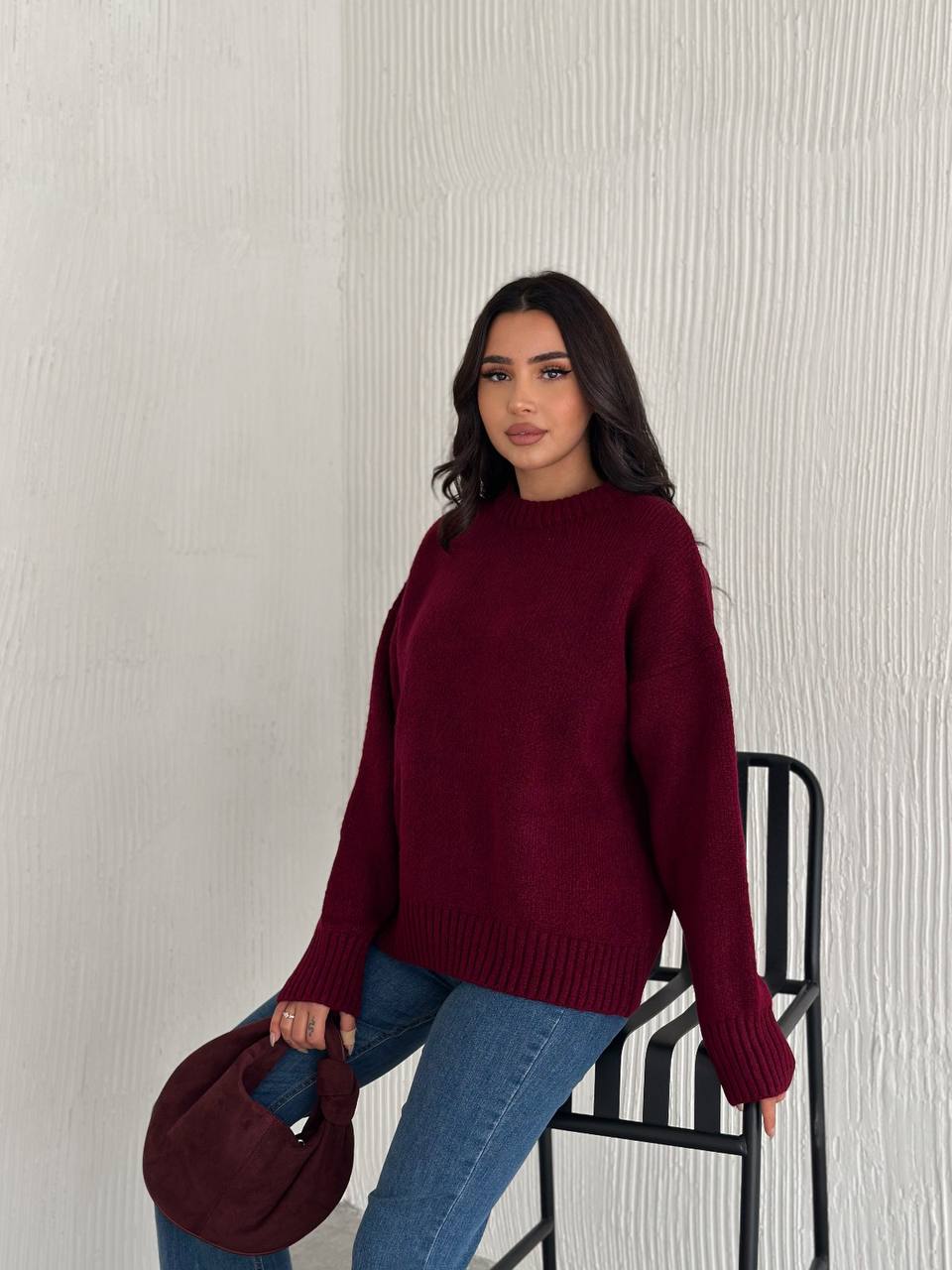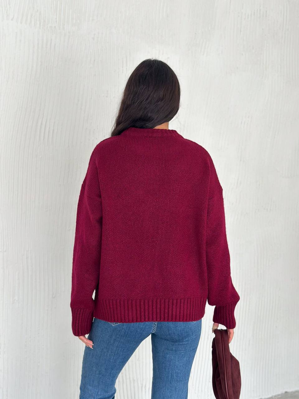 Женский Теплый Мягкий Бордовый Свитер Оверсайз – Трикотажный с Заниженной Линией Плеча