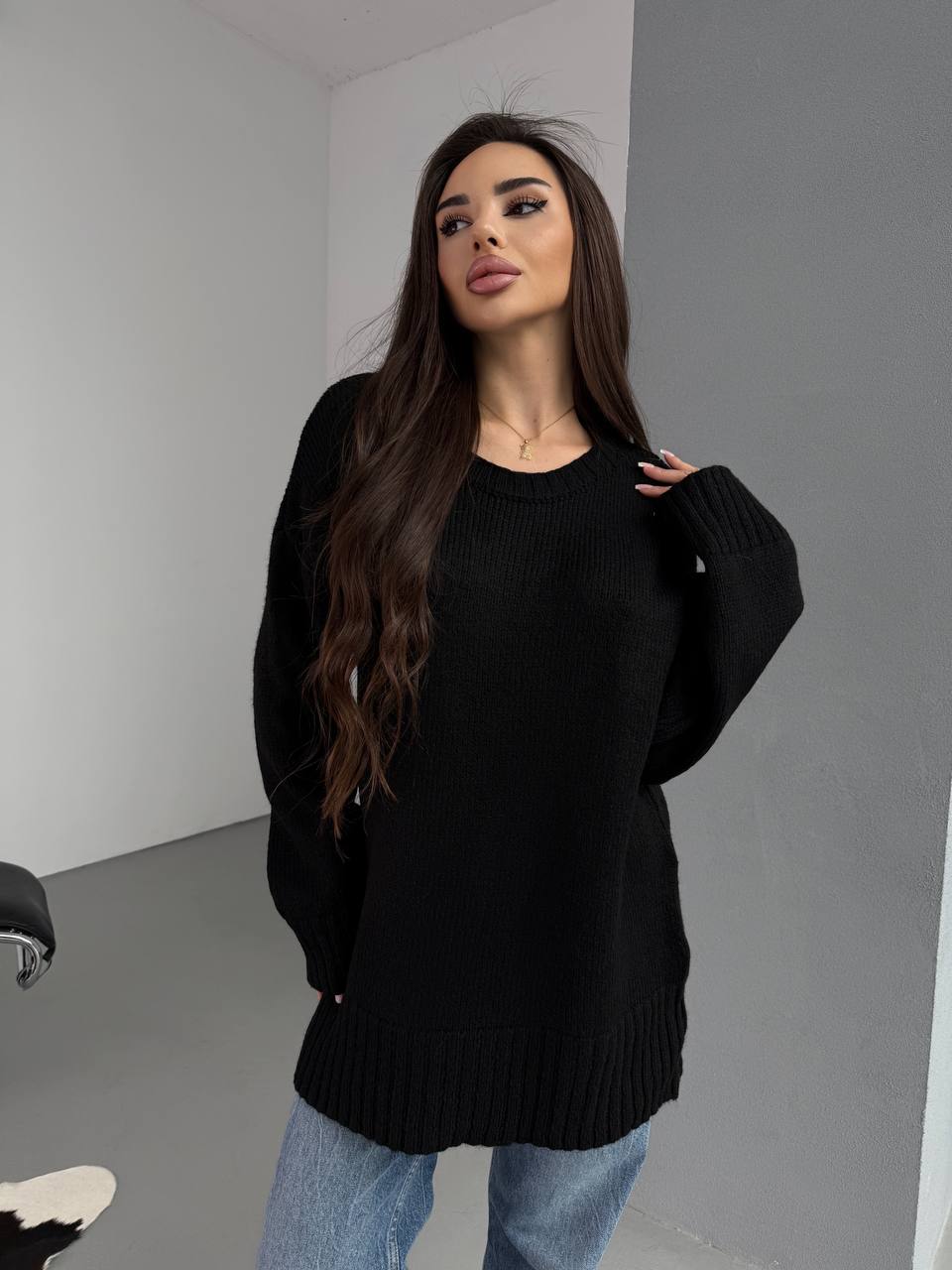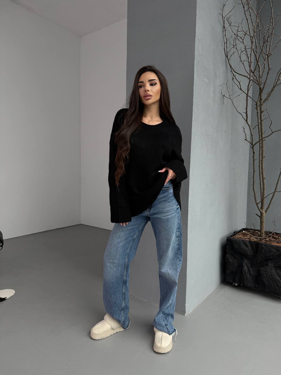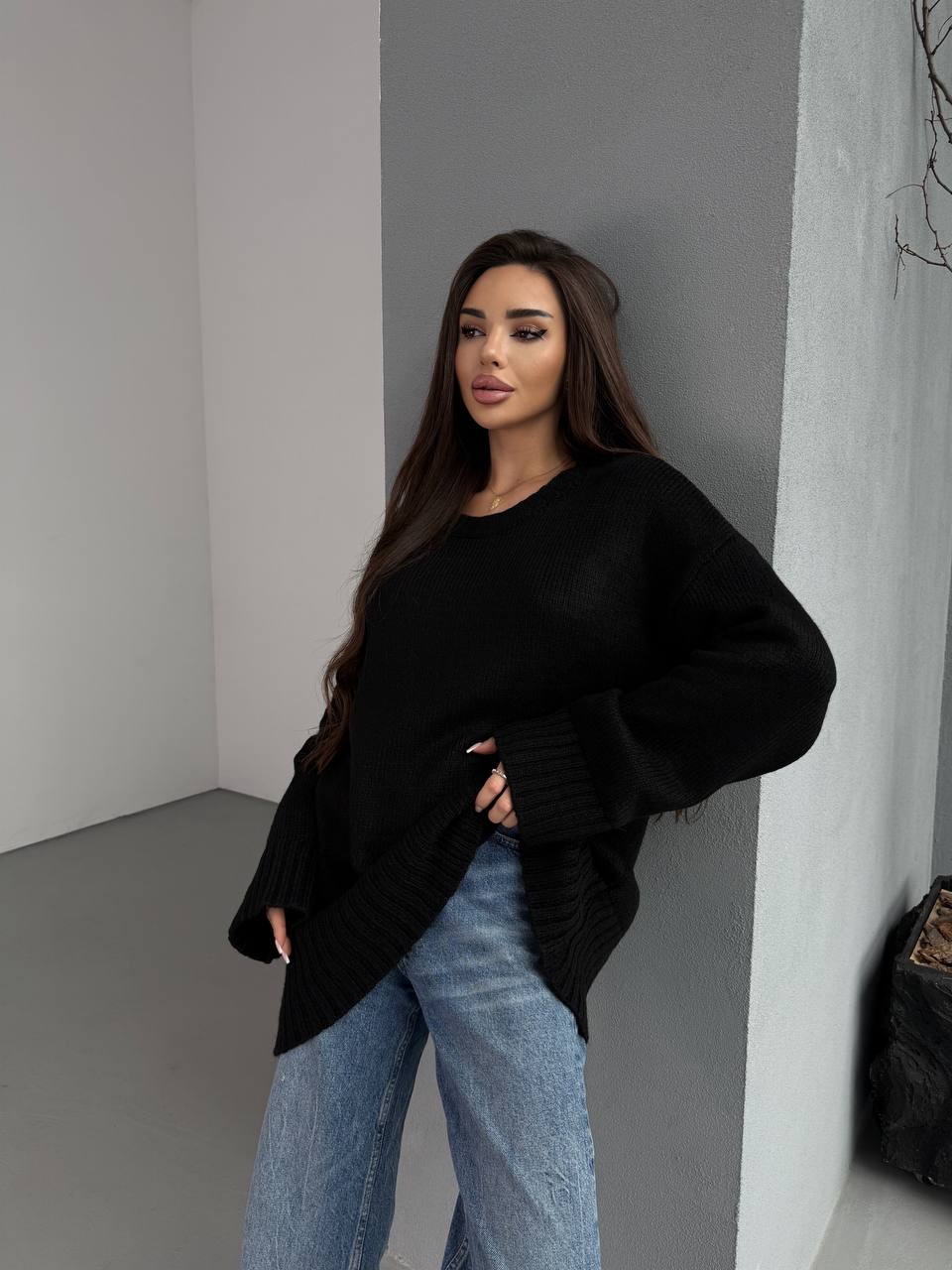Женский Теплый Мягкий Черный Свитер Оверсайз