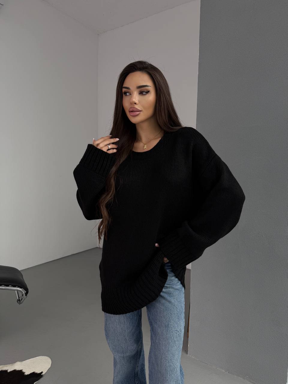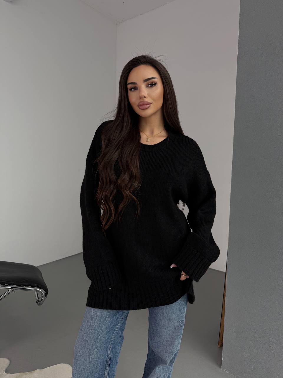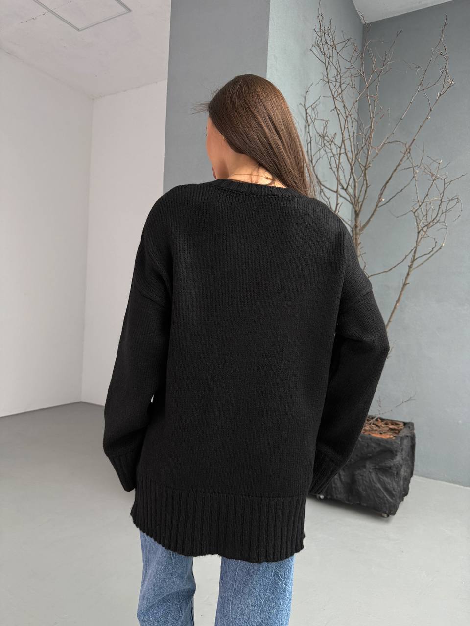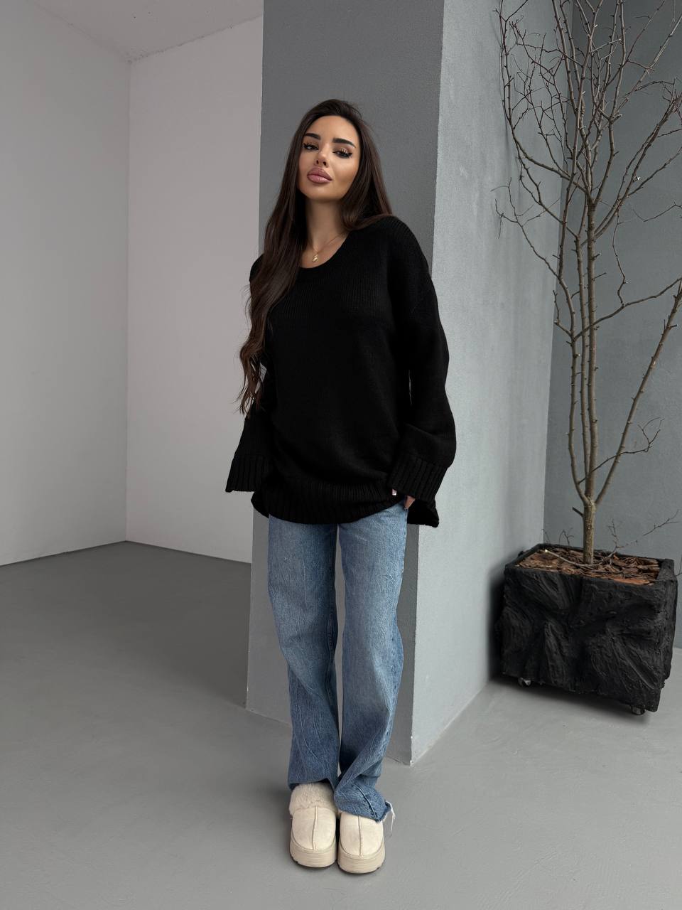 Женский Теплый Мягкий Черный Свитер Оверсайз