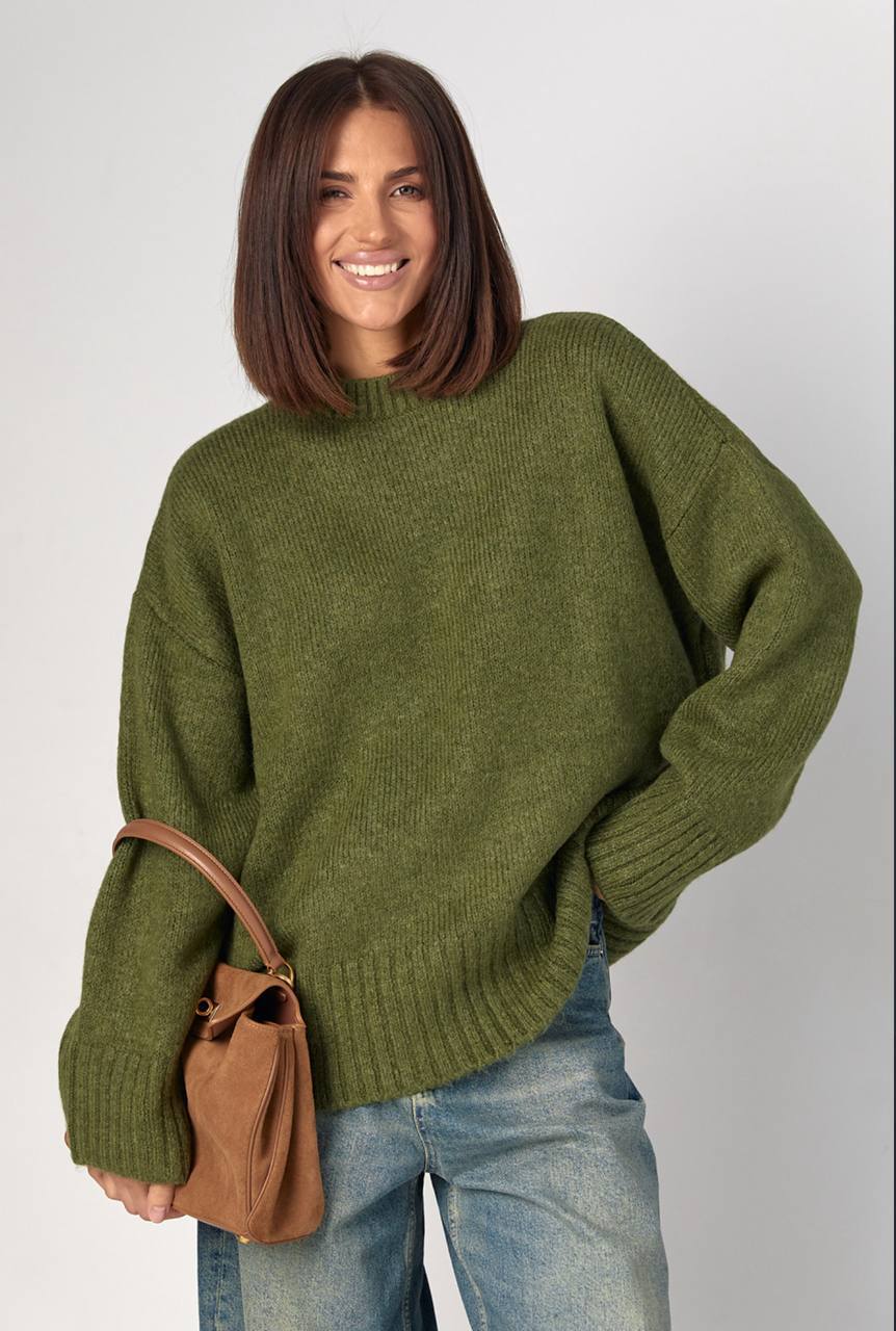 Женский Теплый Объемный Зеленый Свитер Оверсайз