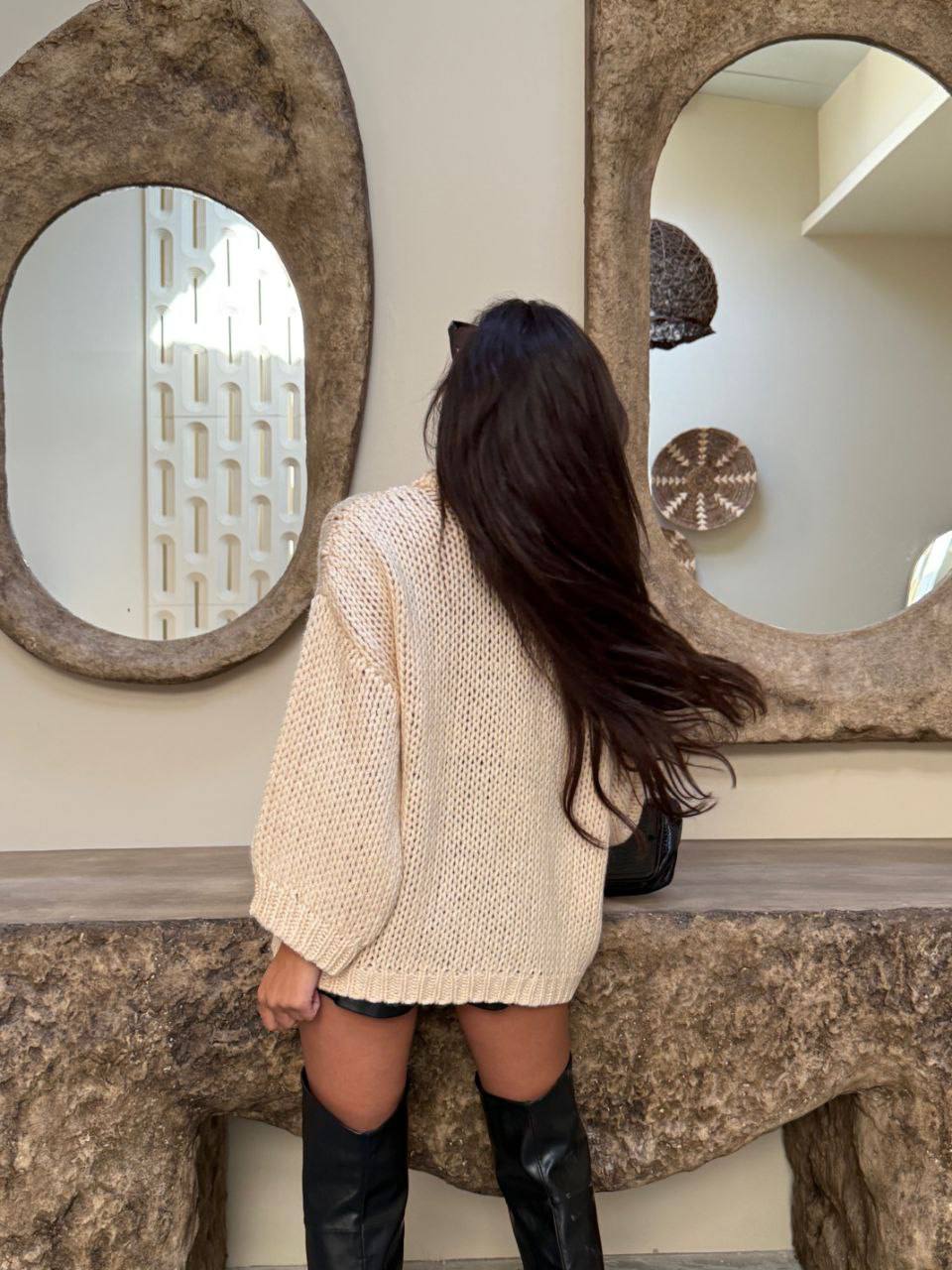 Женский Теплый Вязаный Бежевый Свитер Свободного Кроя