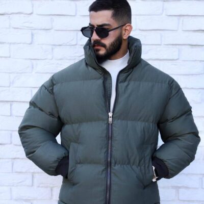 Чоловіча зимова зелена куртка – Дутий пуховик з капюшоном.