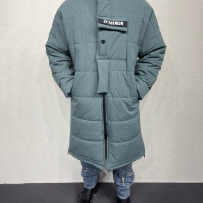 Чоловіча зимова зелена куртка парку подовжена – легка тепла прямого крою з капюшоном.