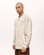 Чоловічий Бежевий Бомбер Оверсайз на Флісі з Вишивкою