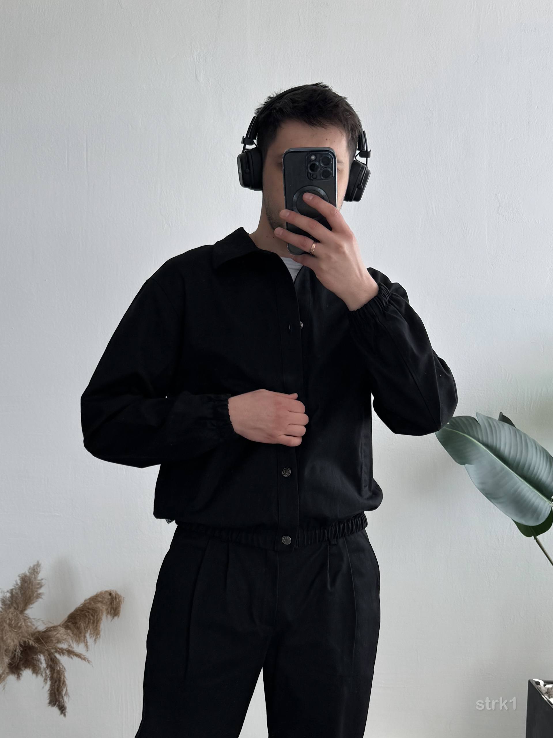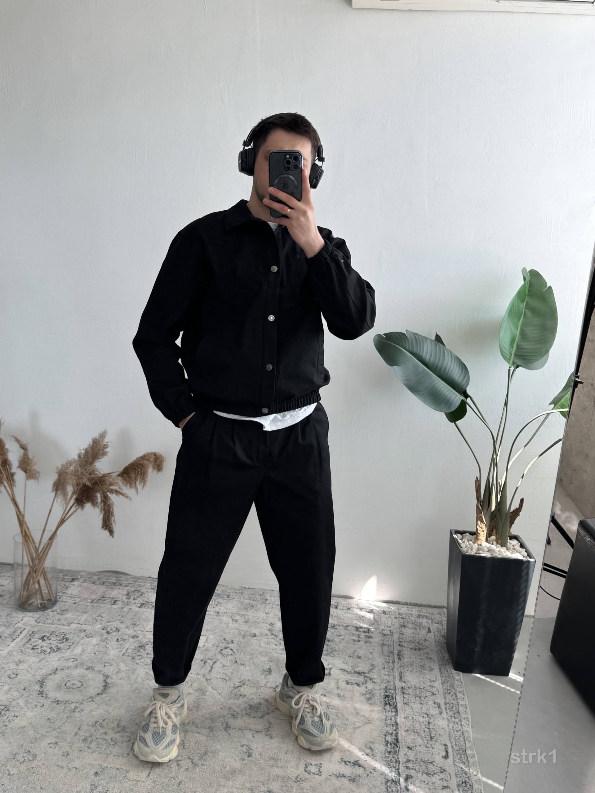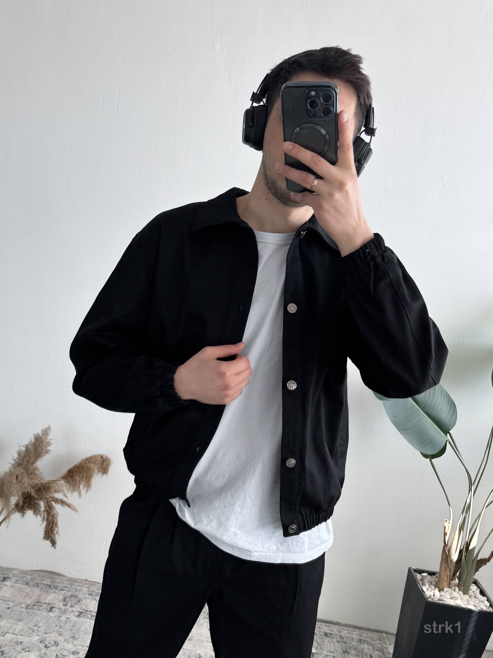 Чоловічий Вільний Джинсовий Чорний Бомбер з Металевими Ґудзиками