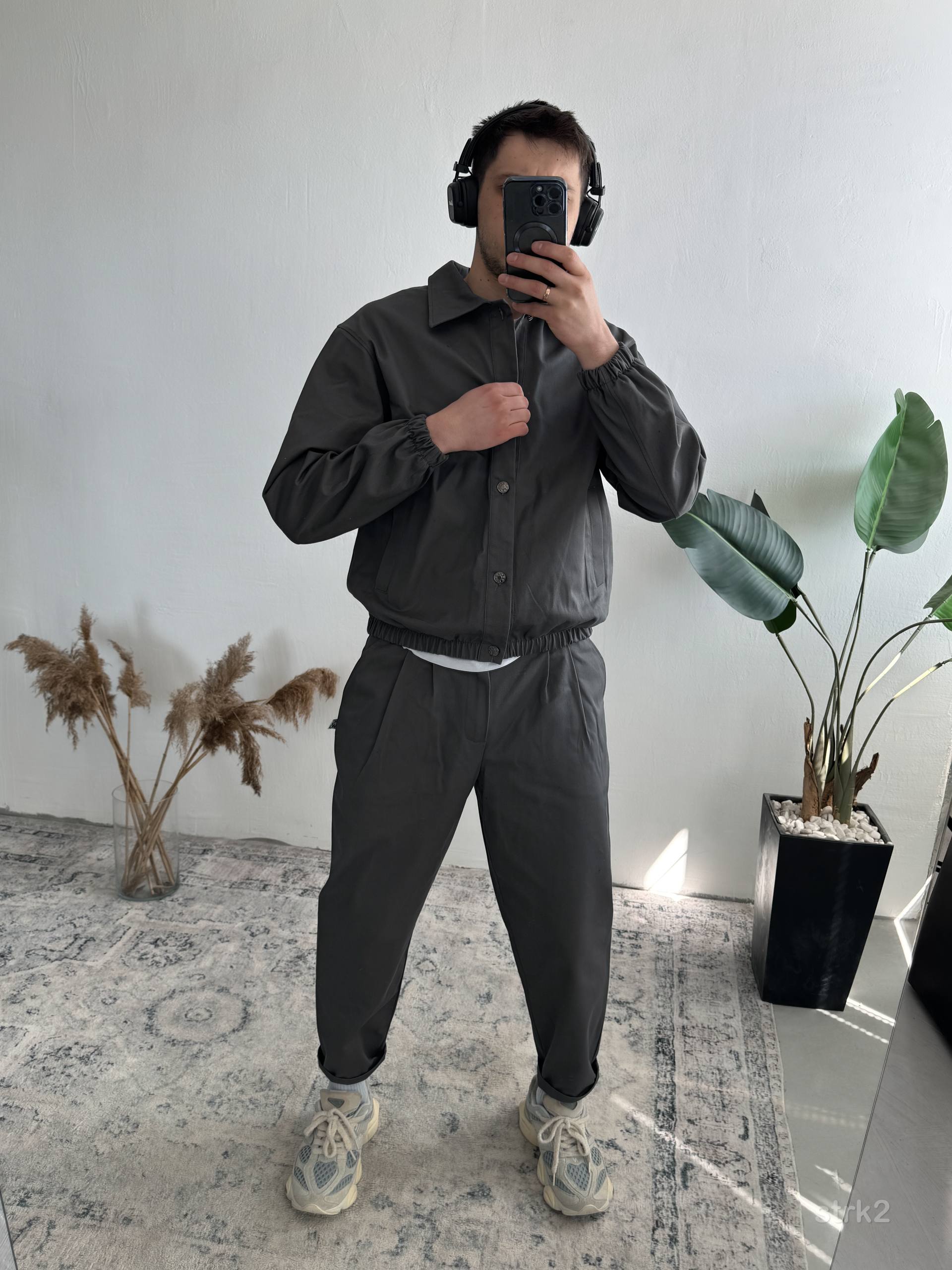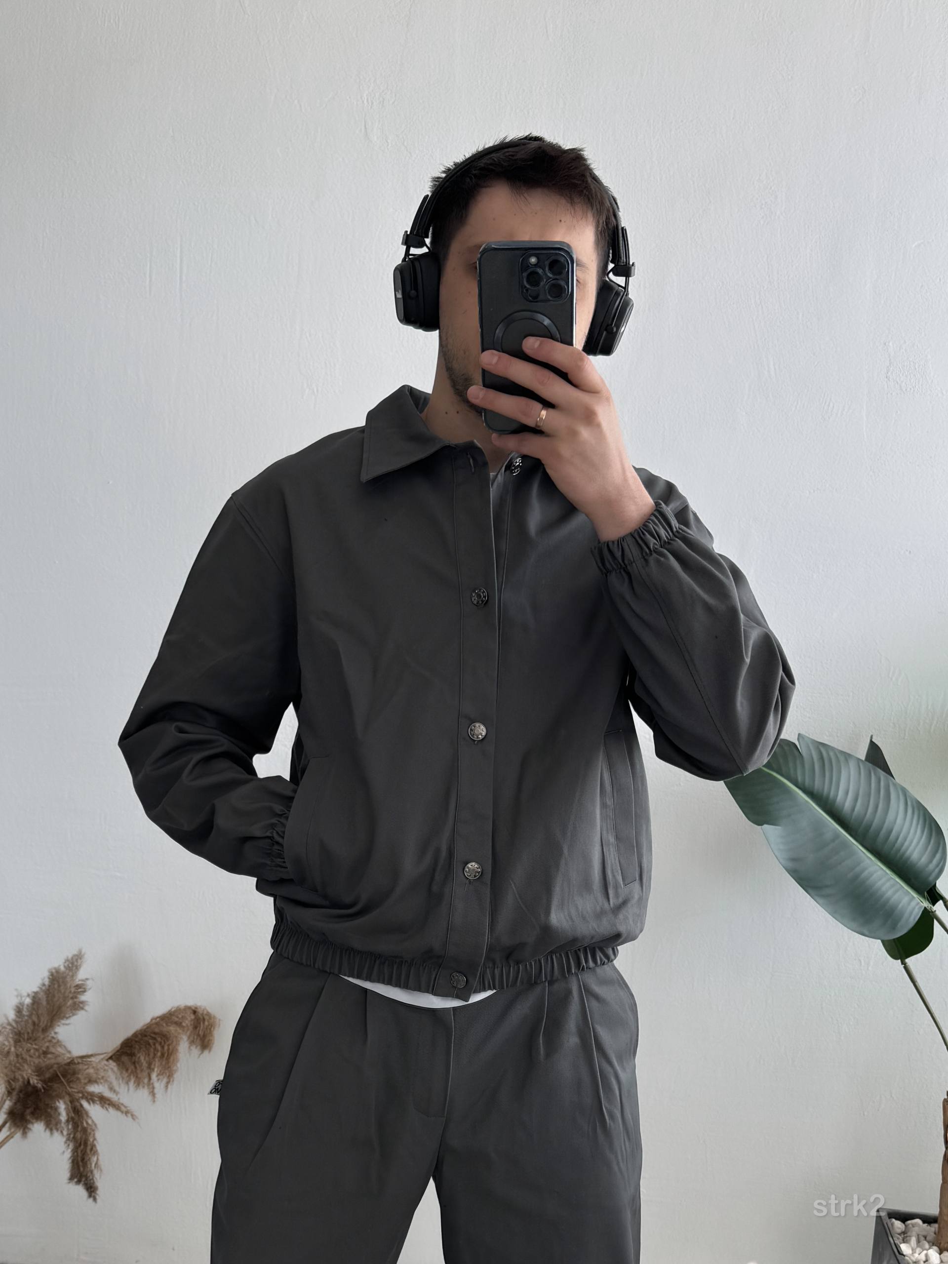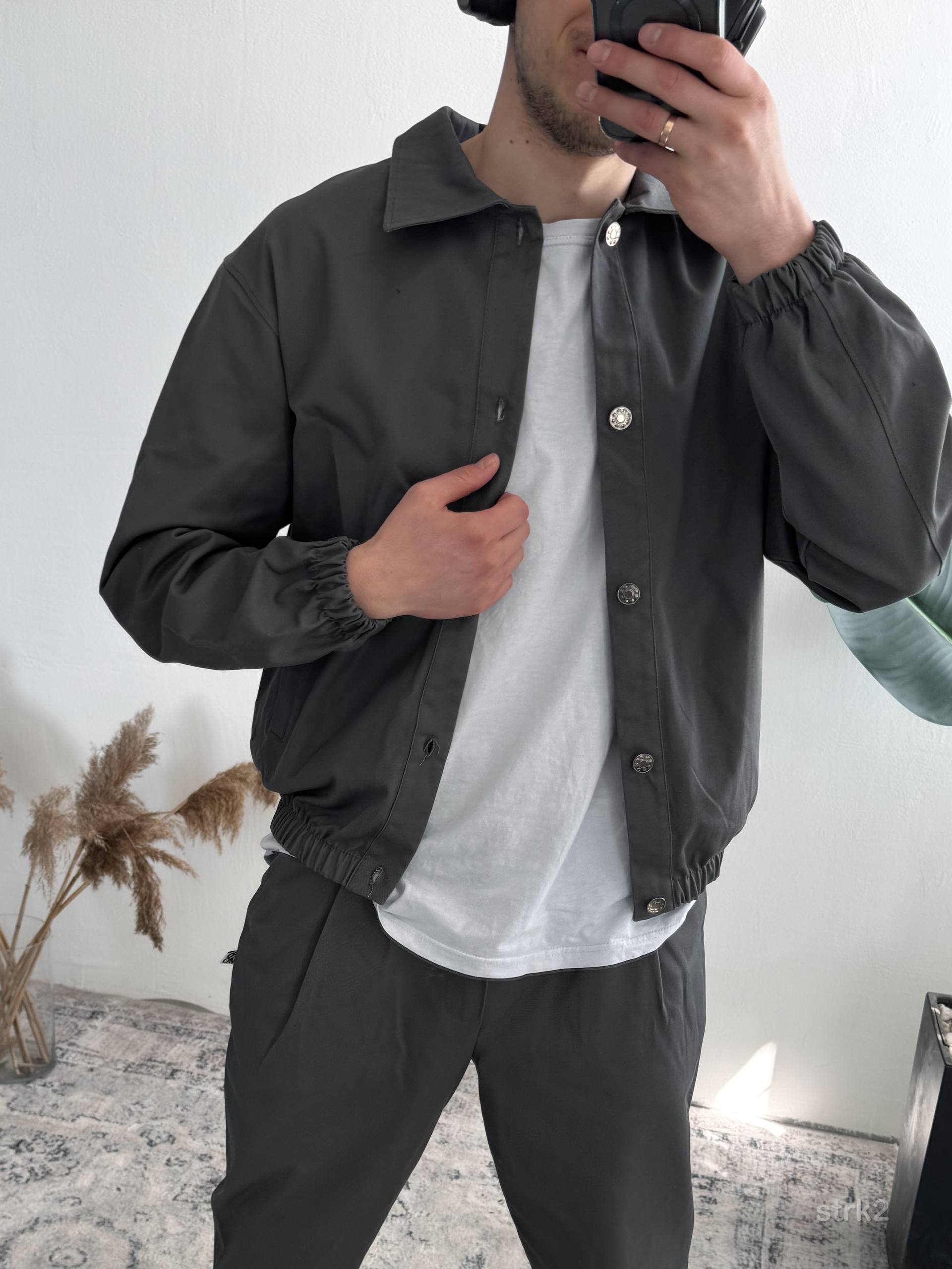 Чоловічий Вільний Джинсовий Графітовий Бомбер з Металевими Ґудзиками