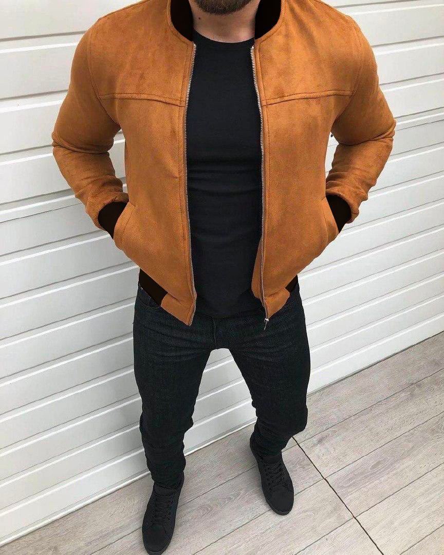 Чоловічий Замшевий Бежевий Бомбер на Змійці з Манжетами