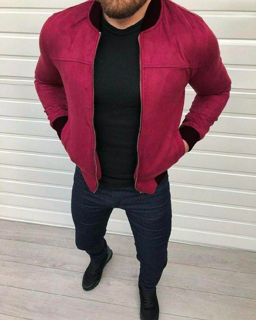 Чоловічий Замшевий Бордовий Бомбер на Змійці з Манжетами