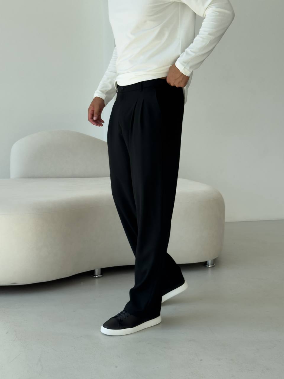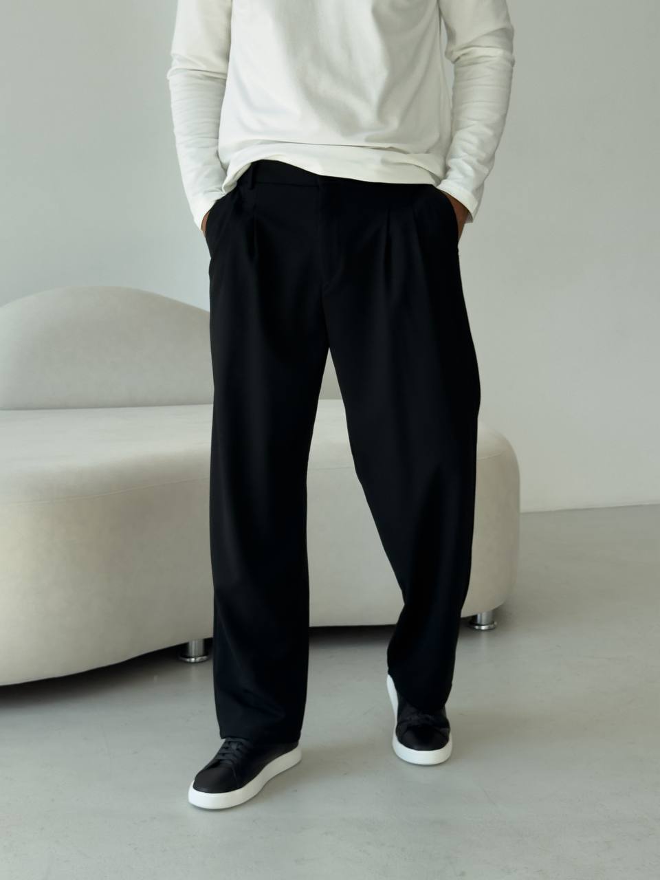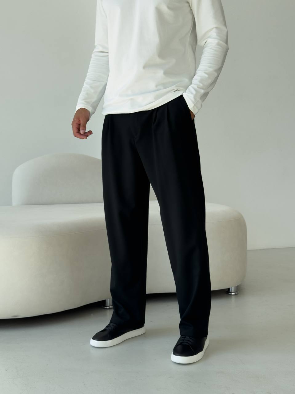 Чоловічі Класичні Чорні Штани Брюки Вільного Крою зі Складками