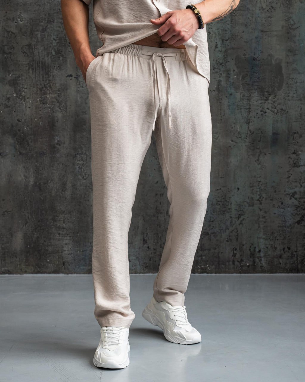 Чоловічі Легкі Літні Бежеві Штани Льон Жатка Вільного Крою