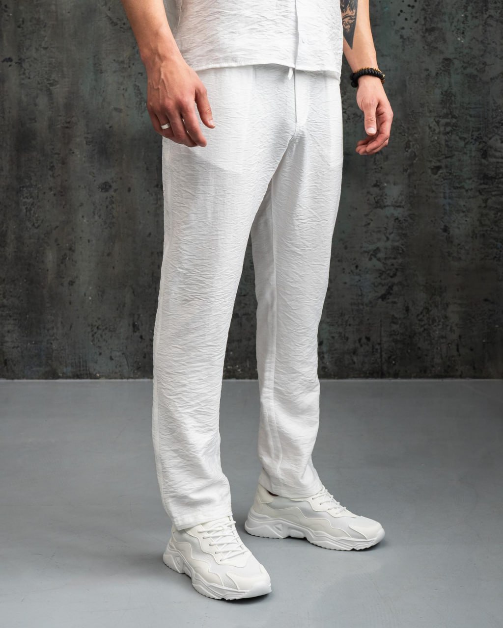 Чоловічі Легкі Літні Білі Штани Льон Жатка Вільного Крою