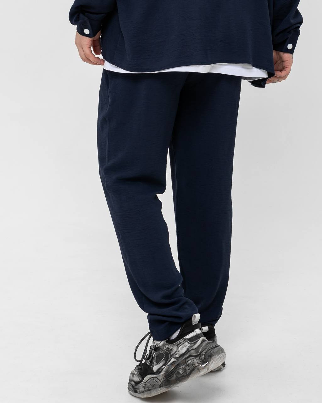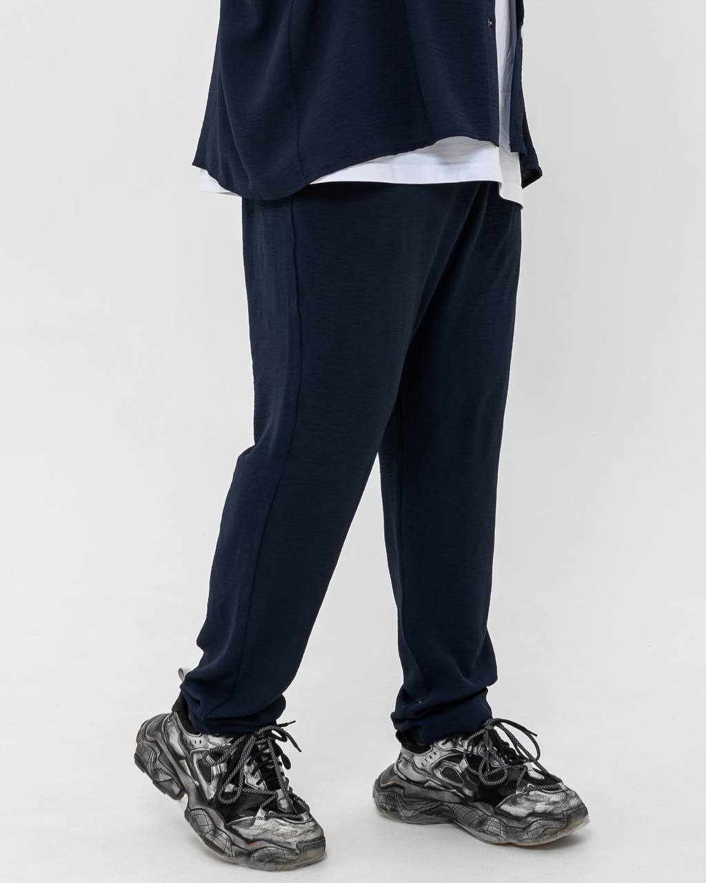 Чоловічі Легкі Літні Темно-Сині Штани Креп Жатка Вільного Крою