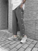 Чоловічі вельветові сірі штани Мом з кнопками і прихованими принтами по боках.