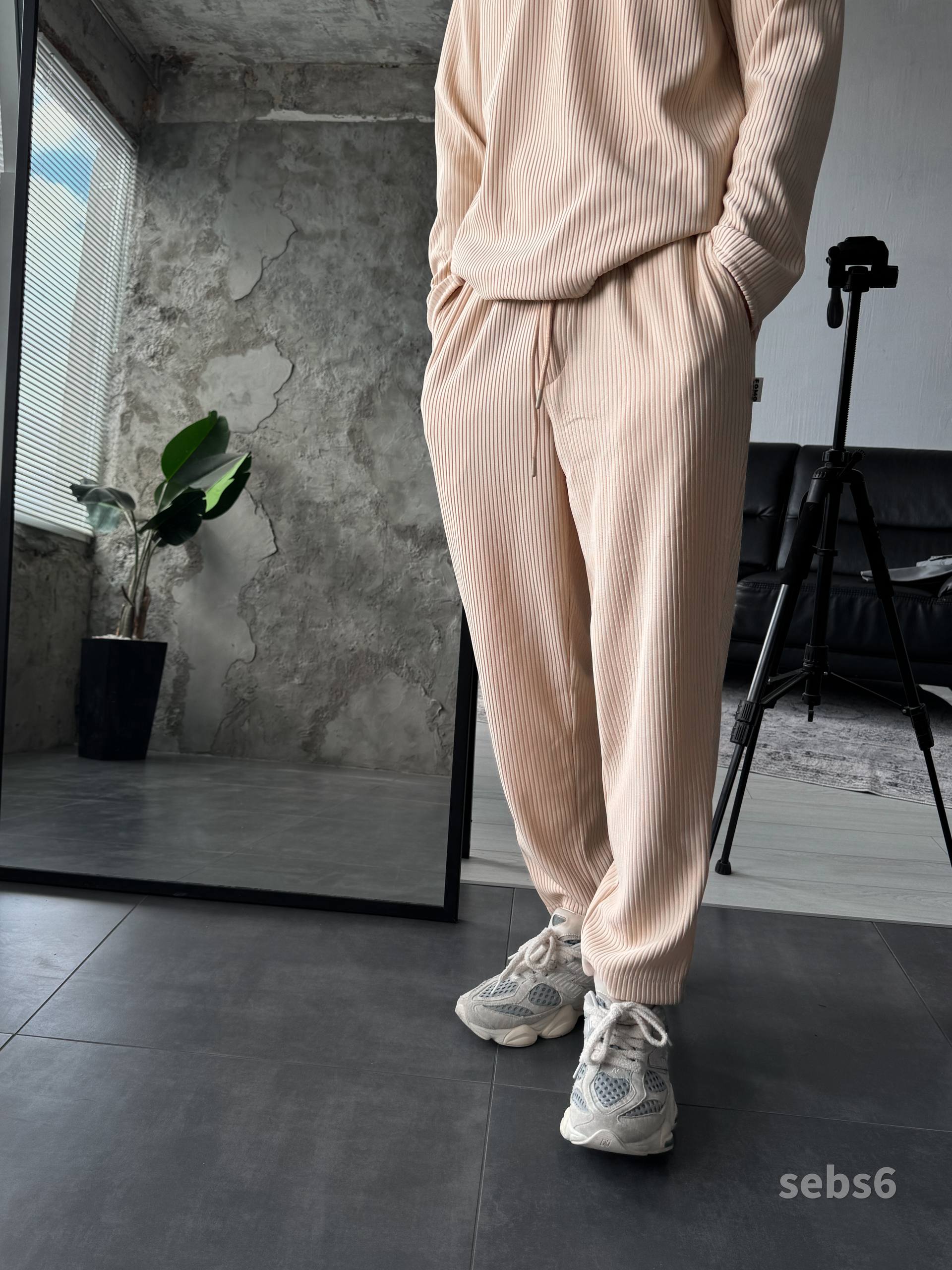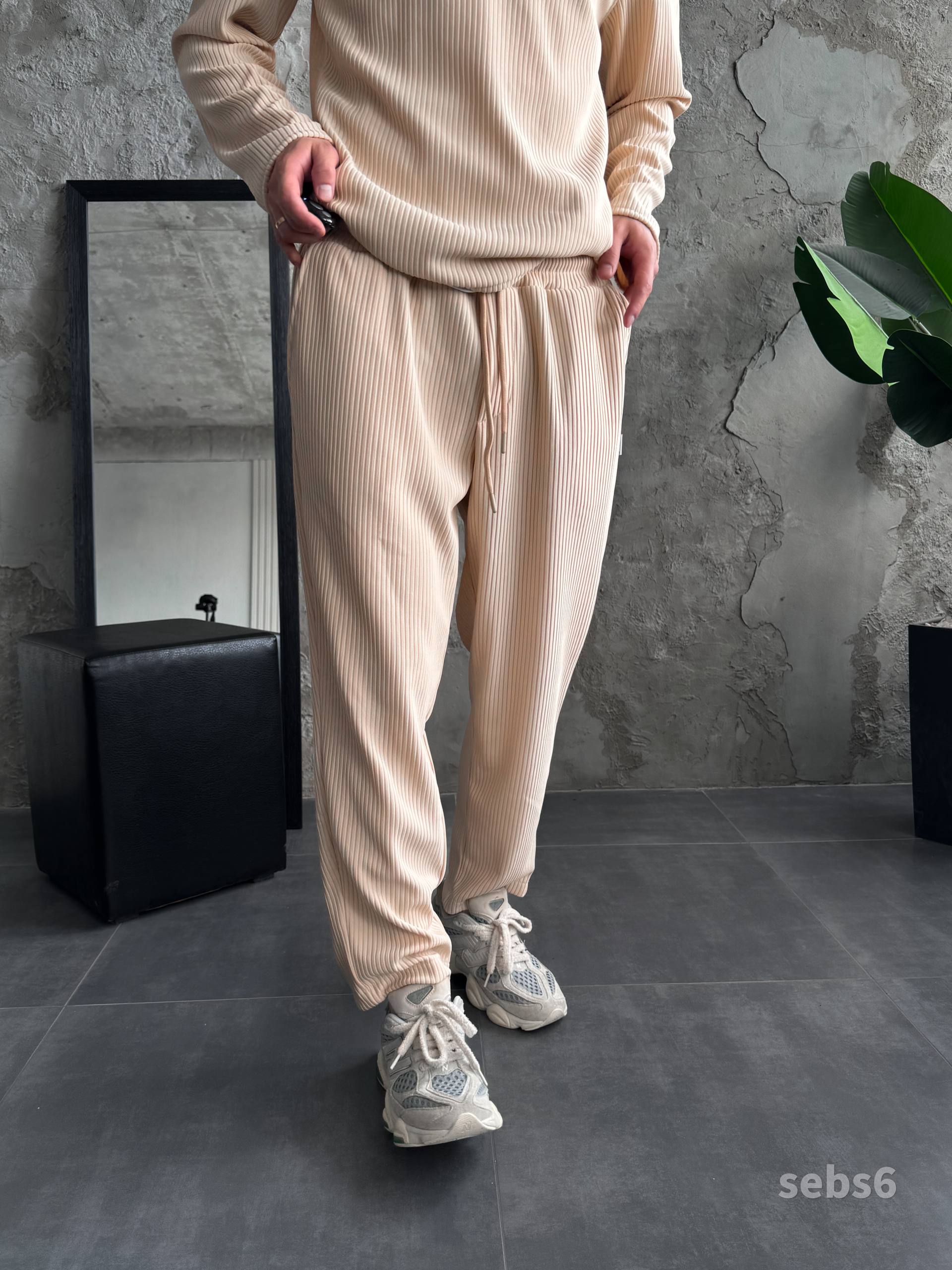 Чоловічі Вільні Базові Бежеві Штани на Резинці в Рубчик