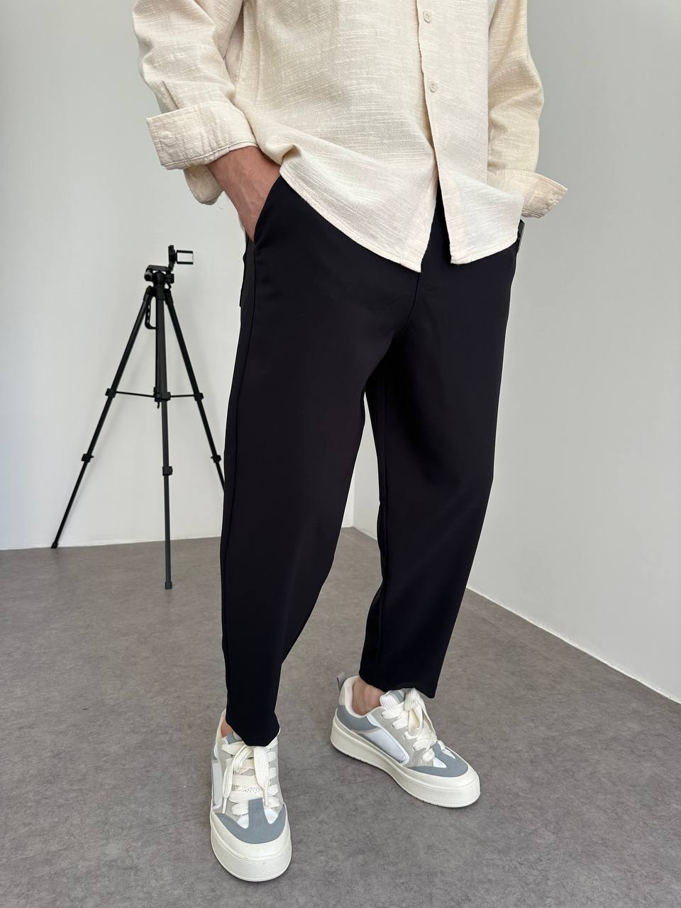 Чоловічі Вільні Базові Чорні Штани Брюки Мом на Резинці