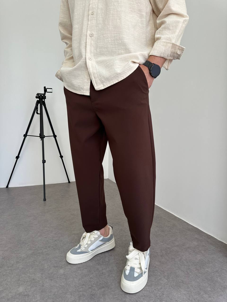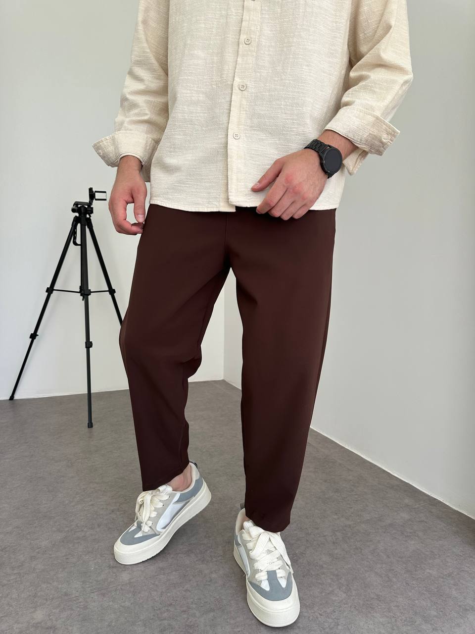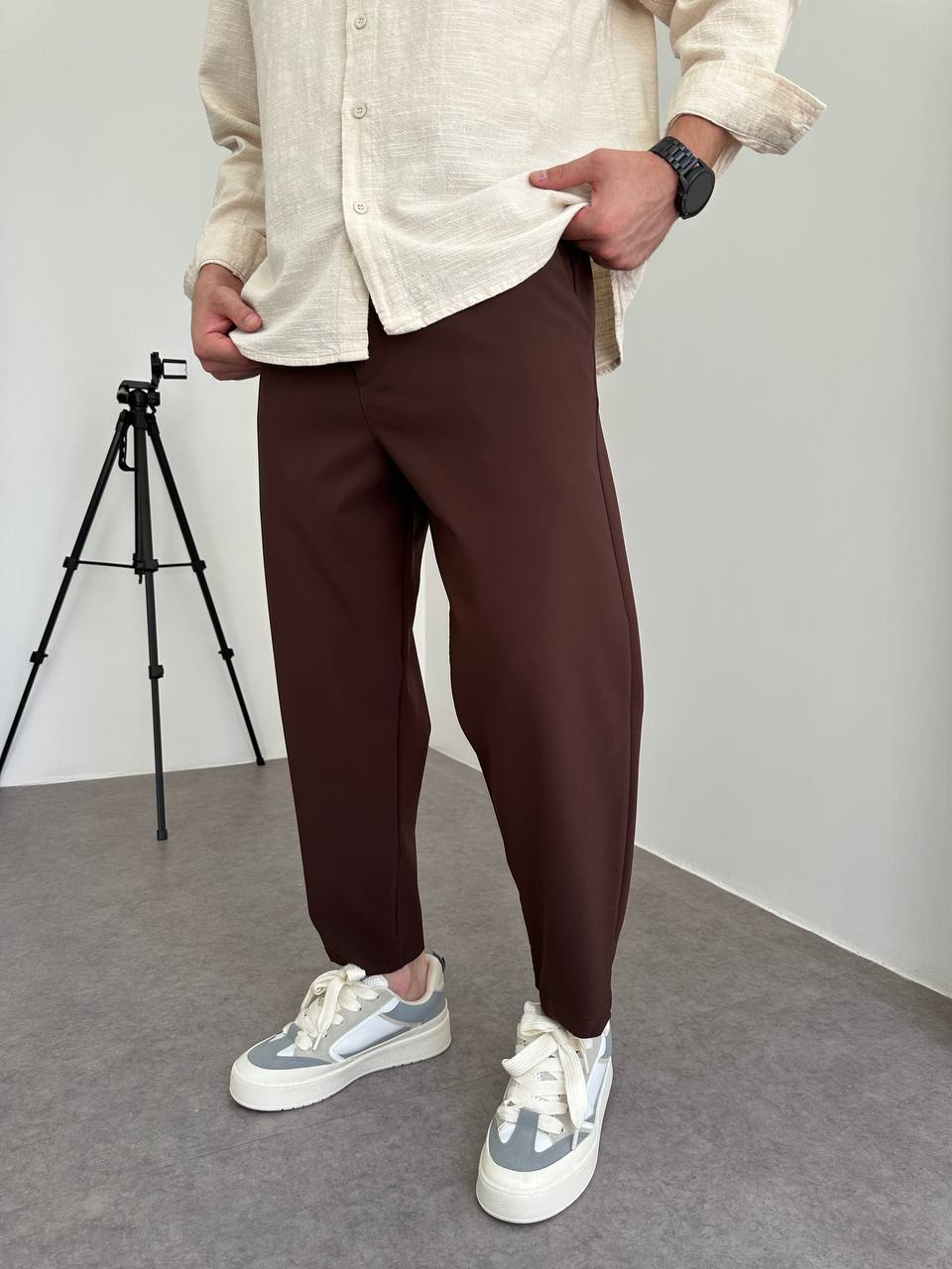 Чоловічі Вільні Базові Коричневі Штани Брюки Мом на Резинці