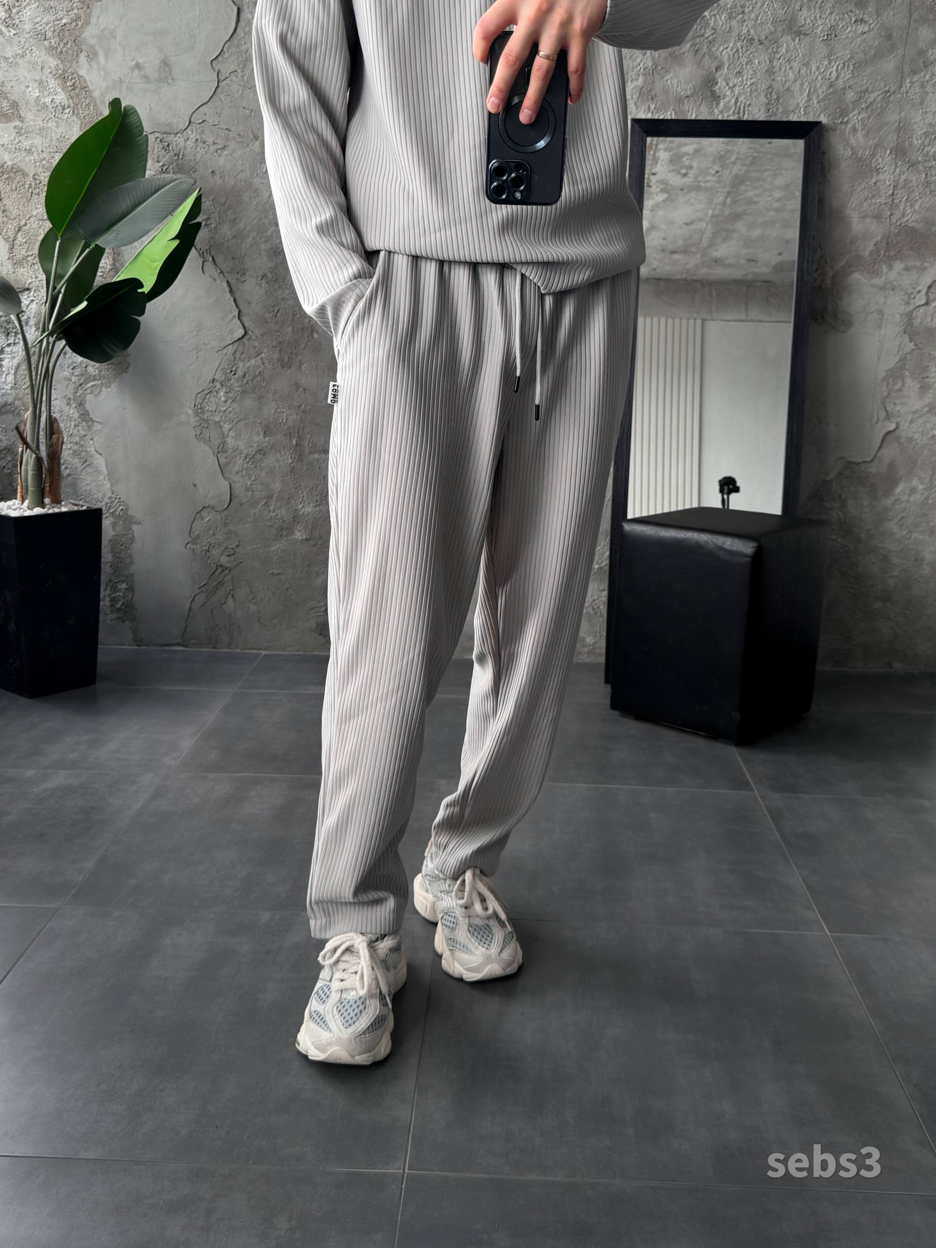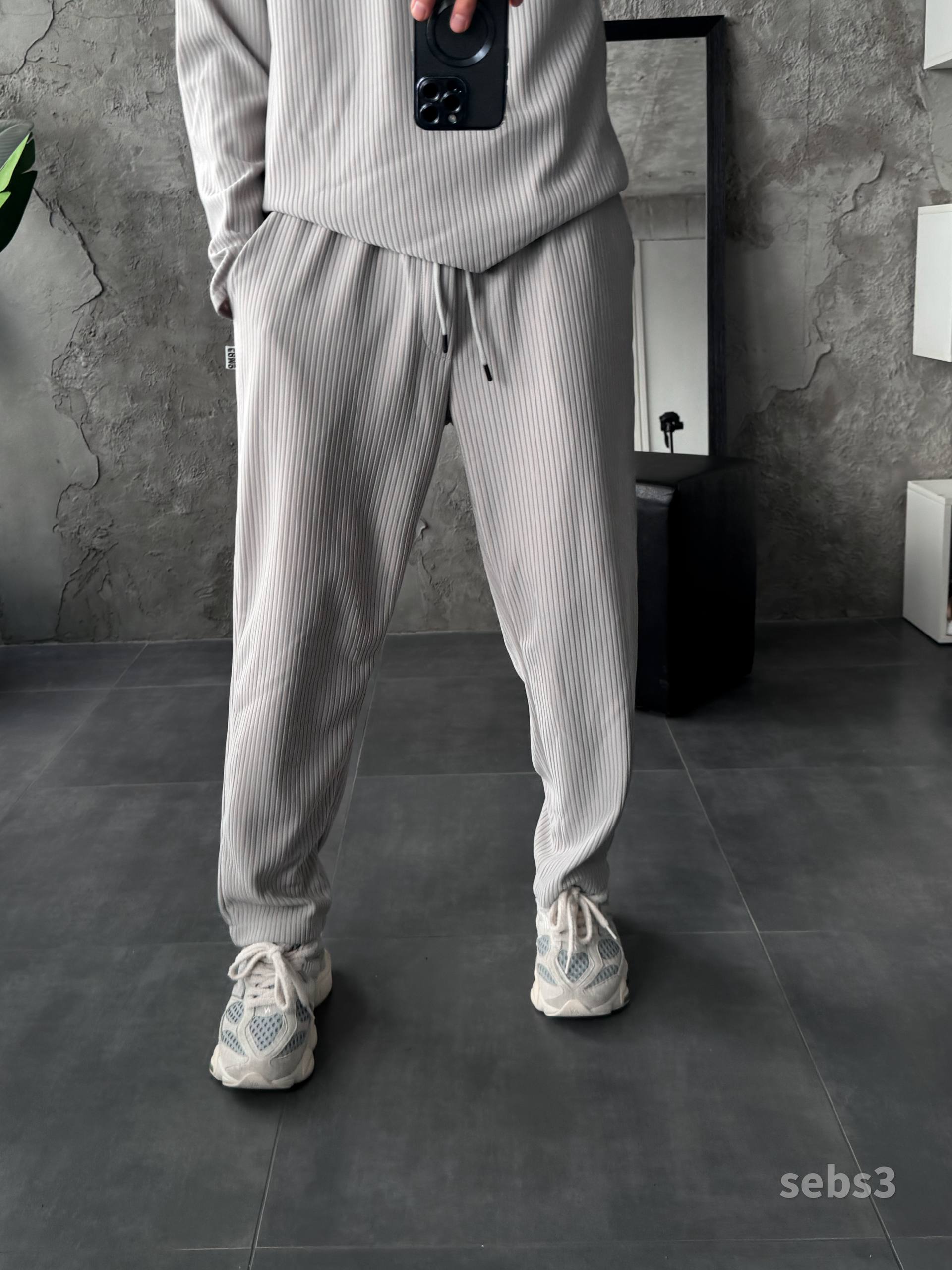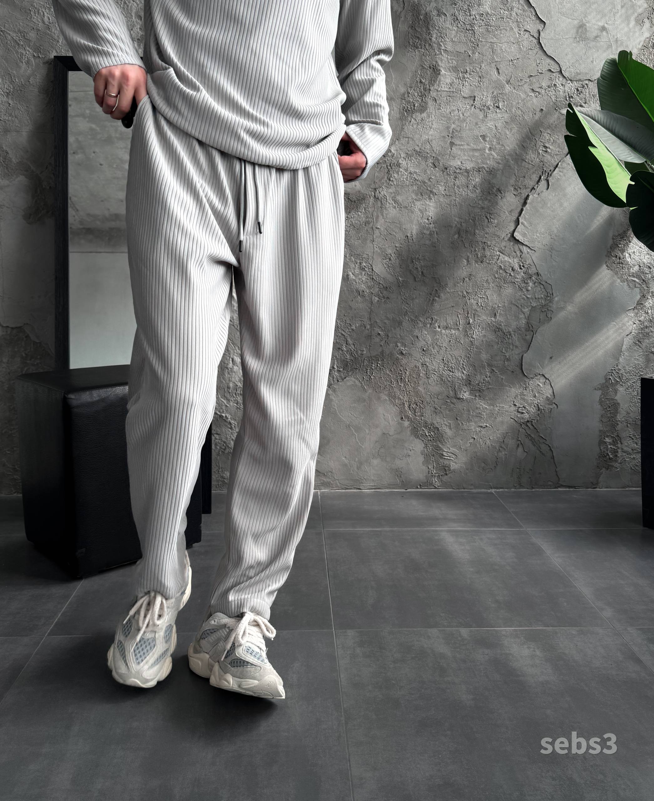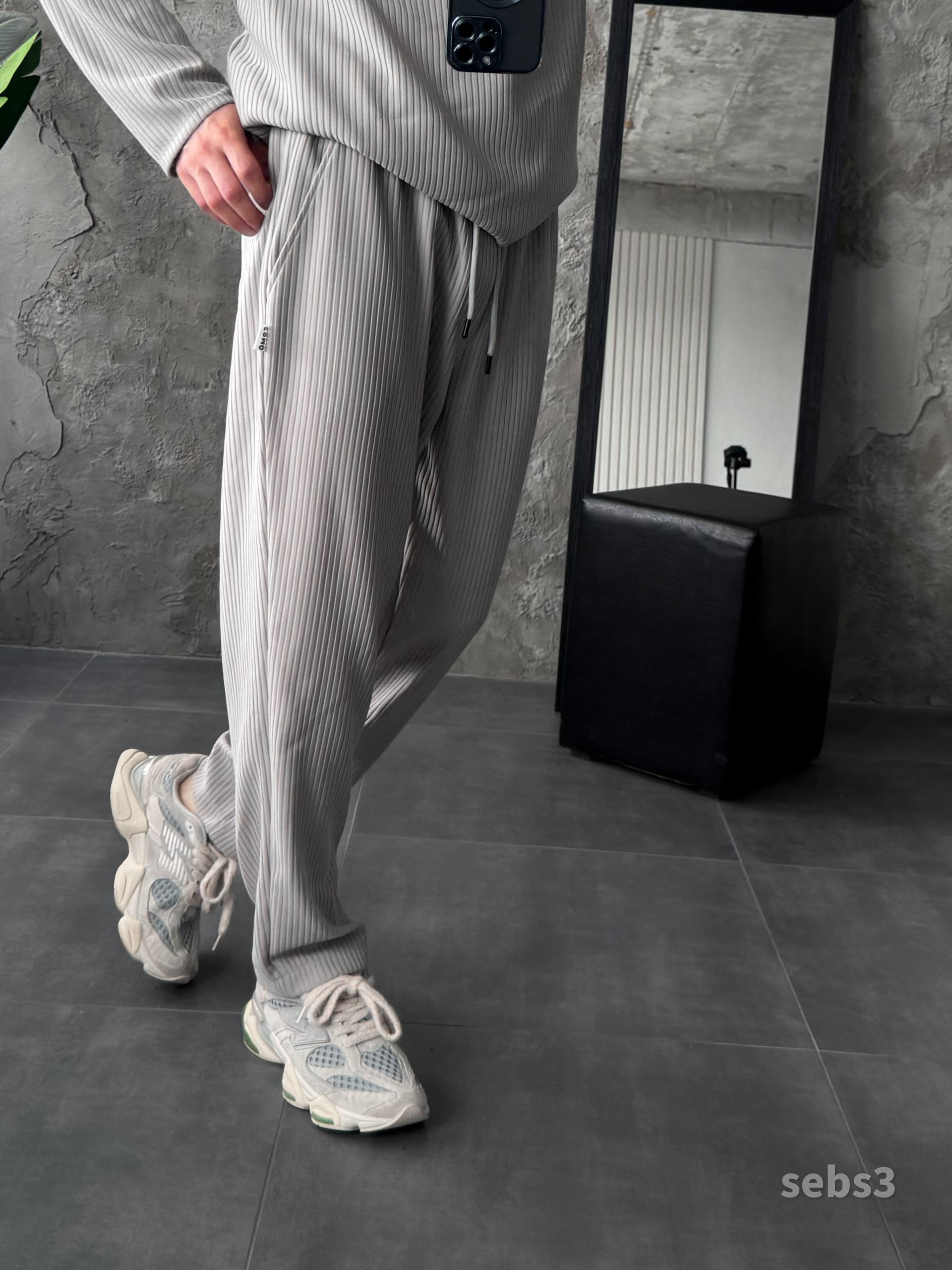Чоловічі Вільні Базові Сірі Штани на Резинці в Рубчик